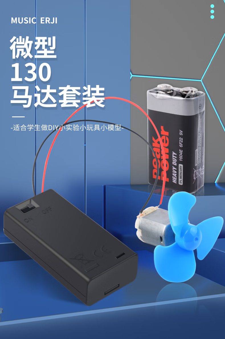 Micro 130 motor high speed small motor toy four-wheel drive car handmade mini experimental aiy DC fan blade kit 130 motor + blue 3/4 fan blade with AA battery + box