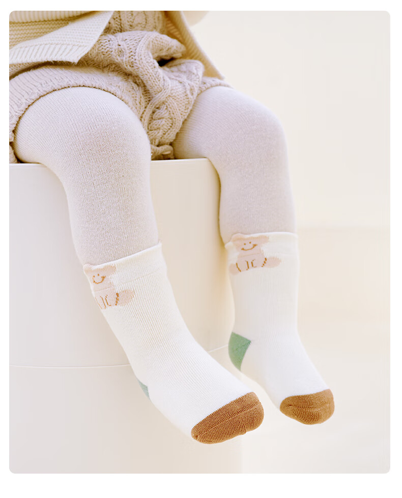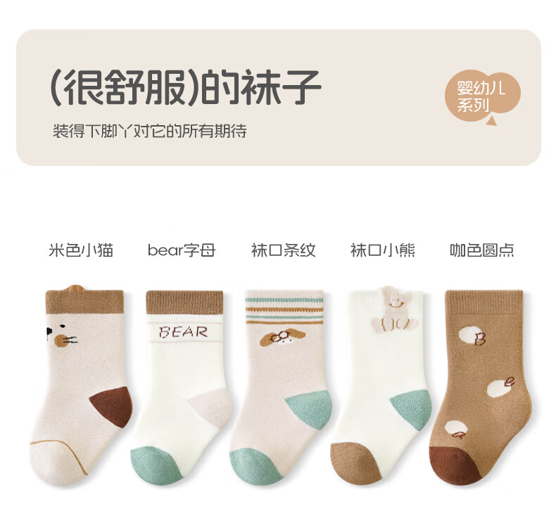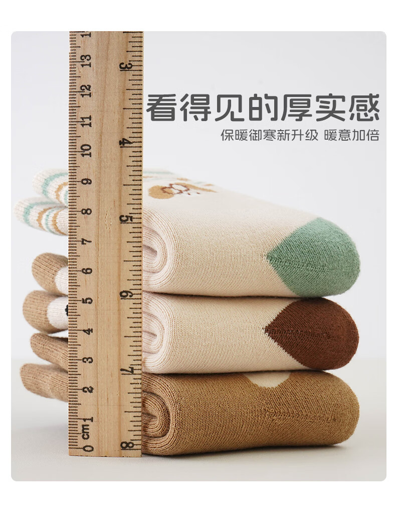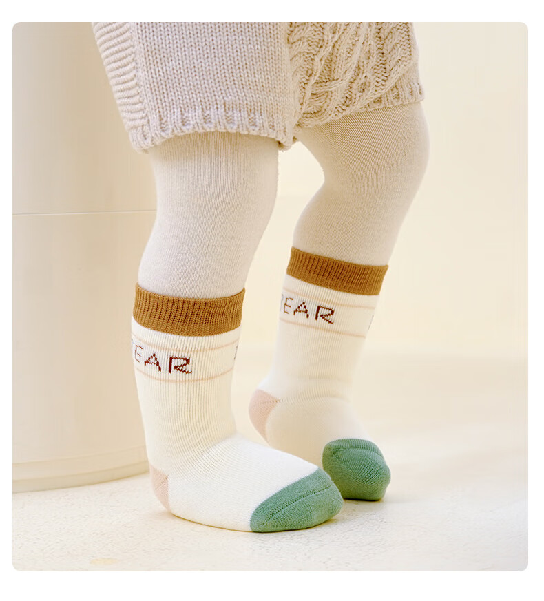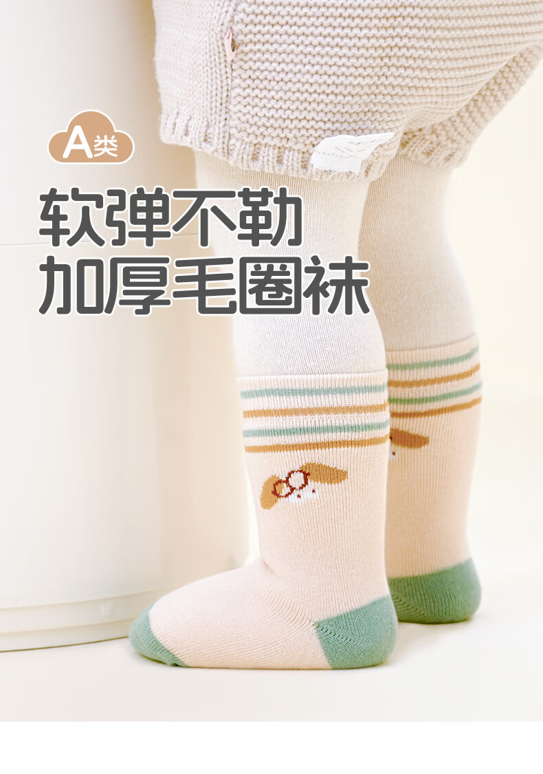Growing baby socks, autumn and winter type A cotton socks, newborn baby pure cotton boneless mid-calf socks that do not tighten the legs, winter cotton socks, striped monogram, 5 pairs, 0-1 years old, S size (recommended foot length 10-12CM)