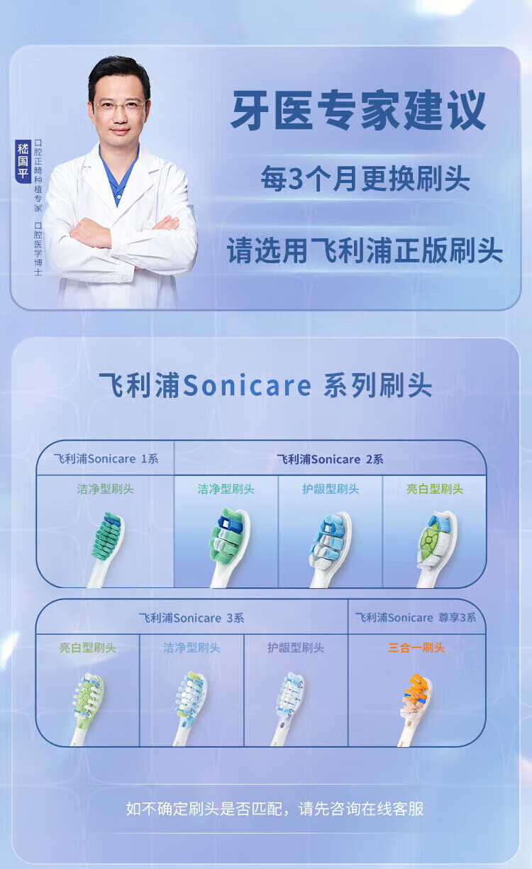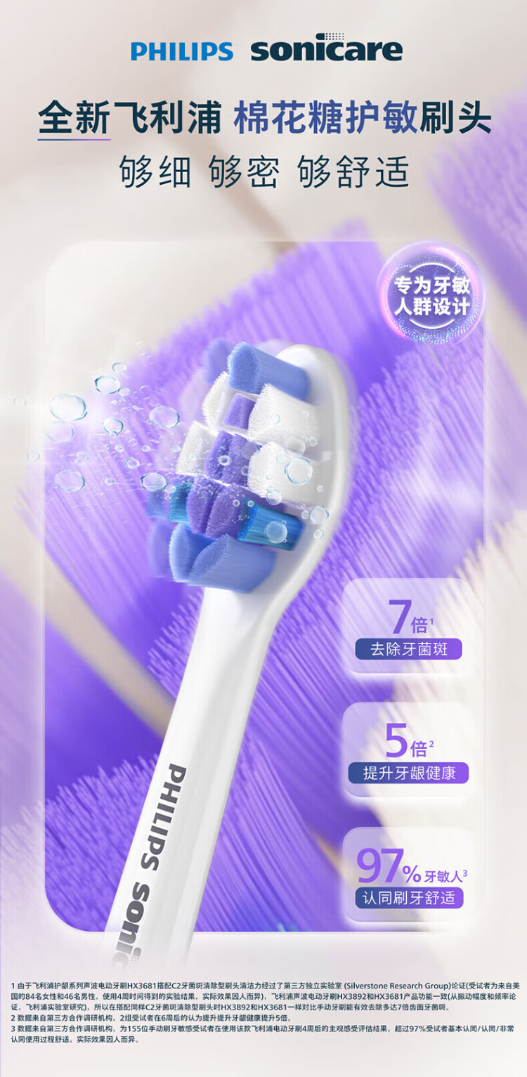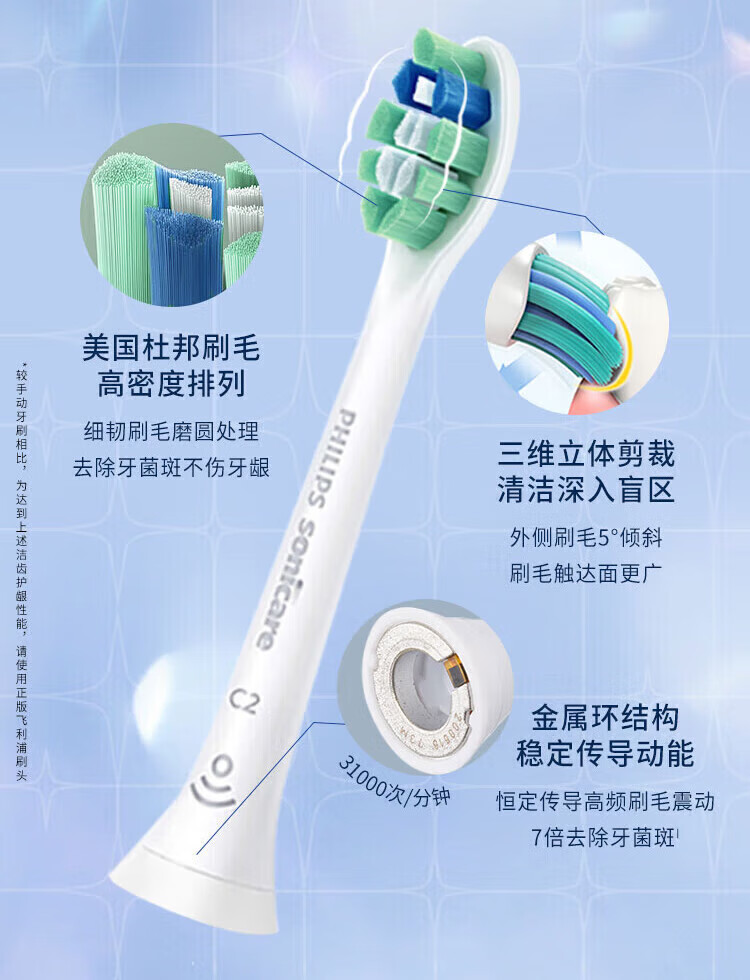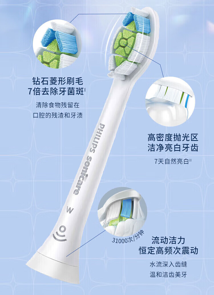 Philips electric toothbrush head, basic cleaning, whitening, gum protection, plaque removal, DuPont imported bristles, suitable for HX3 series, HX6 series, HX9 series, 3 pieces, plaque prevention type, 3 pieces, unboxed HX9023/67