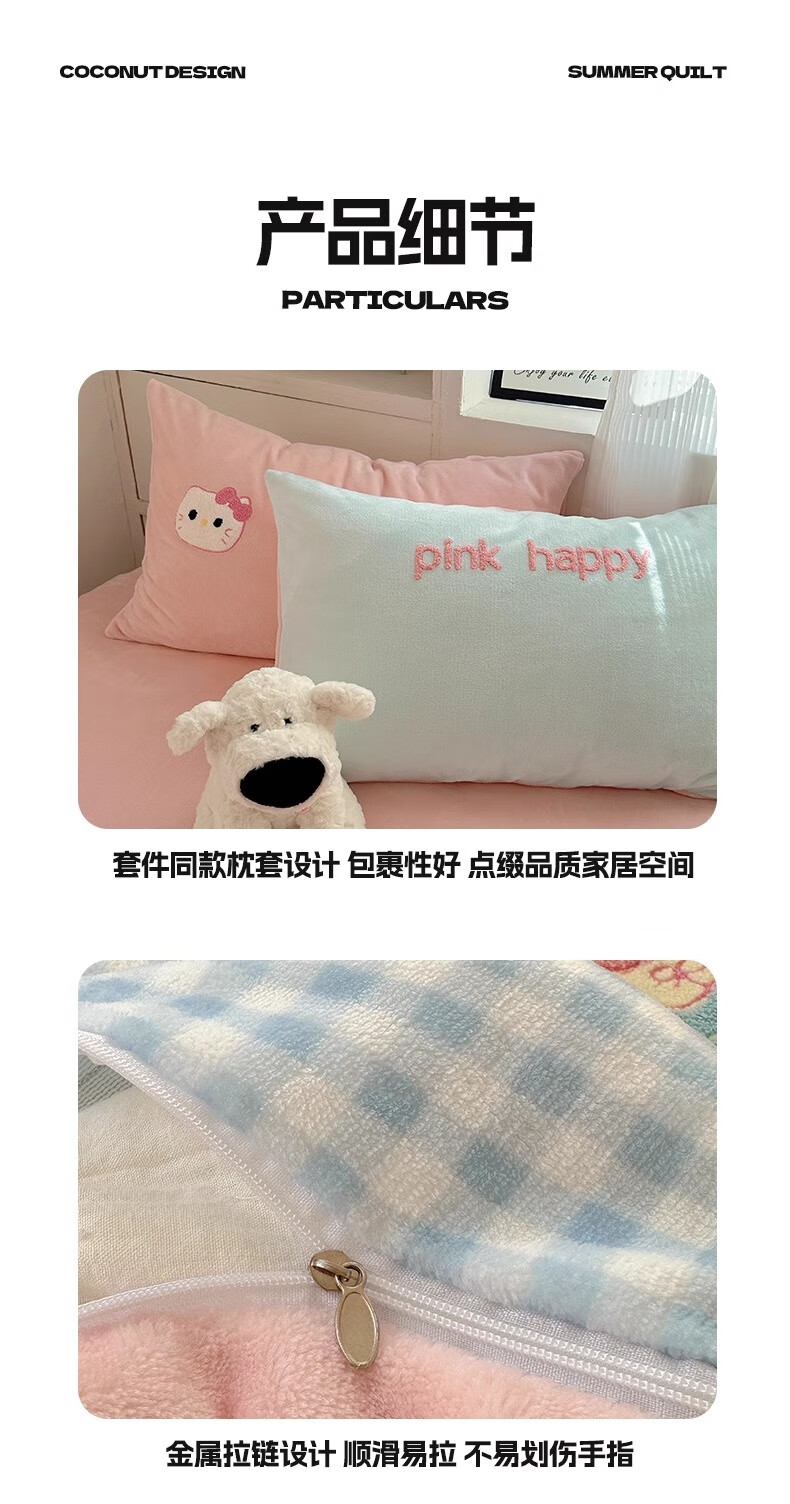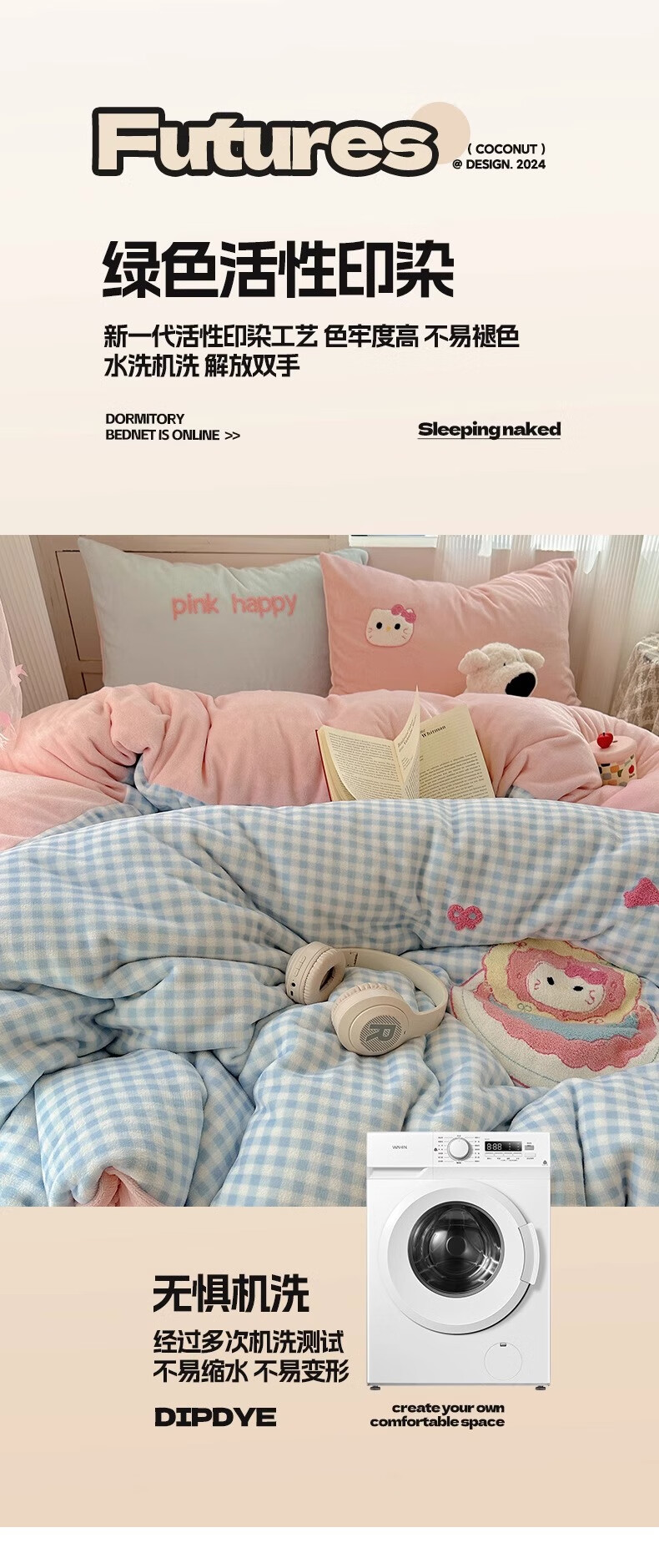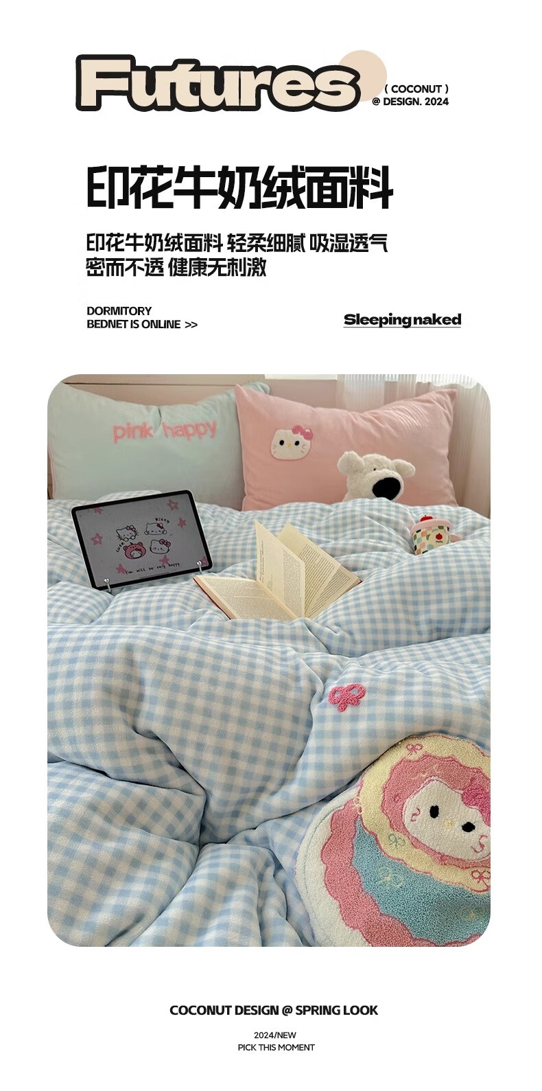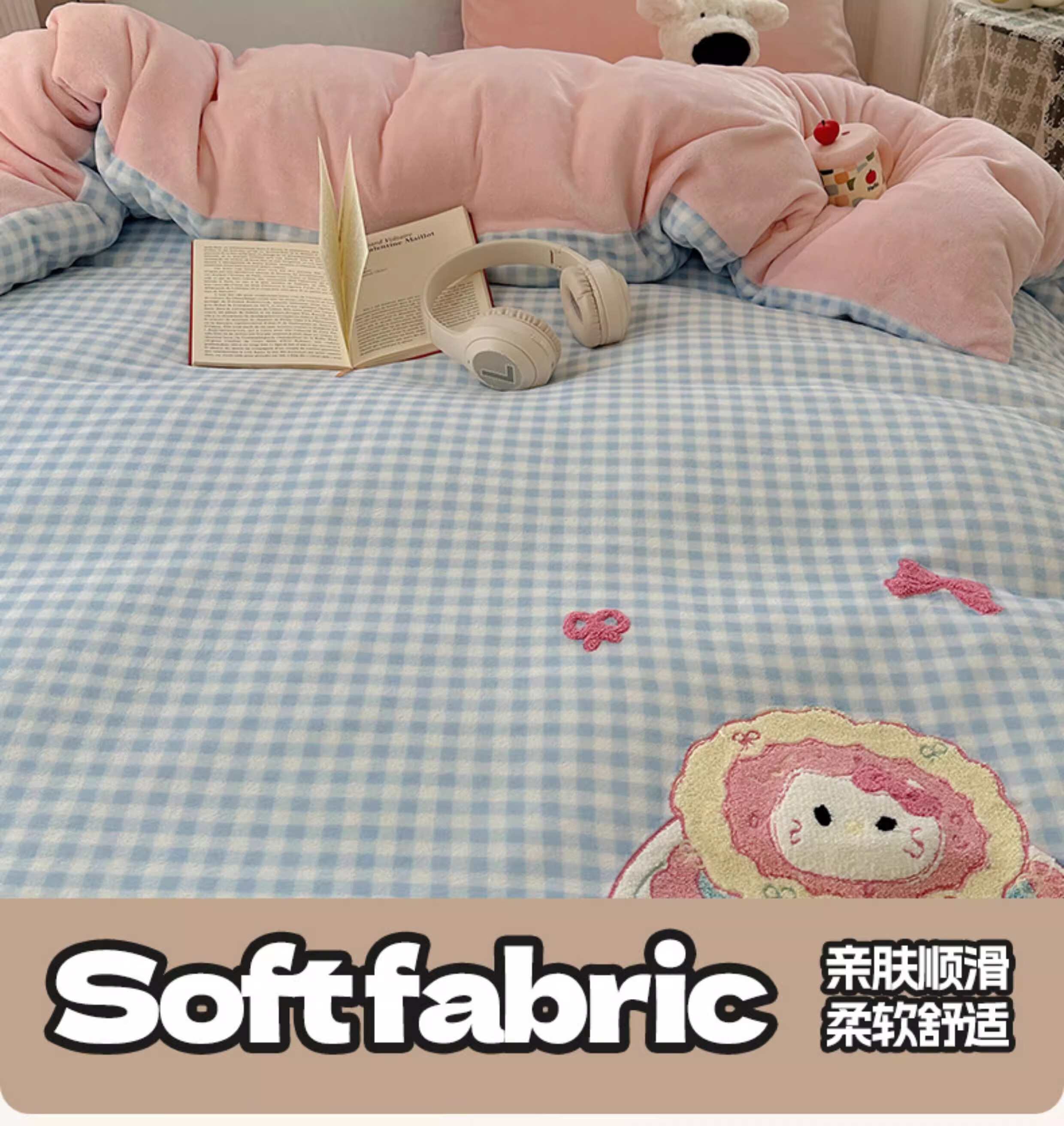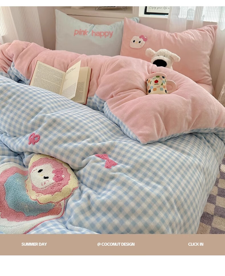 Enxing winter thickened plus velvet bed four-piece set coral milk flannel towel embroidered quilt cover sheet baby velvet bedding GL Blue Cat Cat A thickened milk velvet softer and warmer 1.5m bed sheet style four-piece set - quilt cover 200*230cm