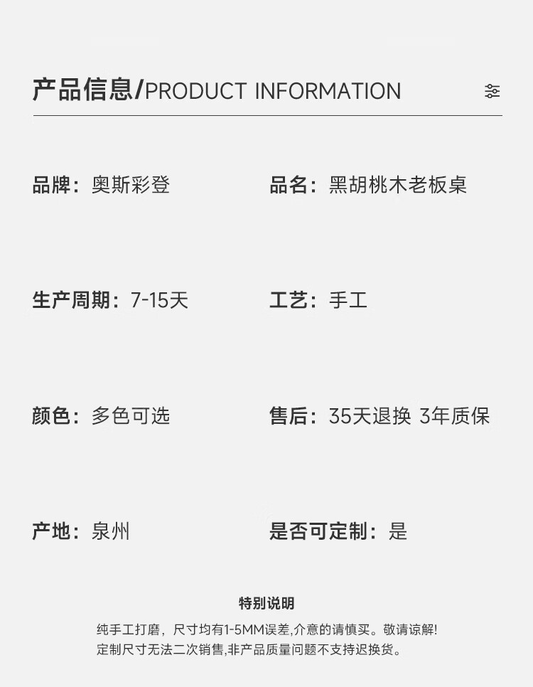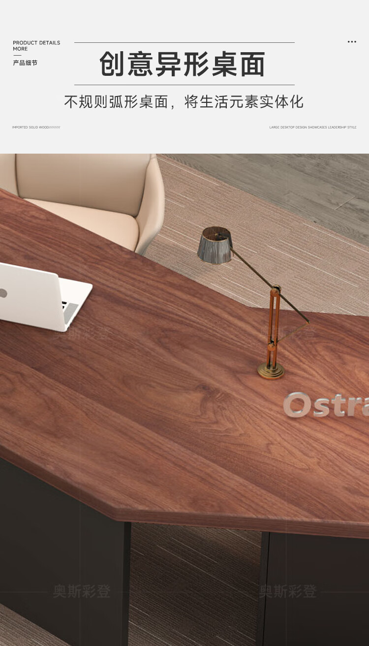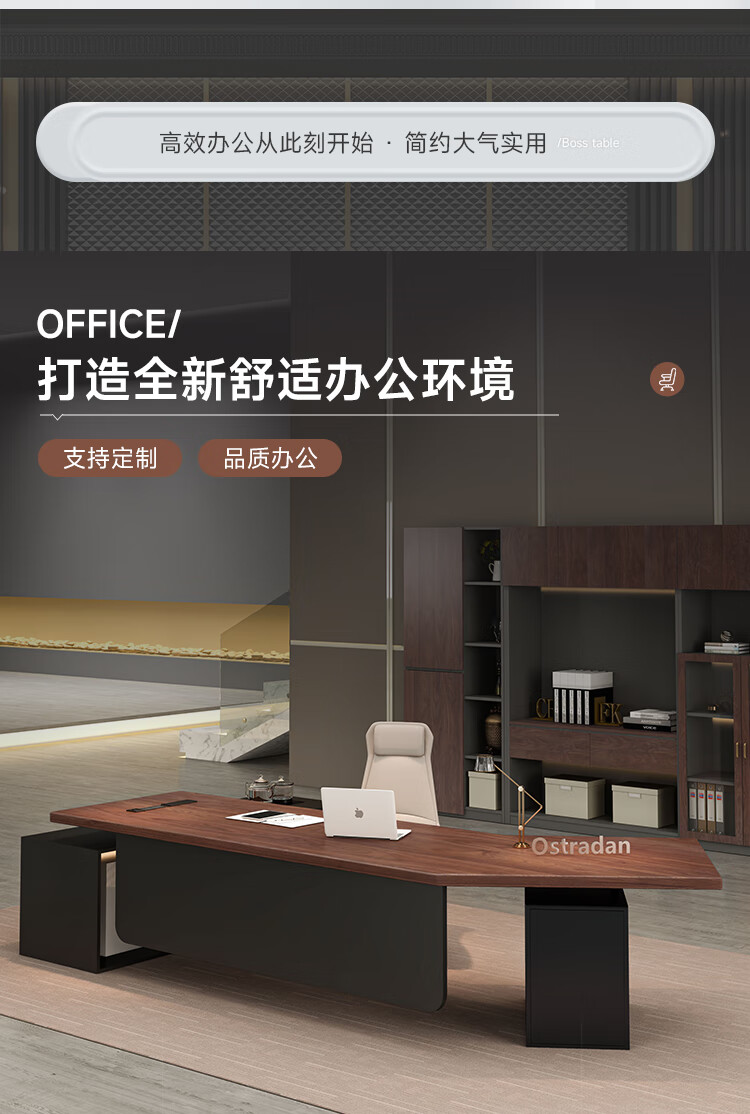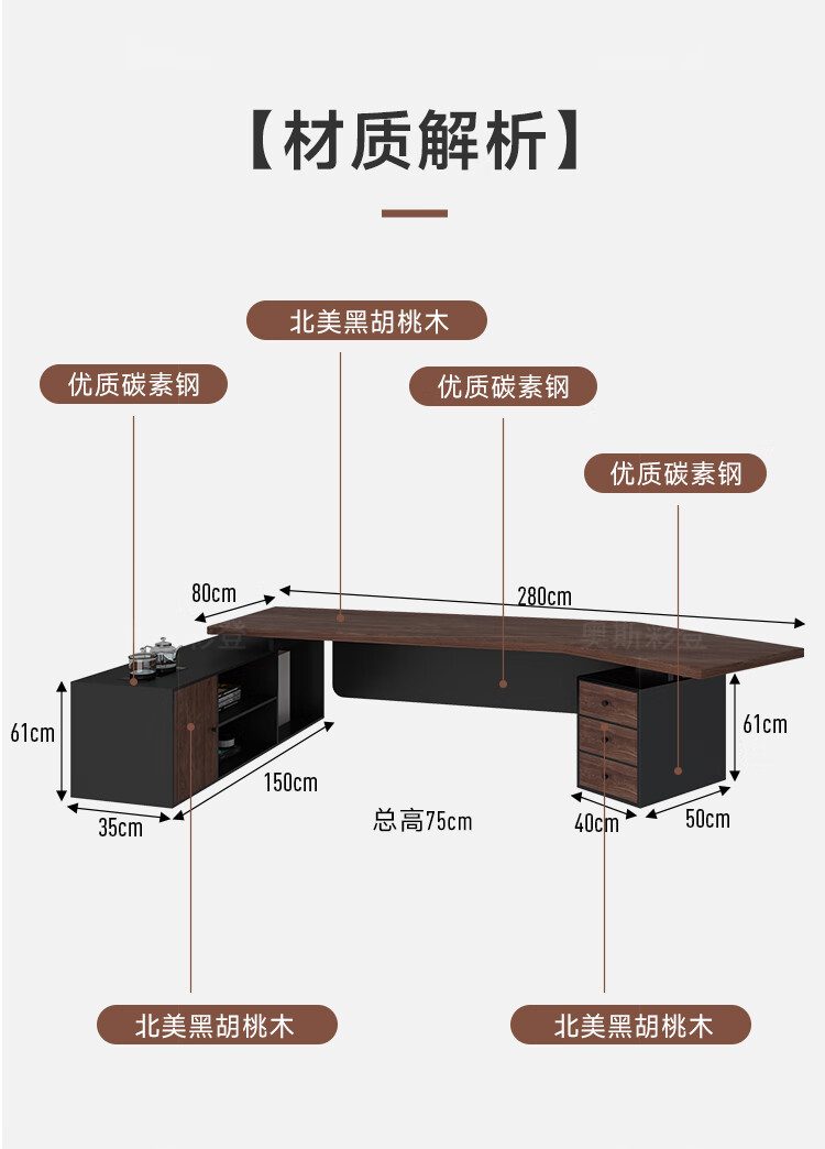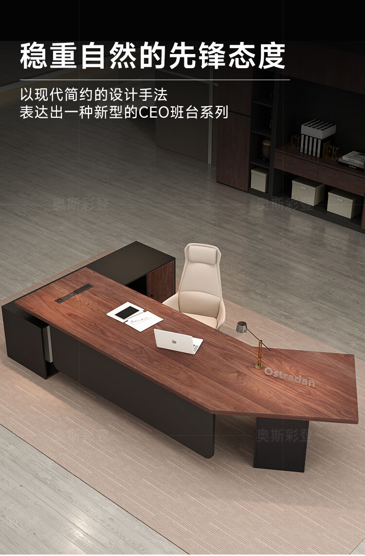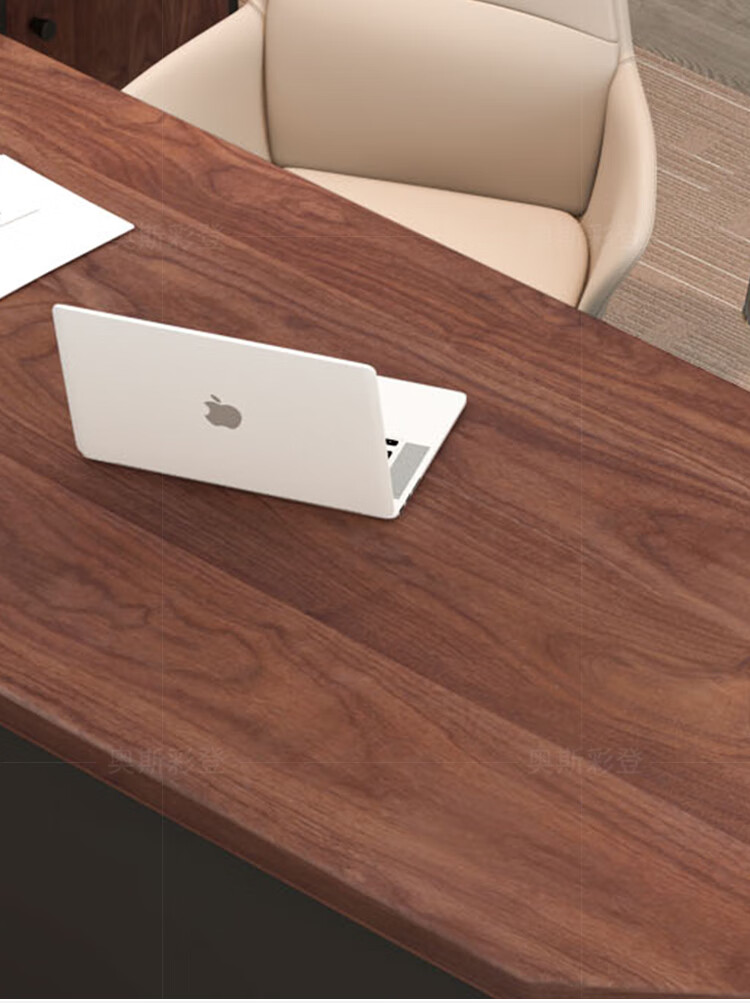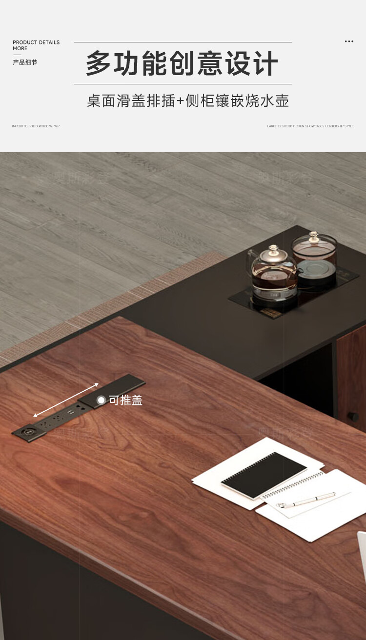 Oscarden Juzi Solid Wood Boss Desk with Side Cabinet Socket Black Walnut President Desk Law Firm Office Tea Table Integrated Style-Color-Size Customized Photoshoot