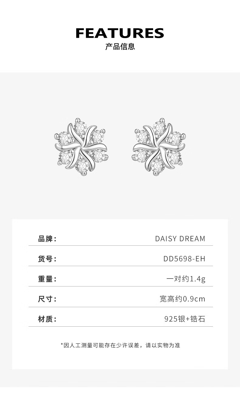DAISY DREAM 925 silver snowflake earrings 2025 new pierced earrings small, elegant, high-end, fashionable and versatile earrings 925 silver snowflake earrings