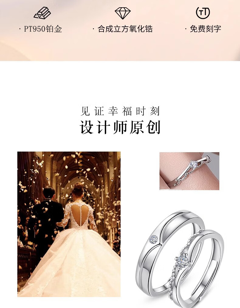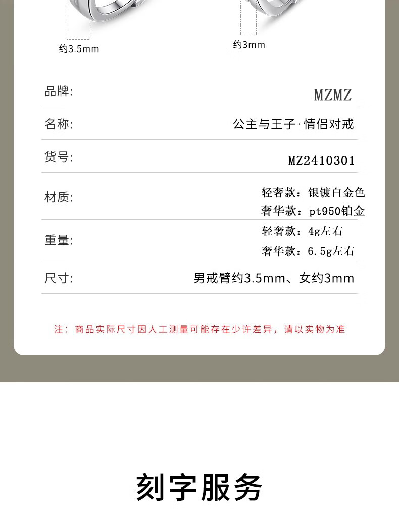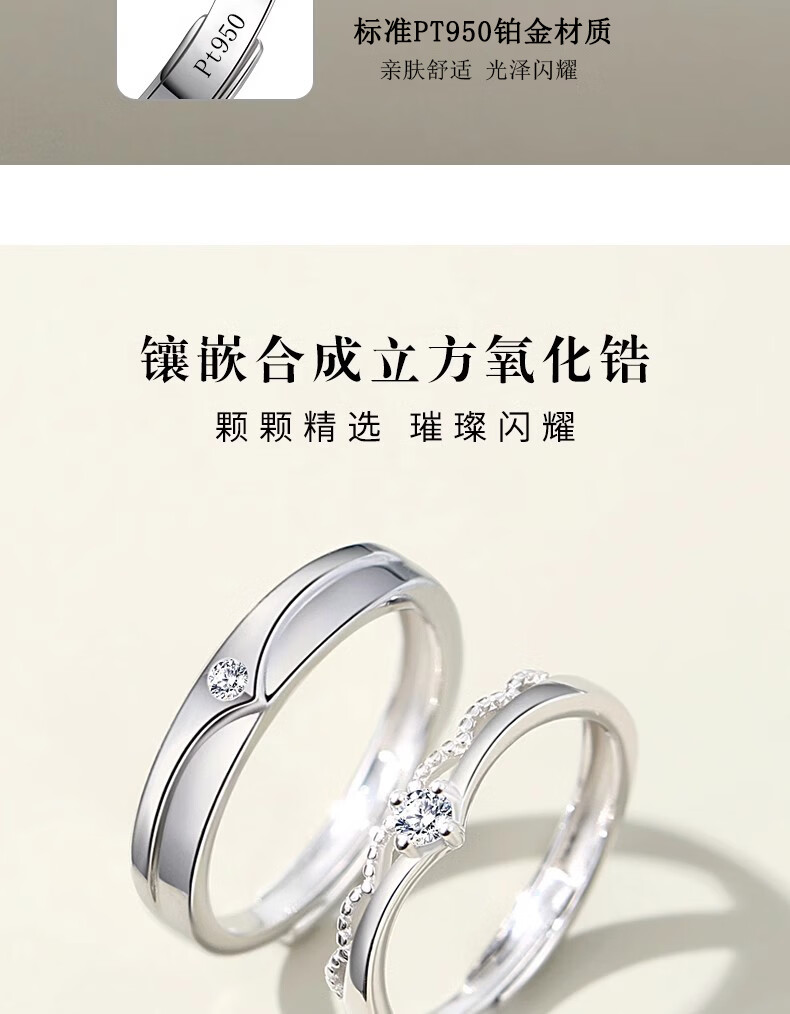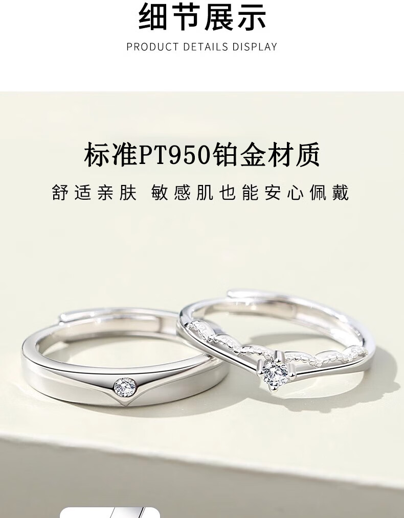 MZMZ platinum ring crown pt950 platinum couple ring men's and women's ring proposal wedding birthday anniversary gift light luxury style prince and princess couple ring