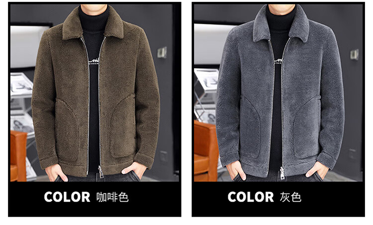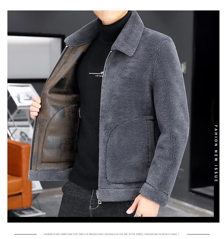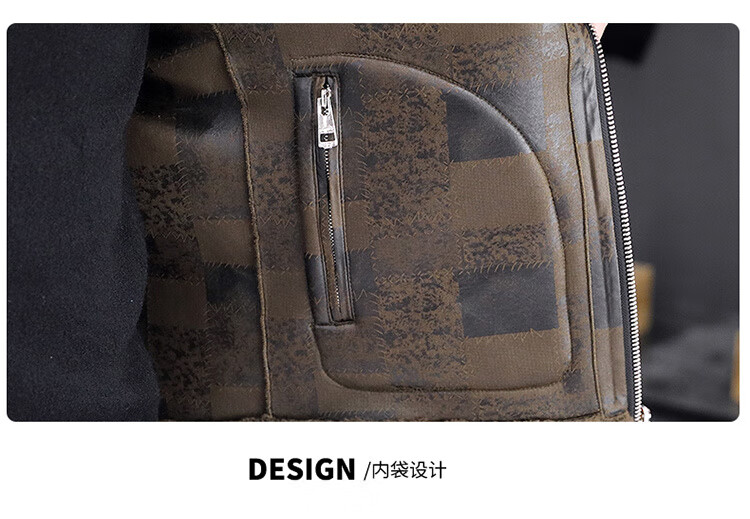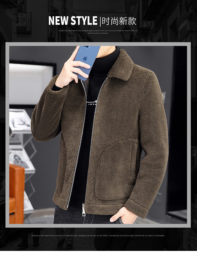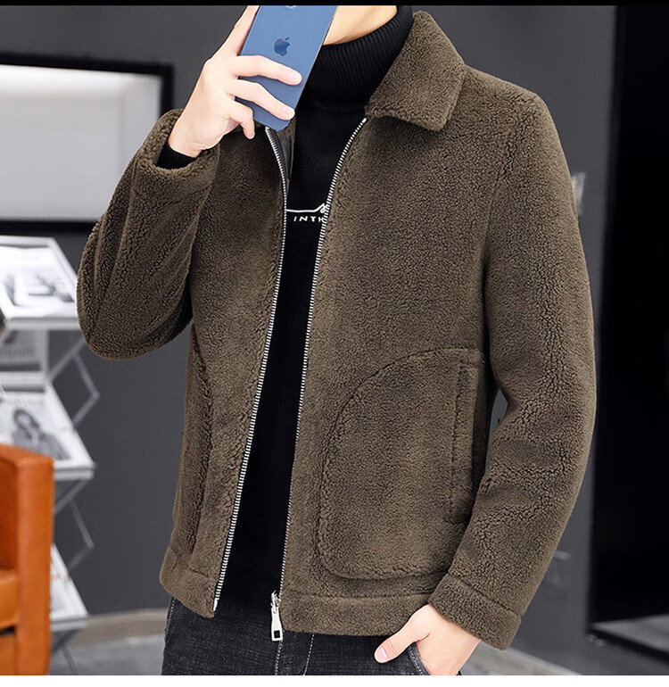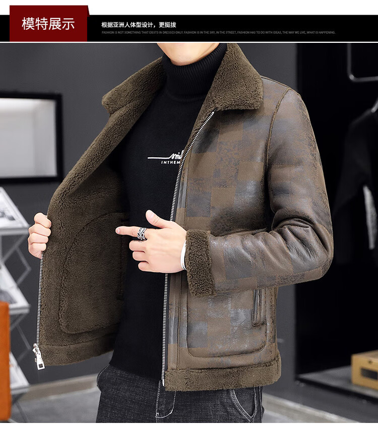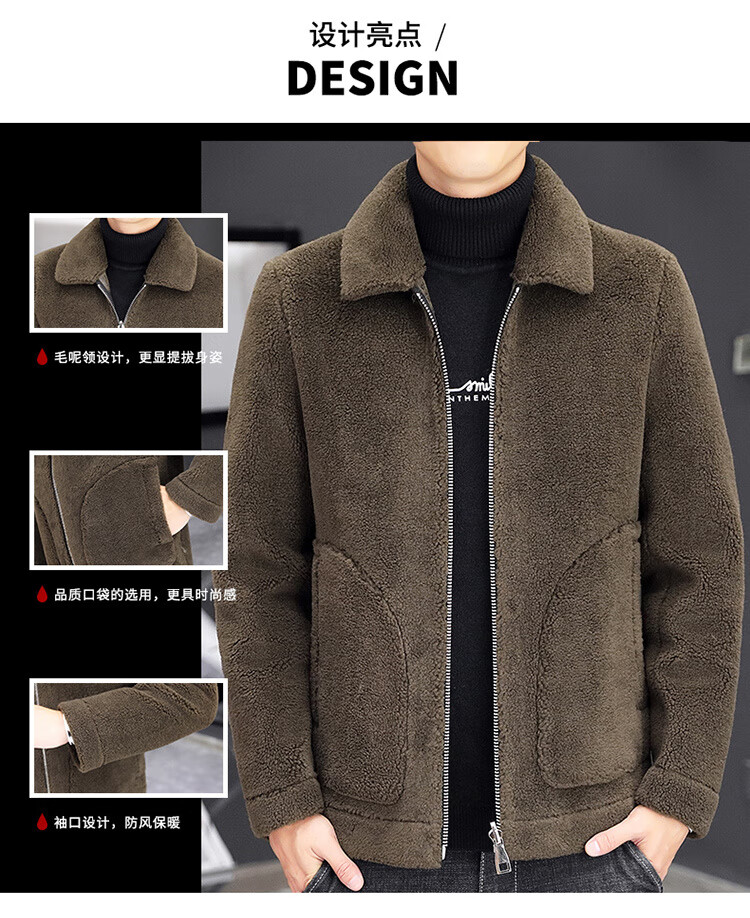 Woodpecker fur all-in-one jacket for men in autumn and winter 2025 new lamb wool lapel thickened high-end men's motorcycle leather jacket wool reversible Z1911-brown 4XL 160-175Jin Jin equals 0.5 kg