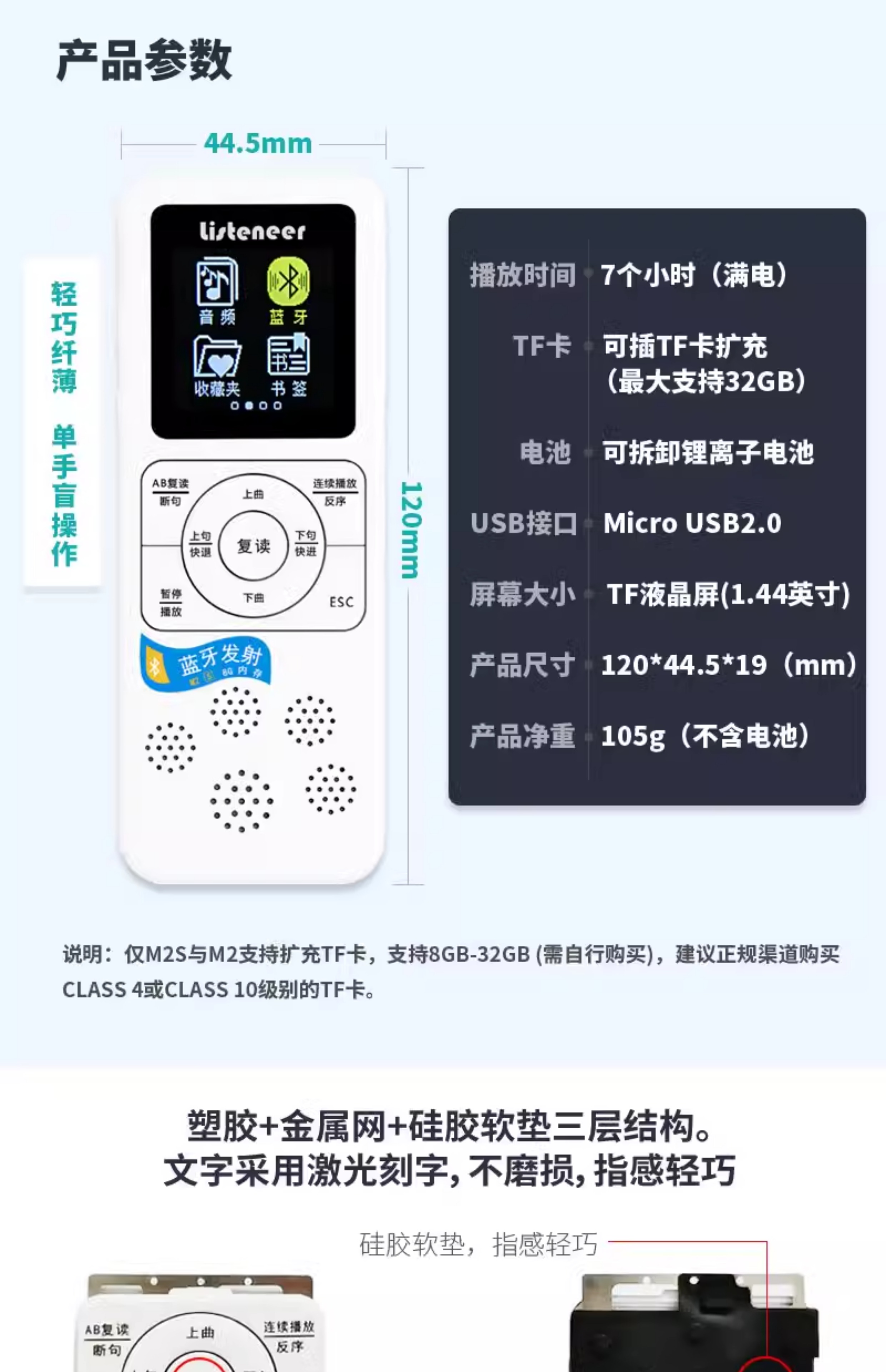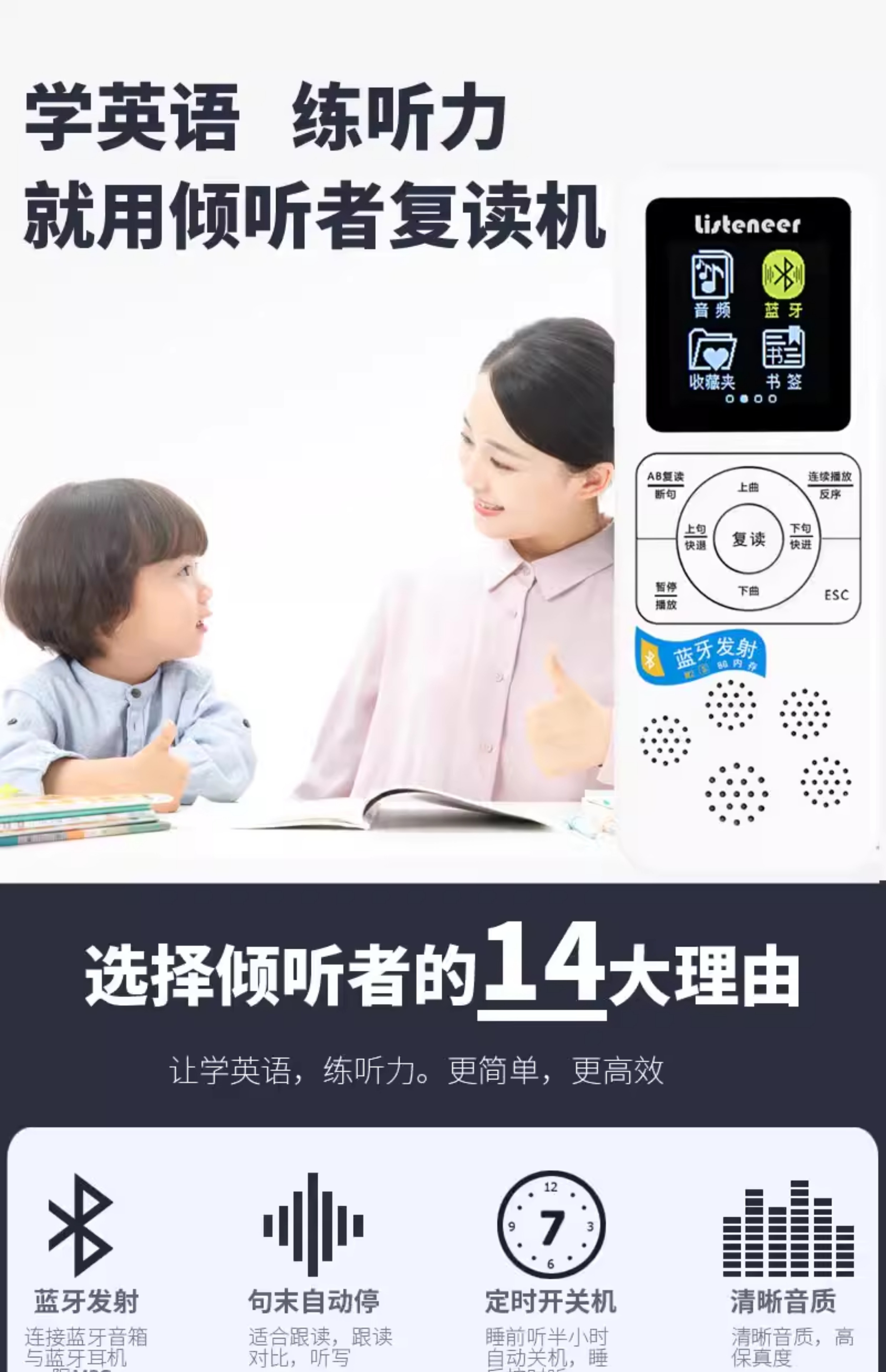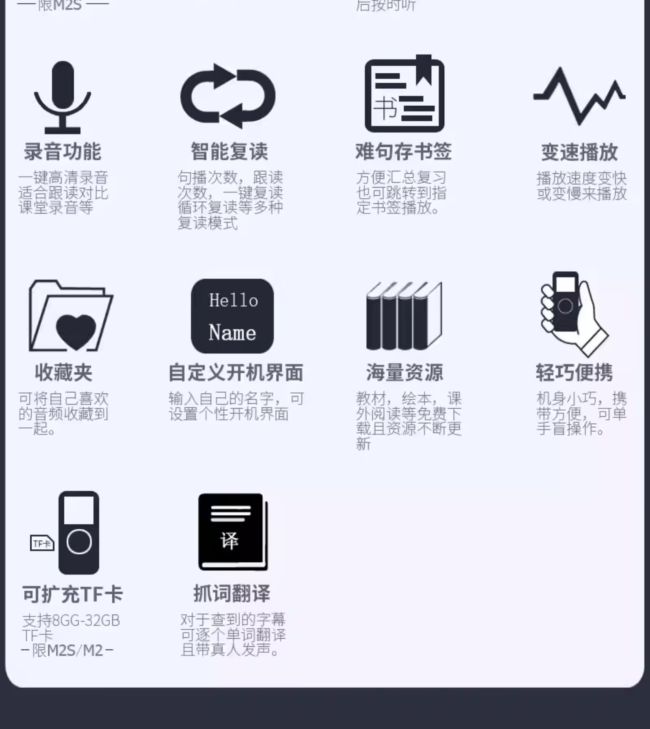 Listener (Listeneer) M2S Repeater Upgraded M5 Elementary School MP3 Player Early Education English Walkman Learning Listening Artifact M2S (8G)