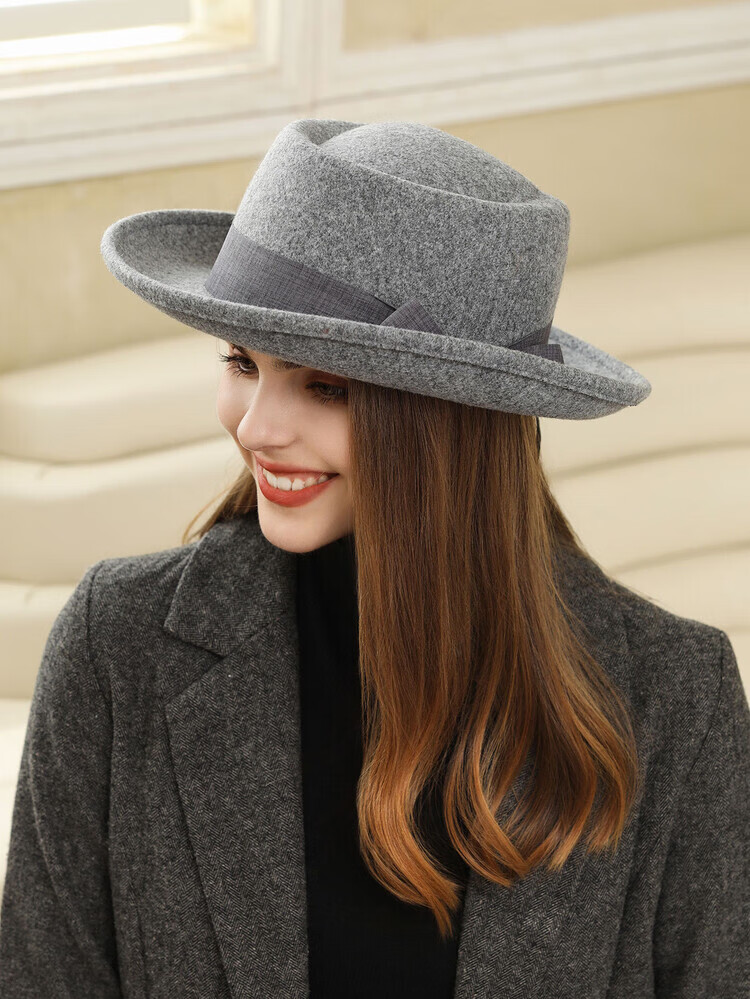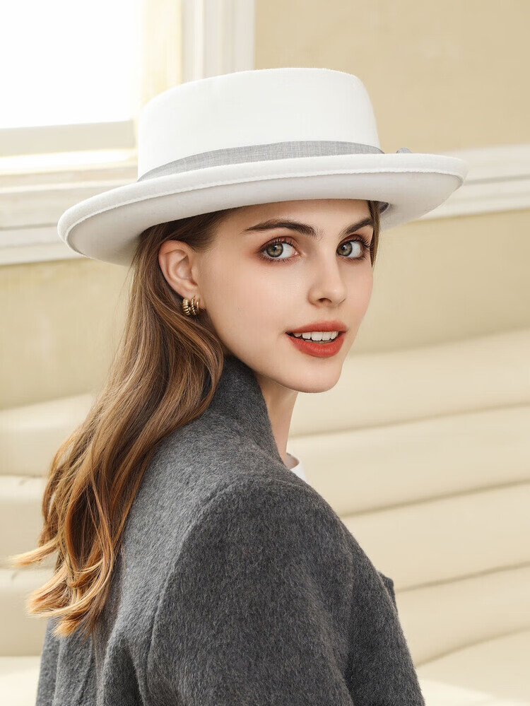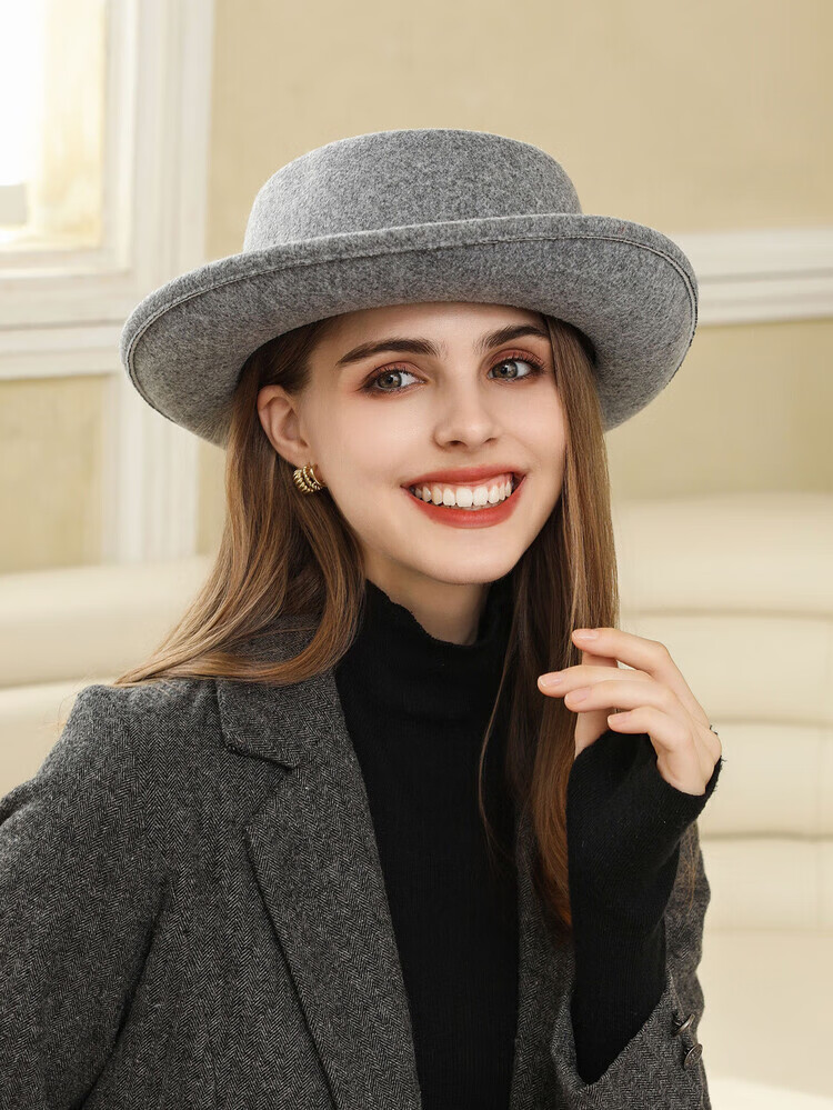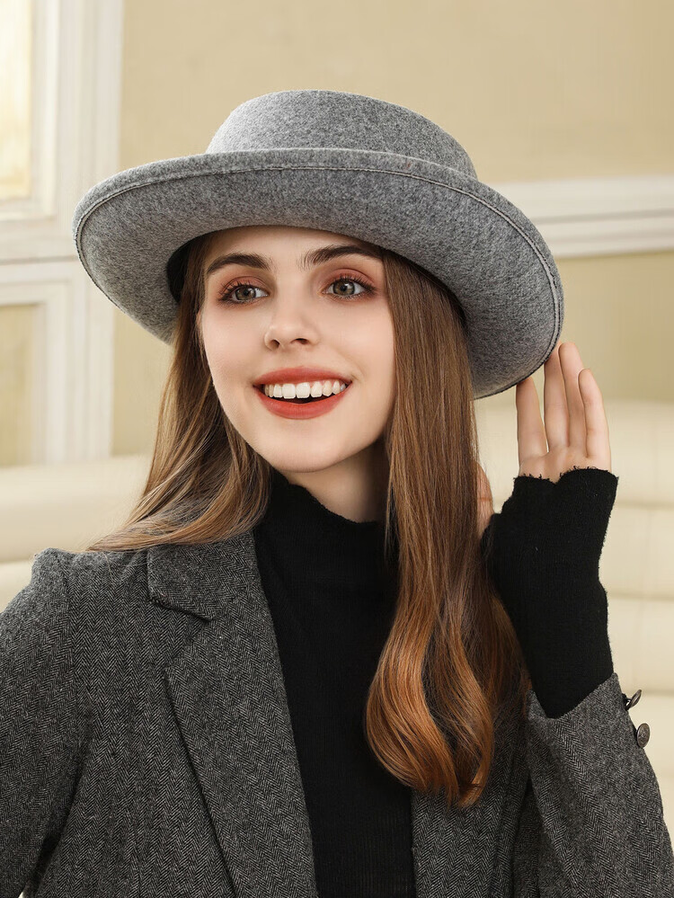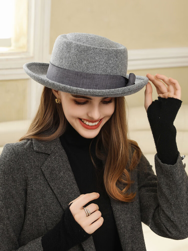 Zunti hat women's autumn and winter wool woolen hat rolled edge flat top retro bow British versatile casual fashion hat black one size