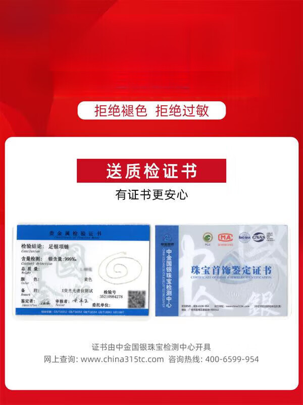 Laohuangxiang 999 silver extended necklace for women without pendant 18k gold plated 925 sterling silver color silver plain chain pure silver-gold color-cross chain 50cm