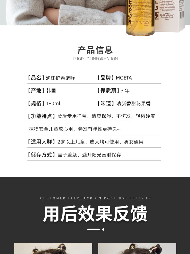 MOETA baby and children's special elastin foam curling perm care curly hair hair gel mousse gel water foam elastin 195ml