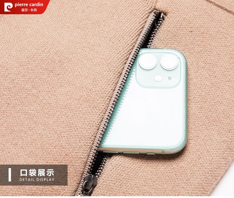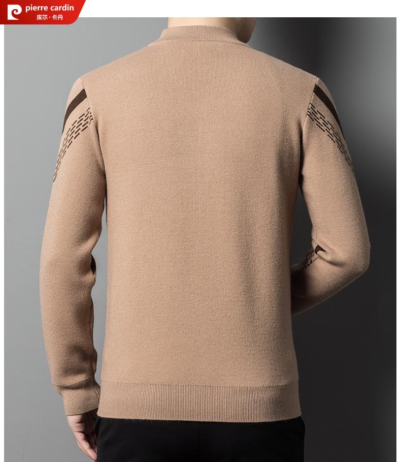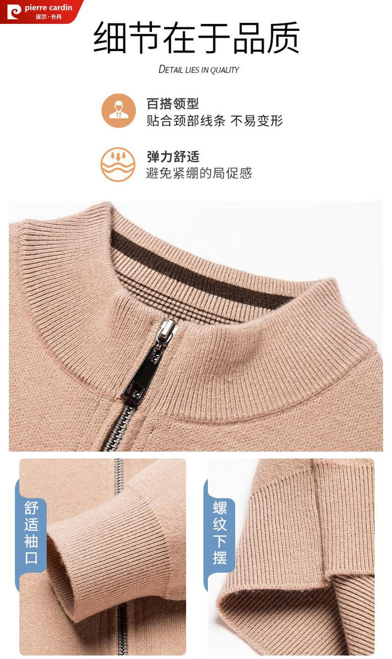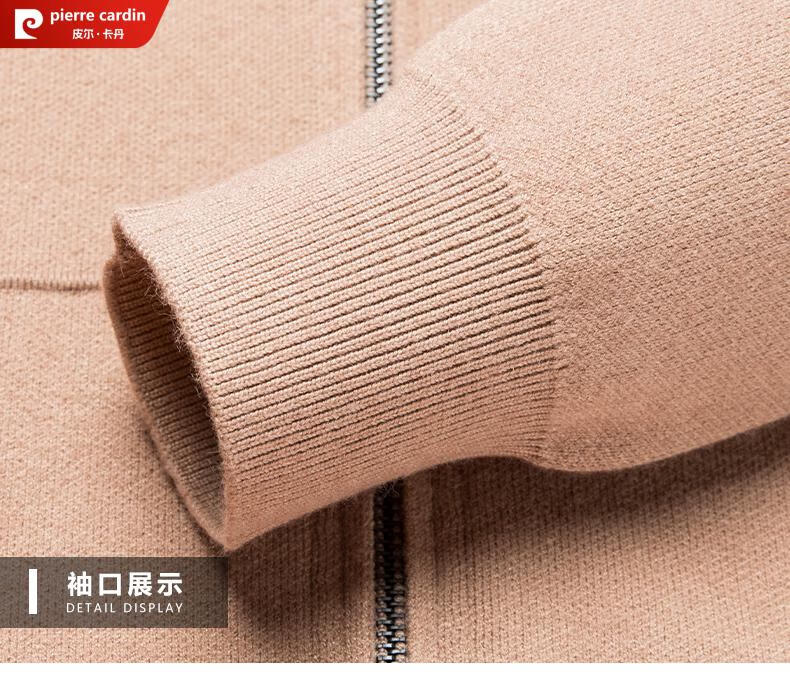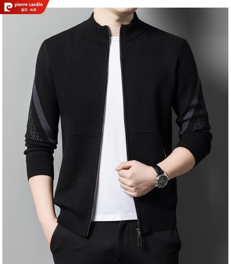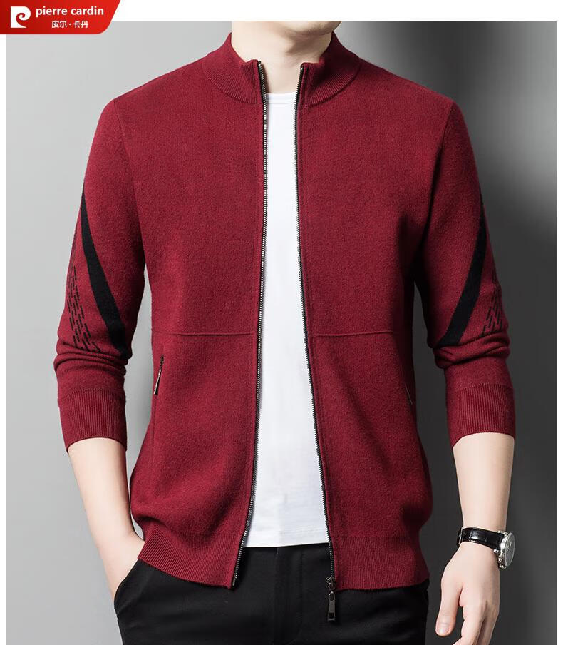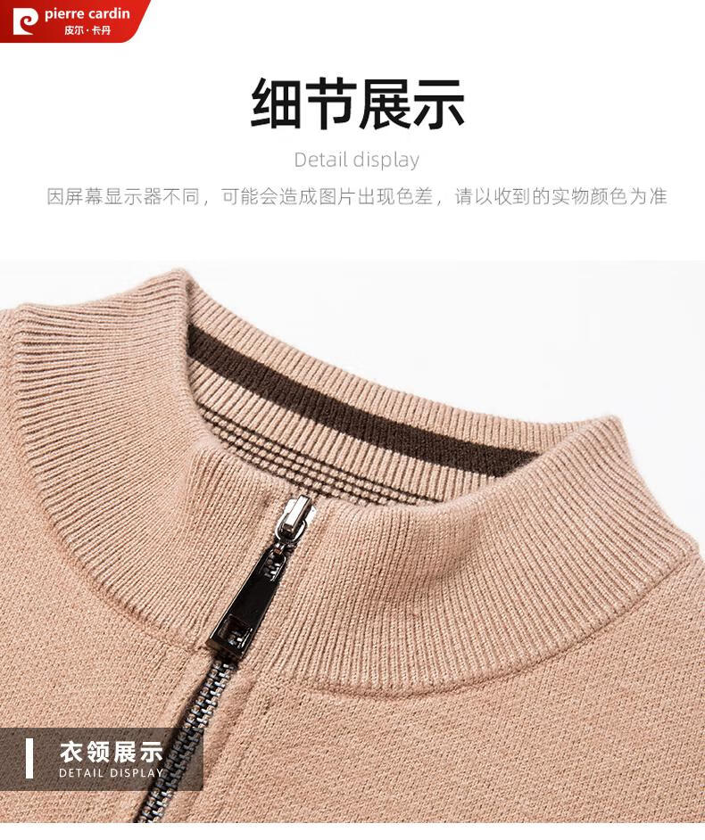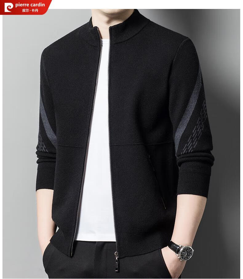 Pierre Cardin 100% Wool Knitted Cardigan Men's Stand Collar Spring and Autumn Jacket Korean Style Men's Casual Sweater Zippered Outer Top Gray XL 175 Recommended 135-150Jin Jin equals 0.5 kg