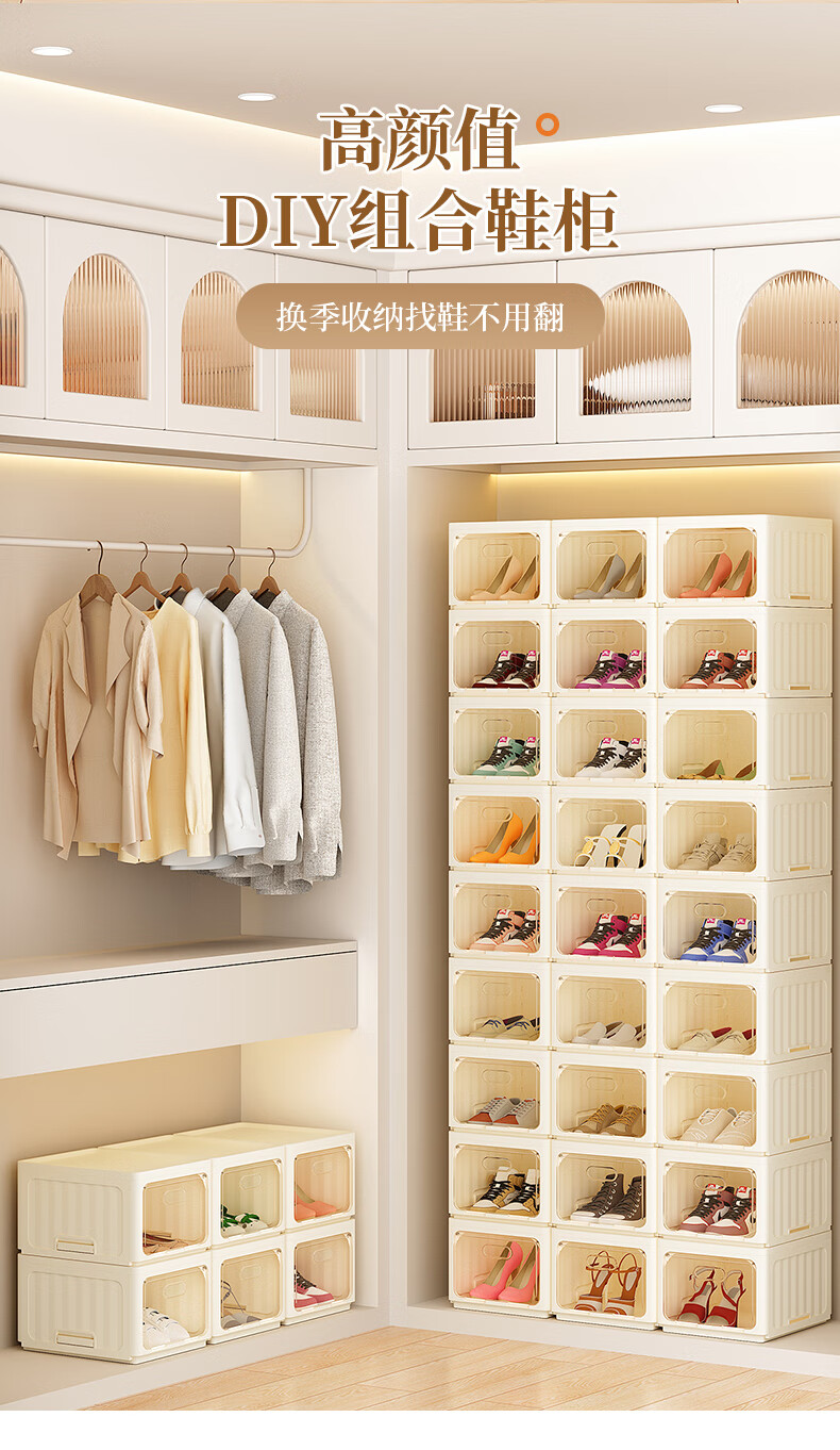WORTHBUY installation-free shoe box home threshold indoor folding shoe cabinet storage box transparent shoe rack ant shoe storage artifact eight packs
