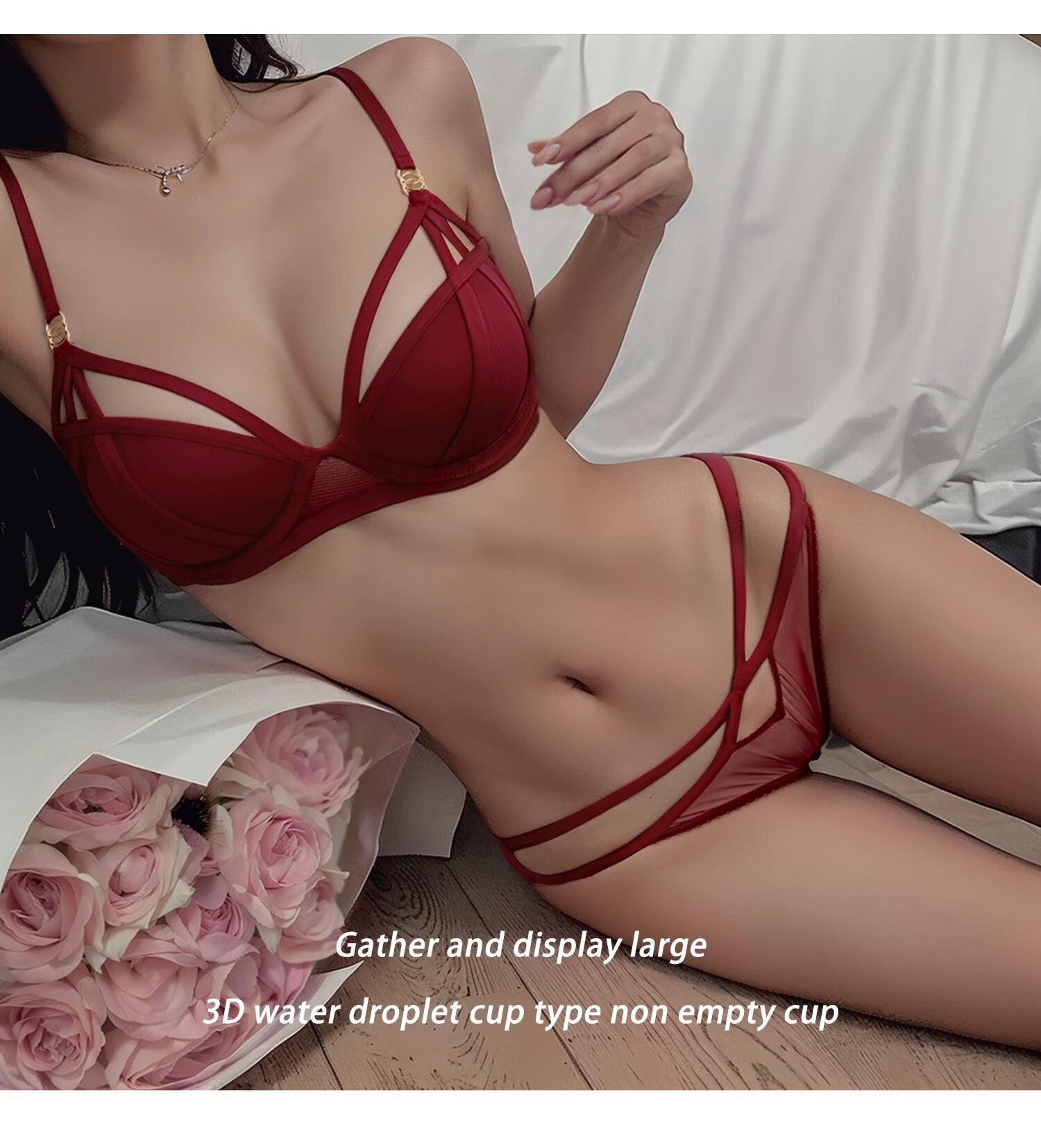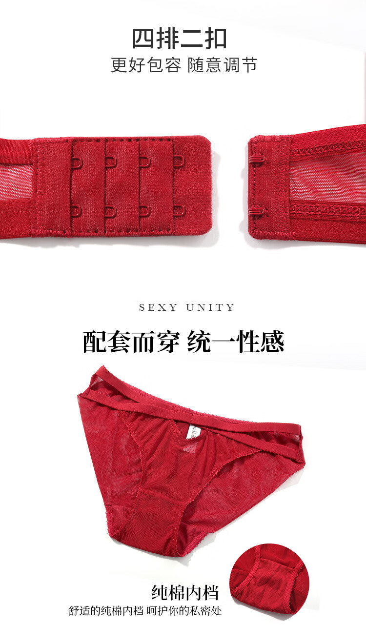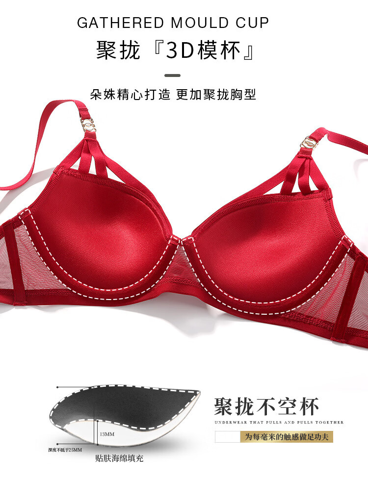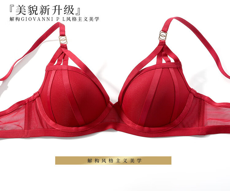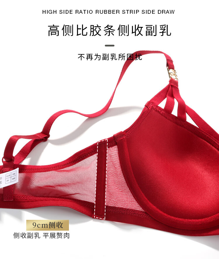 Victoria Palace Zodiac Year Red Bra Sexy Festive Wedding Bride Underwear Set Sexy Small Breast Push Up Bra Red 75C