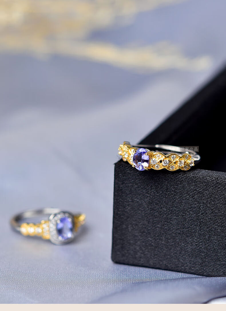 Feifudi Tanzanite Ring Women's s925 Silver Niche Design Ring Tanzanite Bare Stone Self-Discipline Couple Ring Index Finger Ring 01#s925 Silver Tanzanite Ring