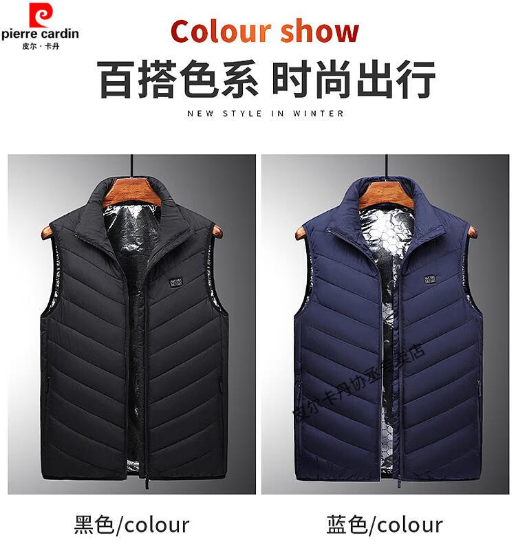 Pierre Cardin Winter Smart Charging Heating Warm Cycling Heated Vest Graphene Electric Heating Temperature Control Men's Stand-up Collar Vest for Women Black Zone 21 (Plus 20,000 mAh Power Bank) 2XL