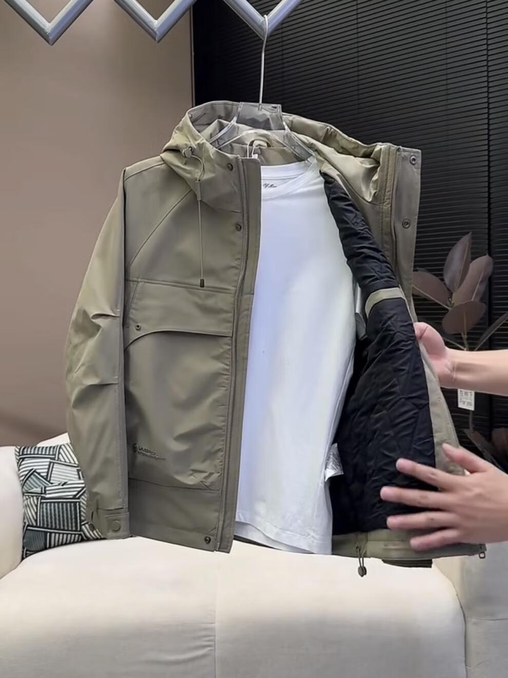 ROMON autumn and winter new men's assault quilted jacket 2025 thickened windproof workwear hooded two-cotton jacket black thick quilted XL recommended weight 135-150Jin Jin equals 0.5 kg