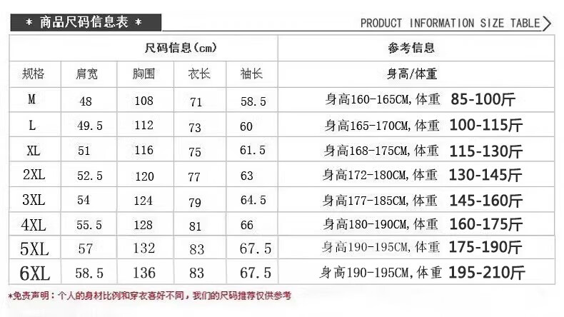 China (cm) 165 / 88-90 170 / 96-98 175 / 108-110 180 / 118-122 185 / 126-130