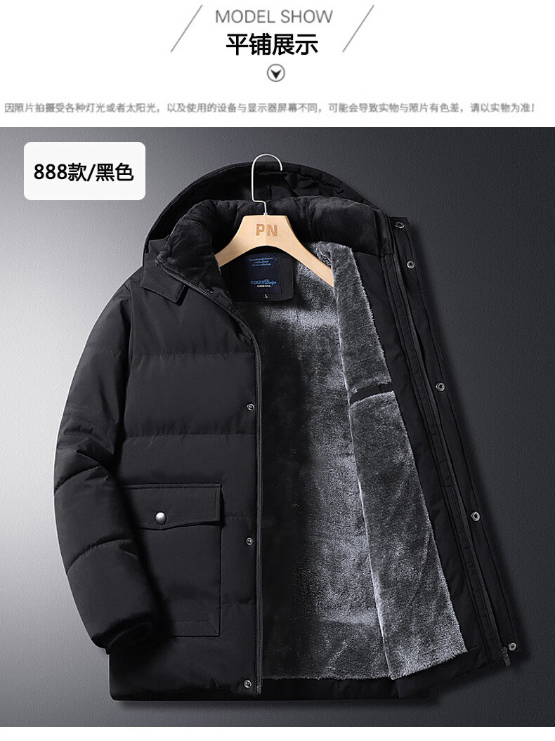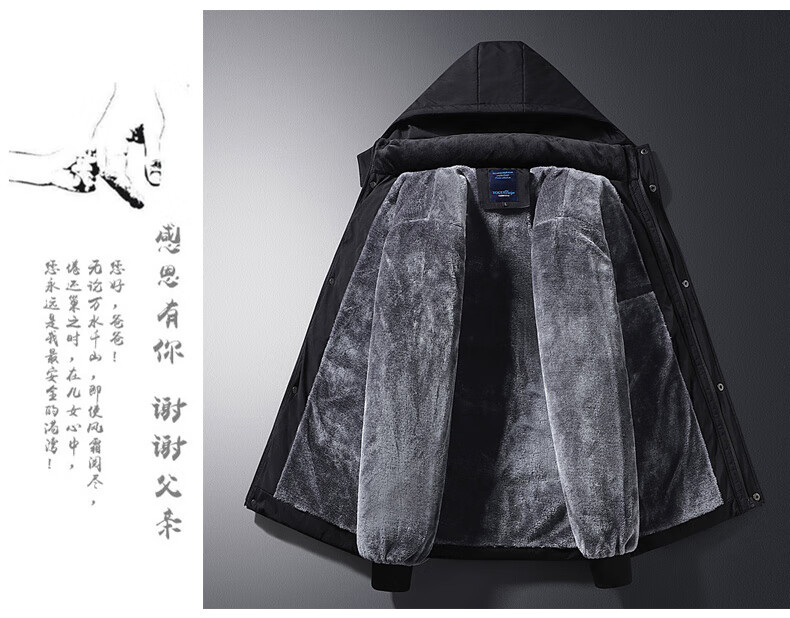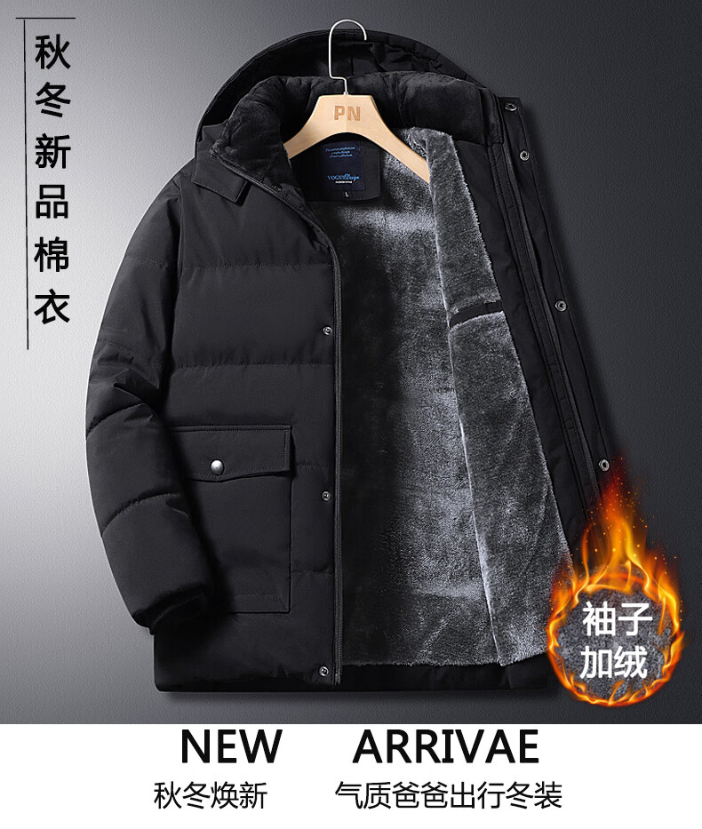 Woodpecker (TUCANO) middle-aged and elderly men's cotton-padded jackets, men's winter coats with velvet and thickening, autumn and winter grandpa's down-padded jackets, elderly cotton-padded jackets 888 sleeves with velvet - black M Recommended weight 85 - Jin Jin equals 0.5 kg
