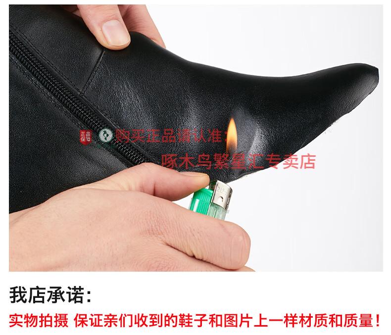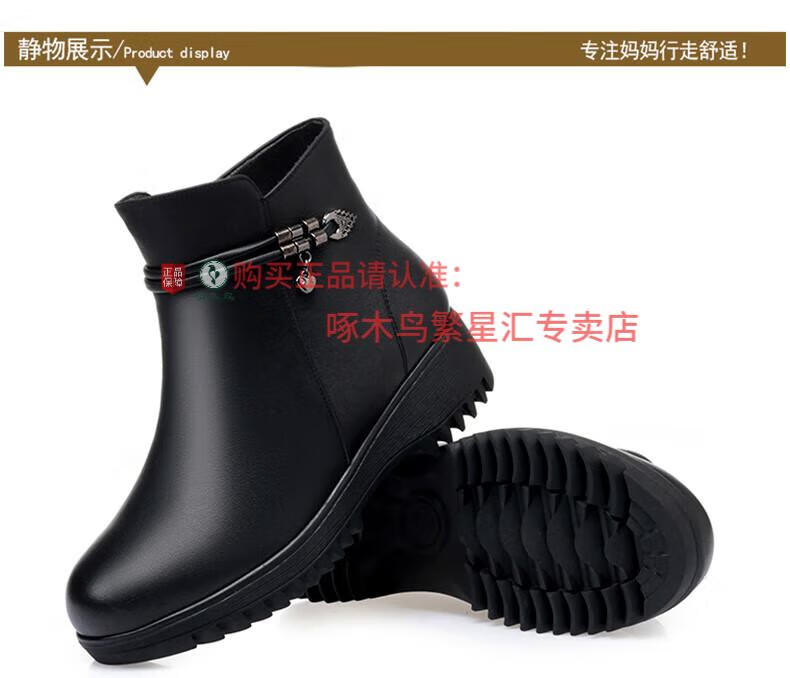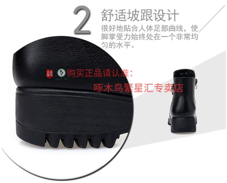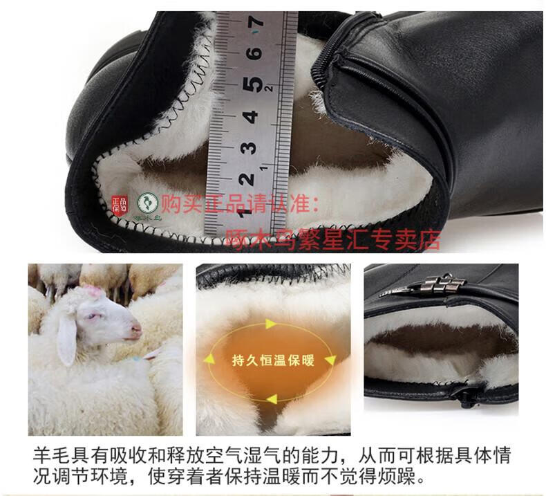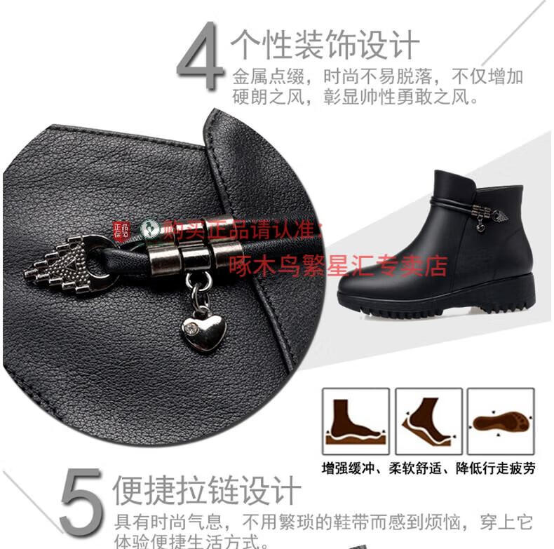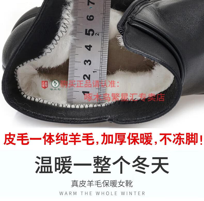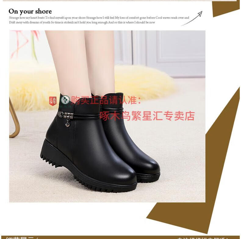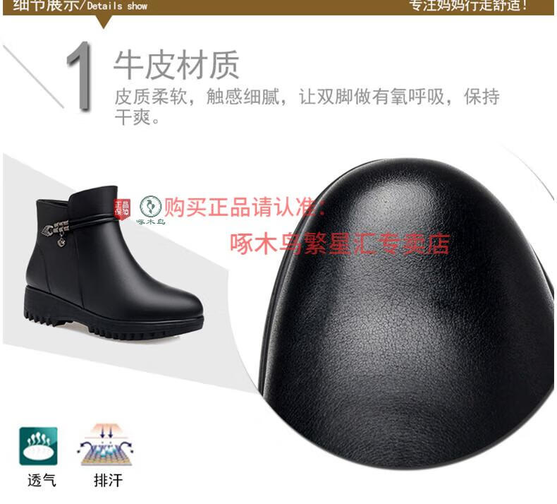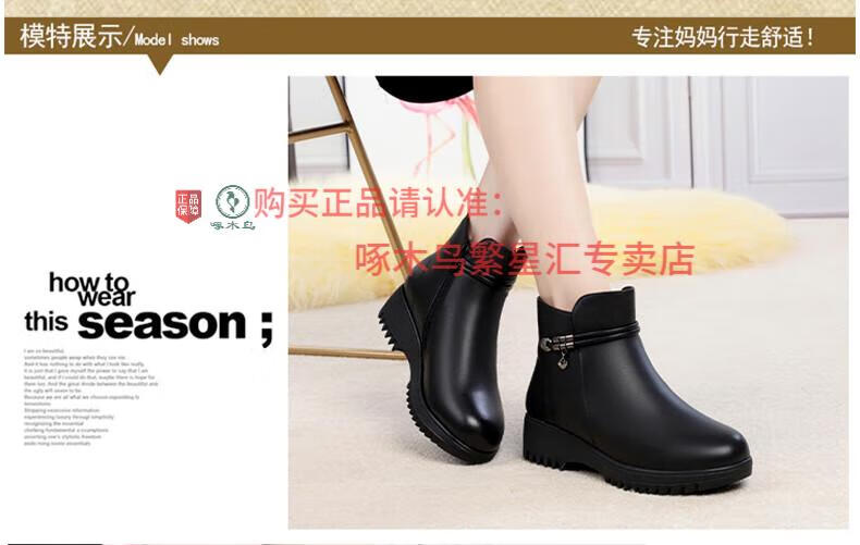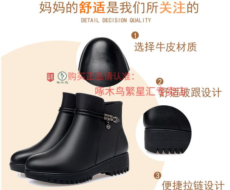 Woodpecker full cowhide short boots for women genuine leather wedge flat mother cotton shoes winter plus suede leather shoes wool winter shoes large size women's boots black full cowhide + thickened pure wool lining 37