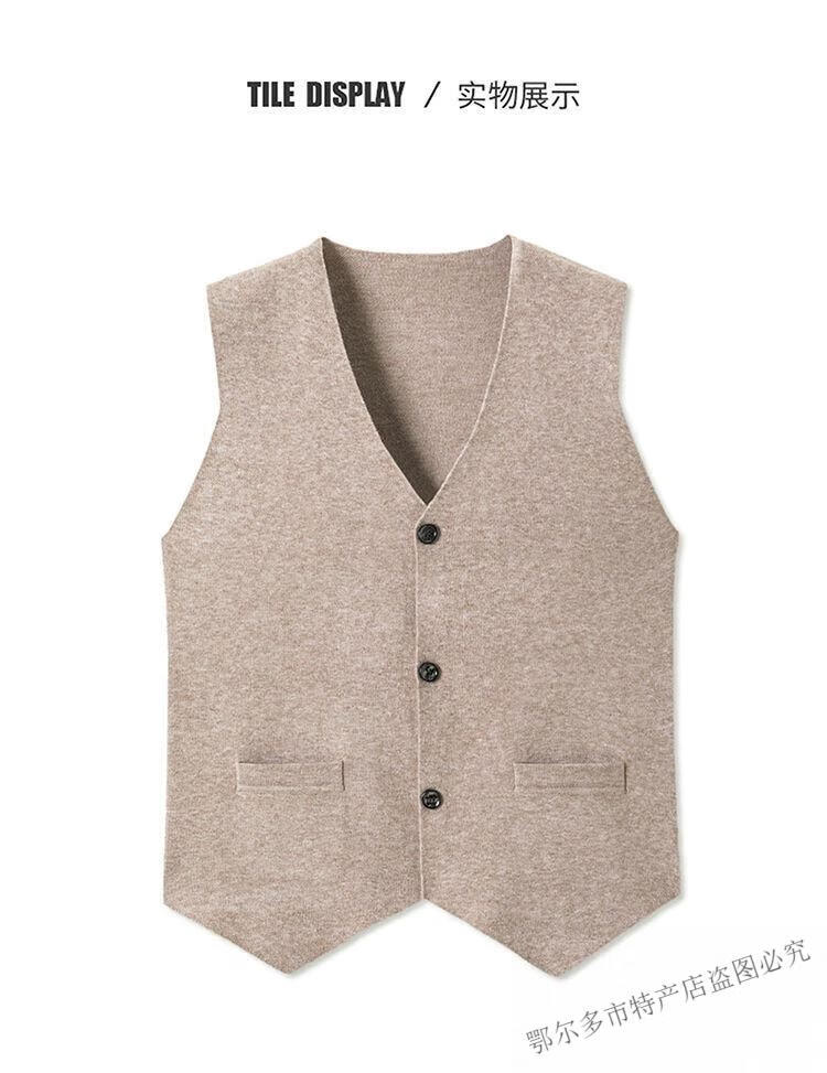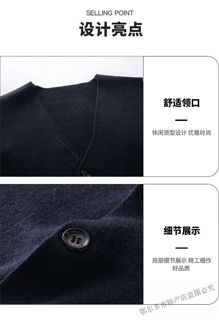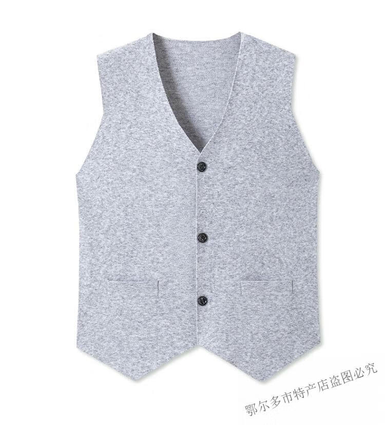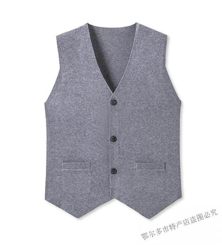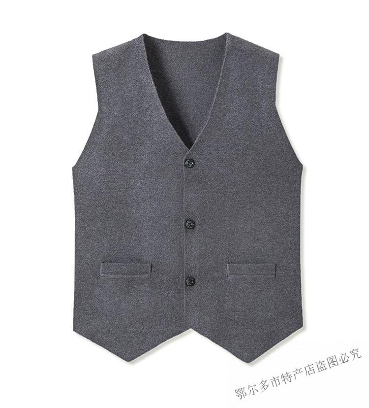 鄂尔多斯市秋冬高档羊绒毛衫西装马甲男中年坎肩爸爸装羊毛开衫背 中灰 175/XL适合135斤-150斤