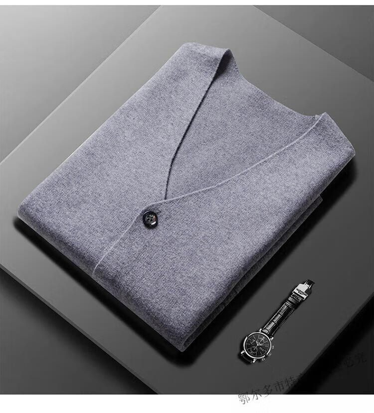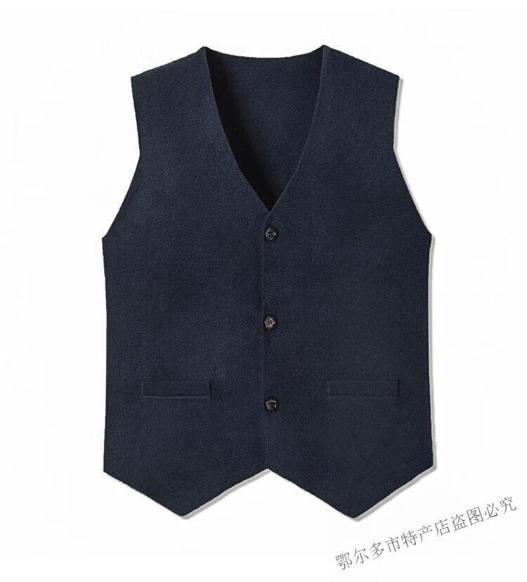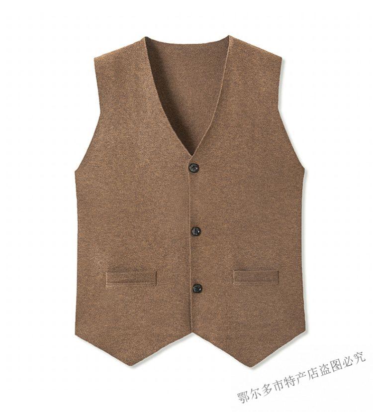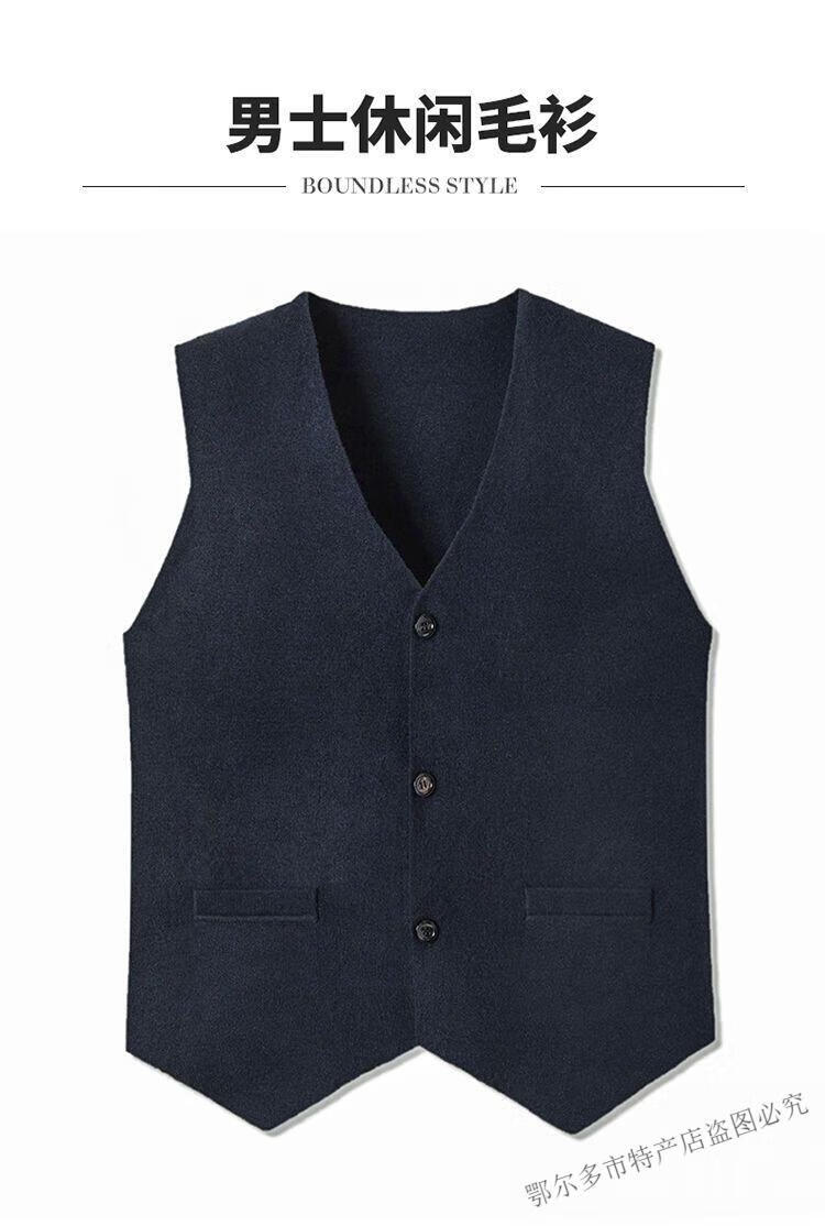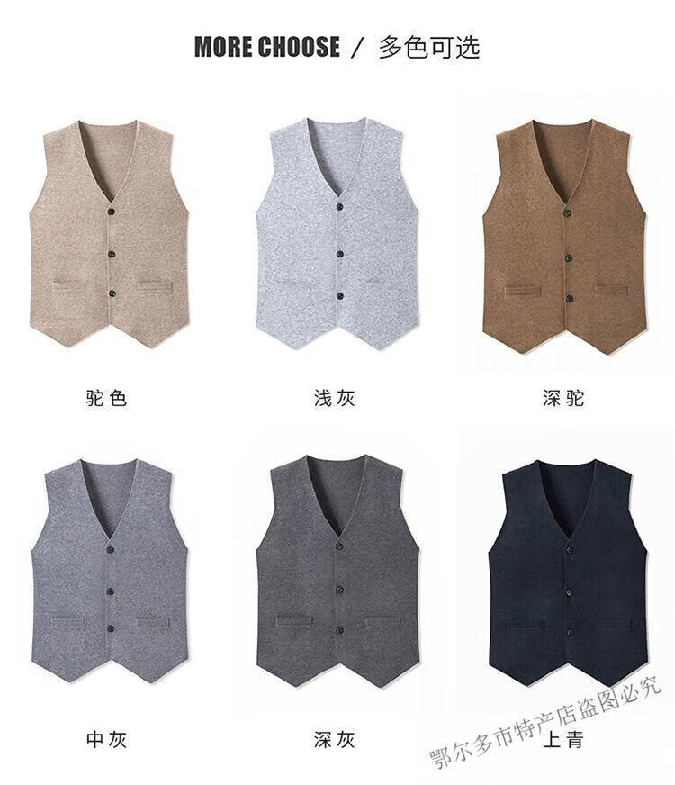 鄂尔多斯市秋冬高档羊绒毛衫西装马甲男中年坎肩爸爸装羊毛开衫背 中灰 175/XL适合135斤-150斤