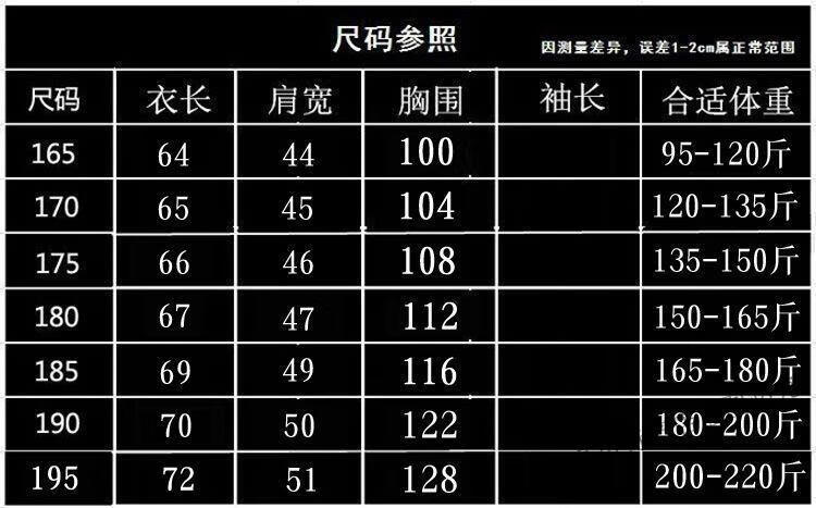 China (cm) 165 / 88-90 170 / 96-98 175 / 108-110 180 / 118-122 185 / 126-130