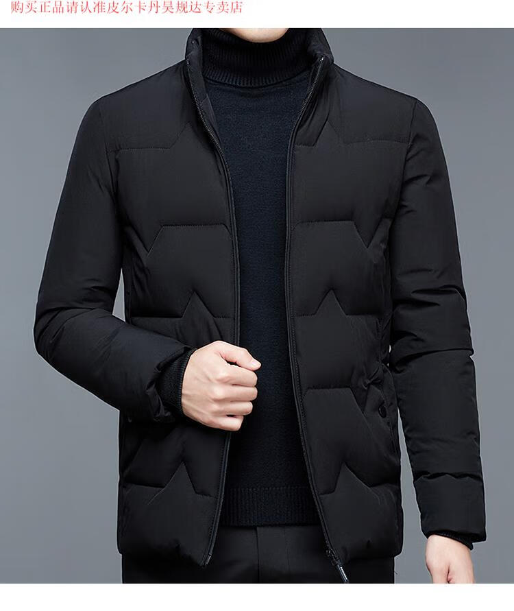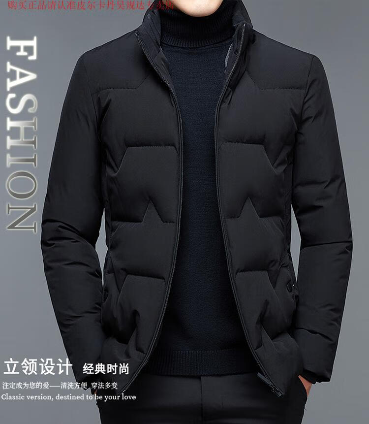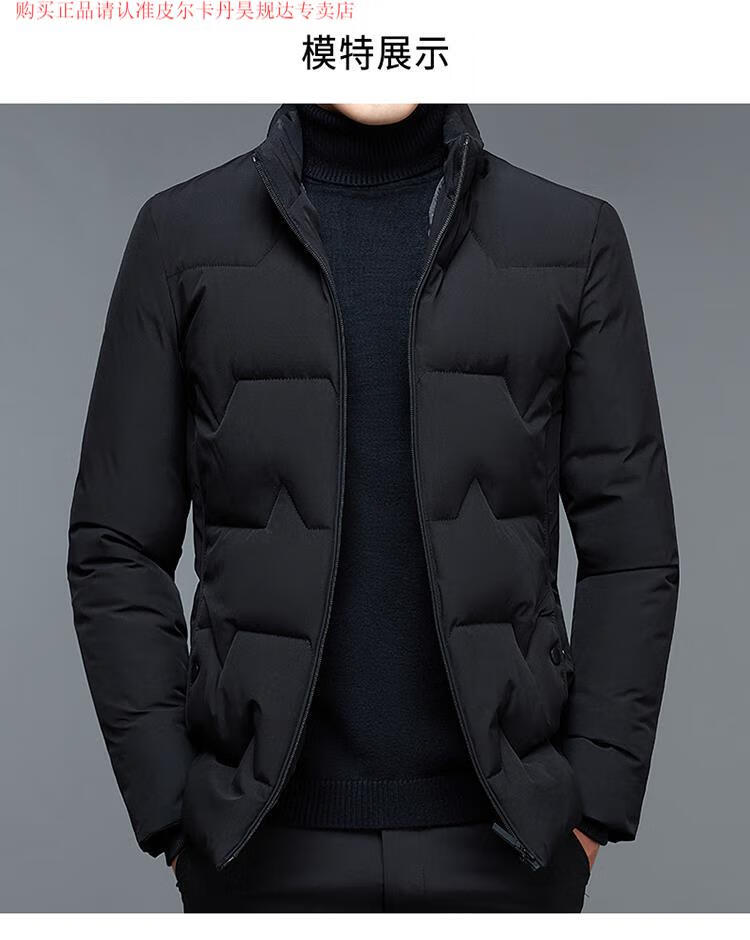 皮尔卡丹(pierre cardin)品牌白鸭绒羽绒服男士冬季短款加厚上衣休闲百搭潮流时尚夹克外套 黑色 175/L(120-140斤)