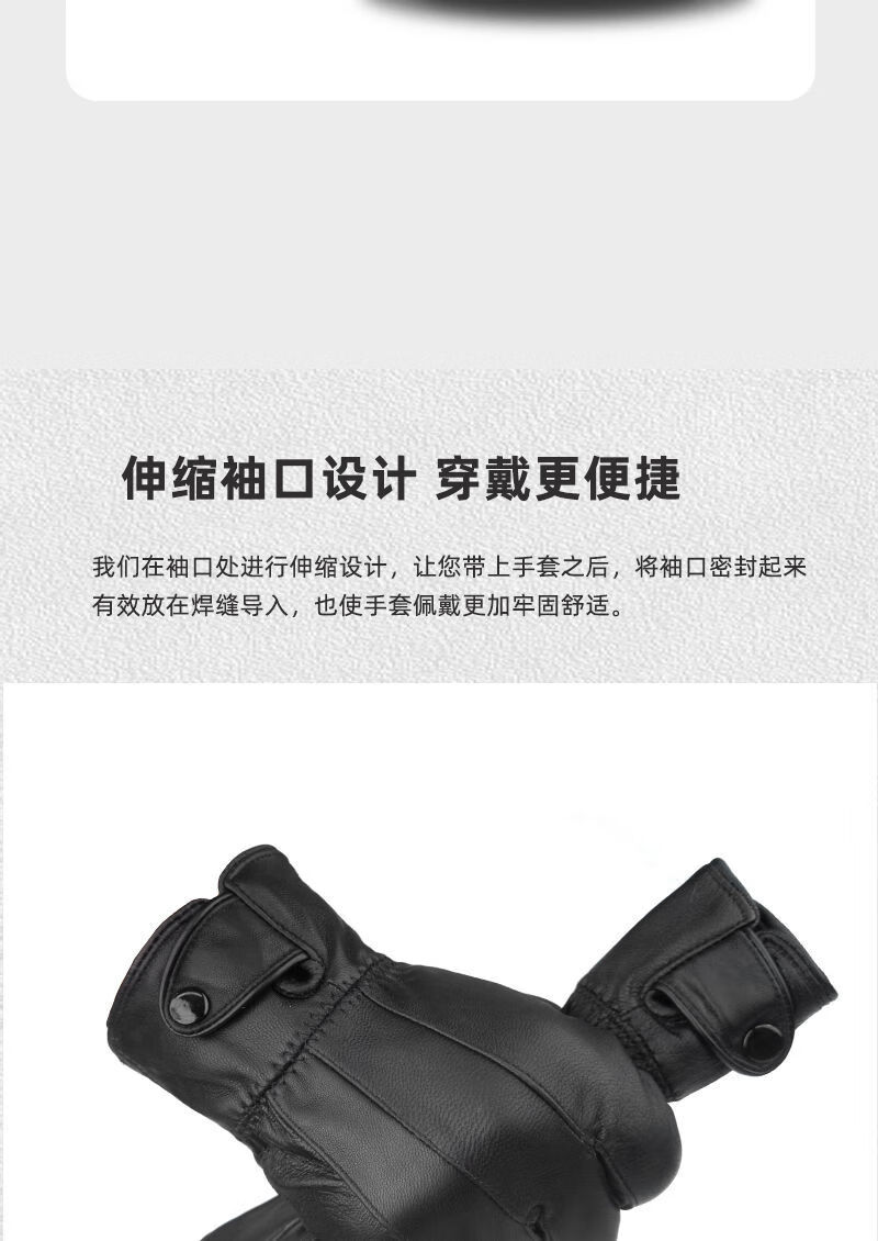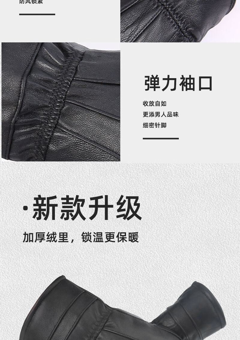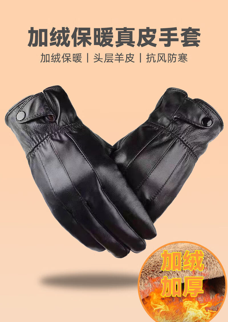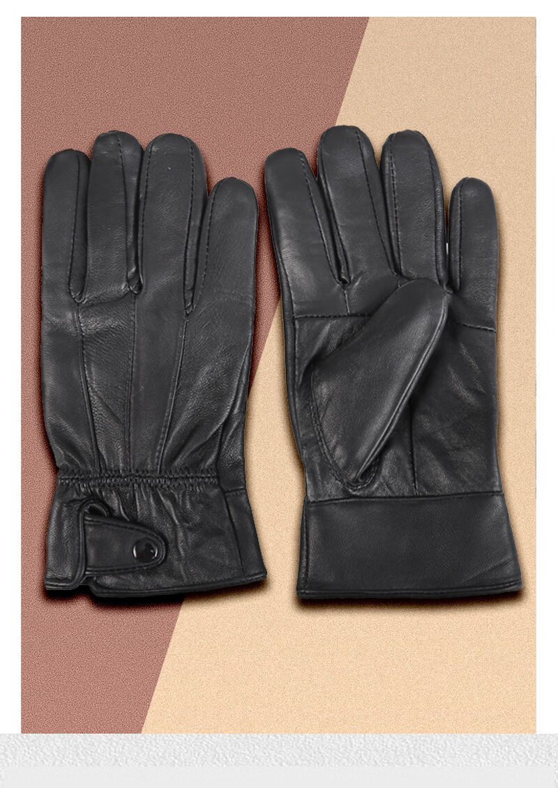 Spring Night Snow Pure Sheepskin Men's Genuine Leather Gloves Plus Velvet Thickened Windproof and Warm Cycling Driving Gloves Genuine Leather Style - Buckle - Black Men
