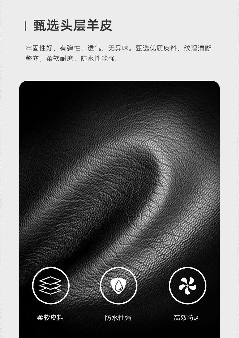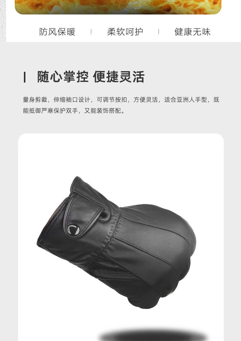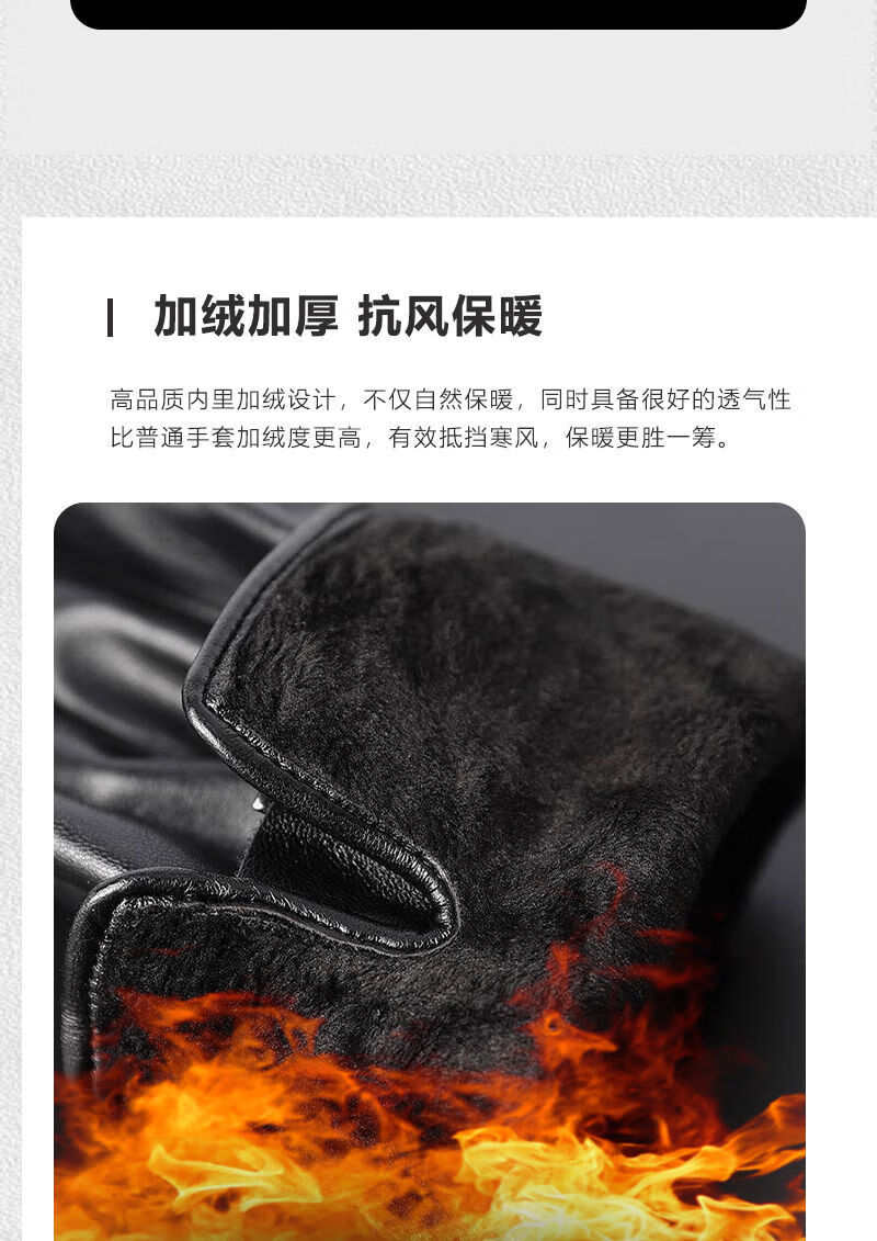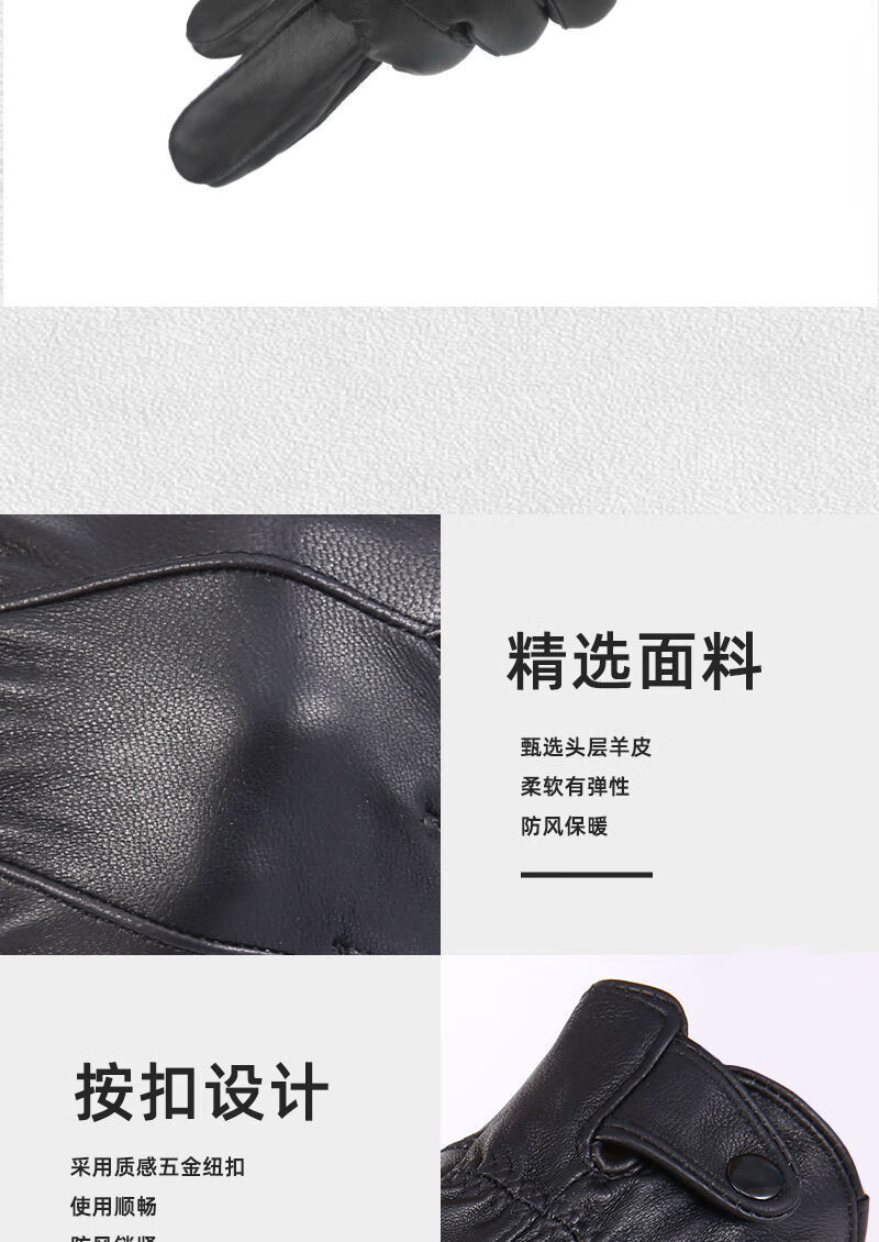 Spring Night Snow Pure Sheepskin Men's Genuine Leather Gloves Plus Velvet Thickened Windproof and Warm Cycling Driving Gloves Genuine Leather Style - Buckle - Black Men