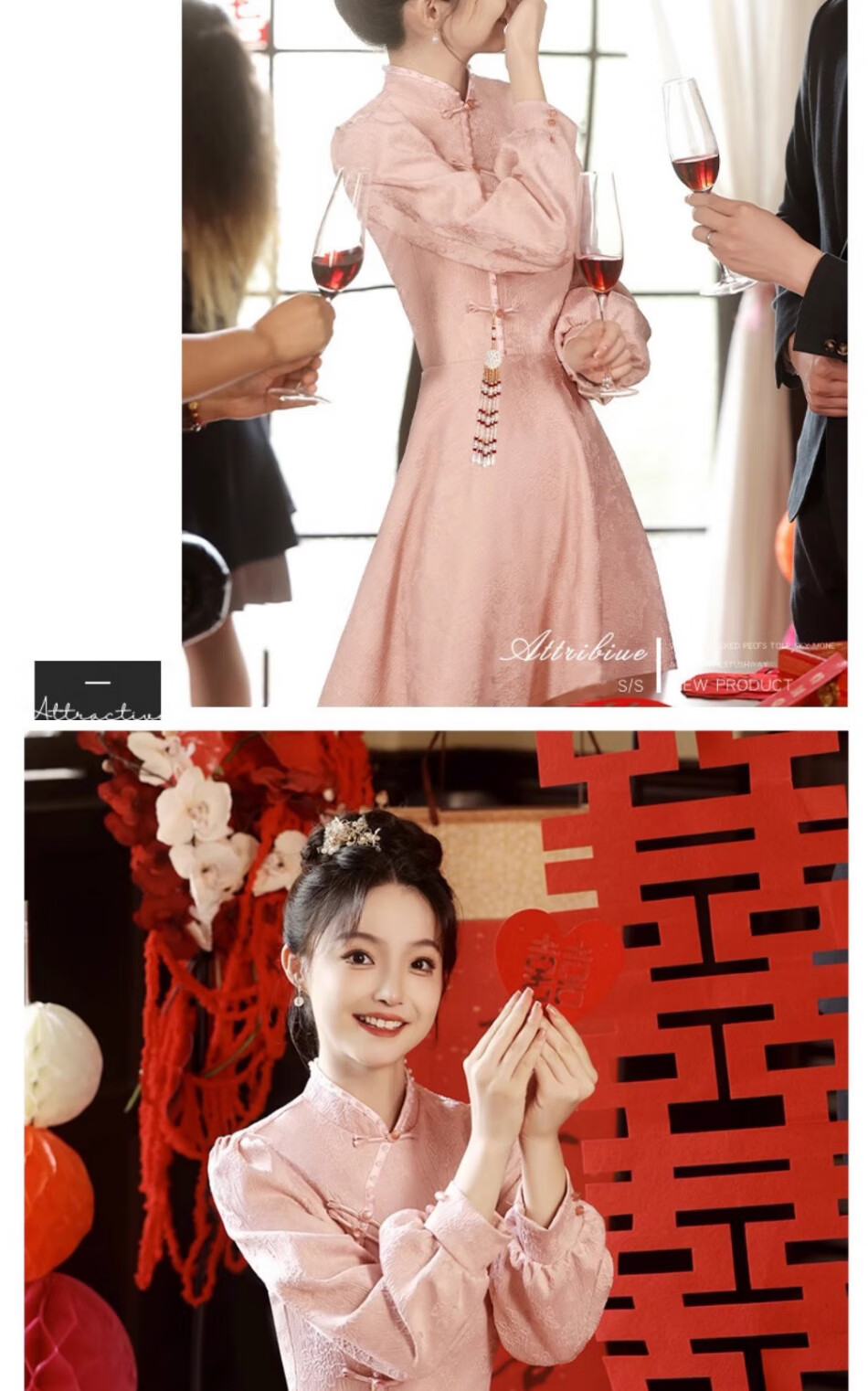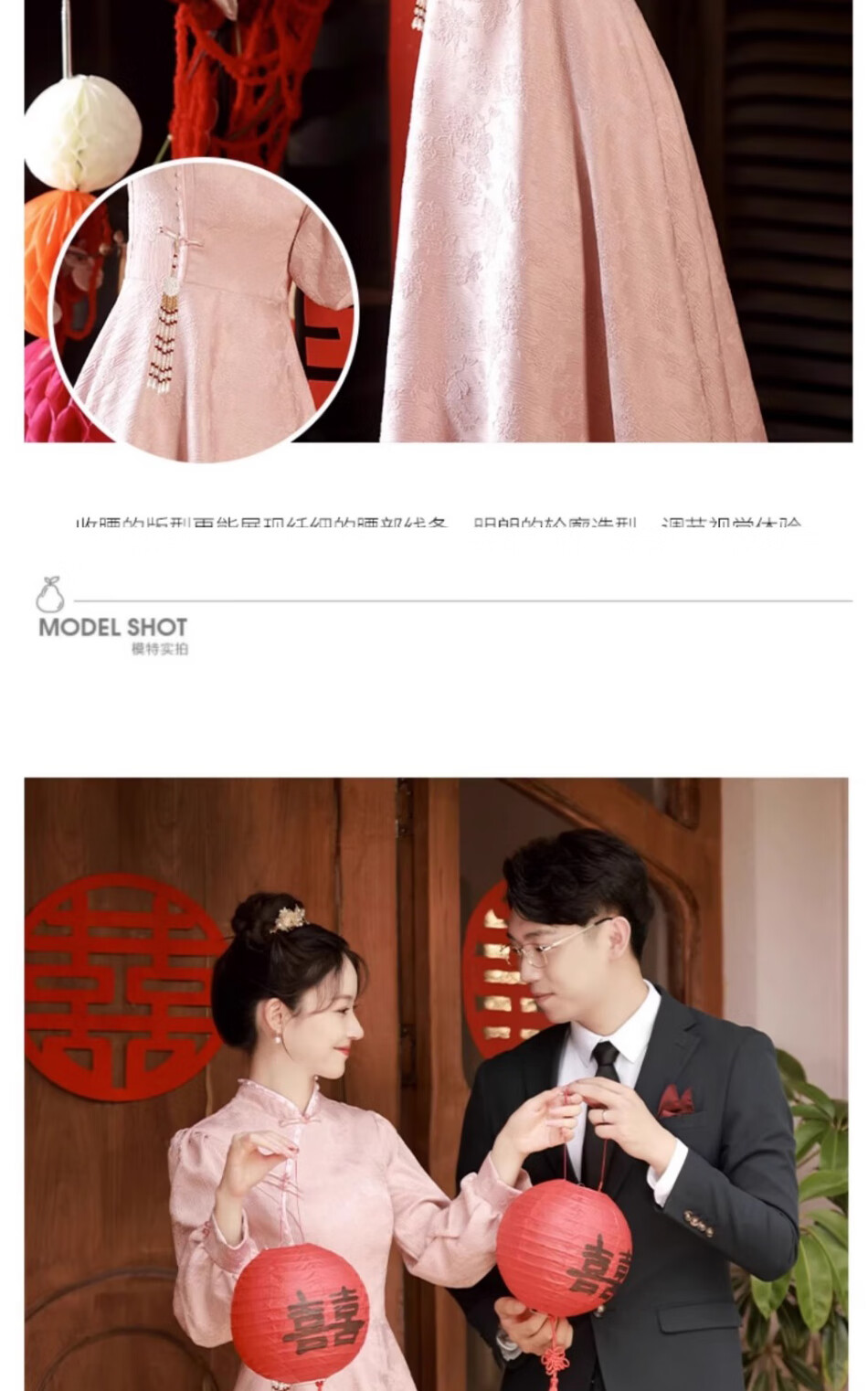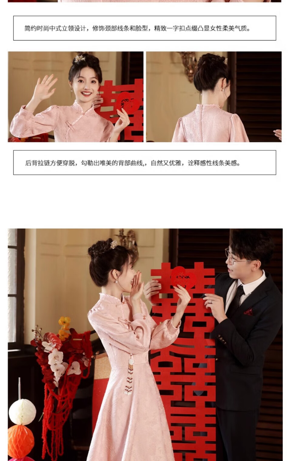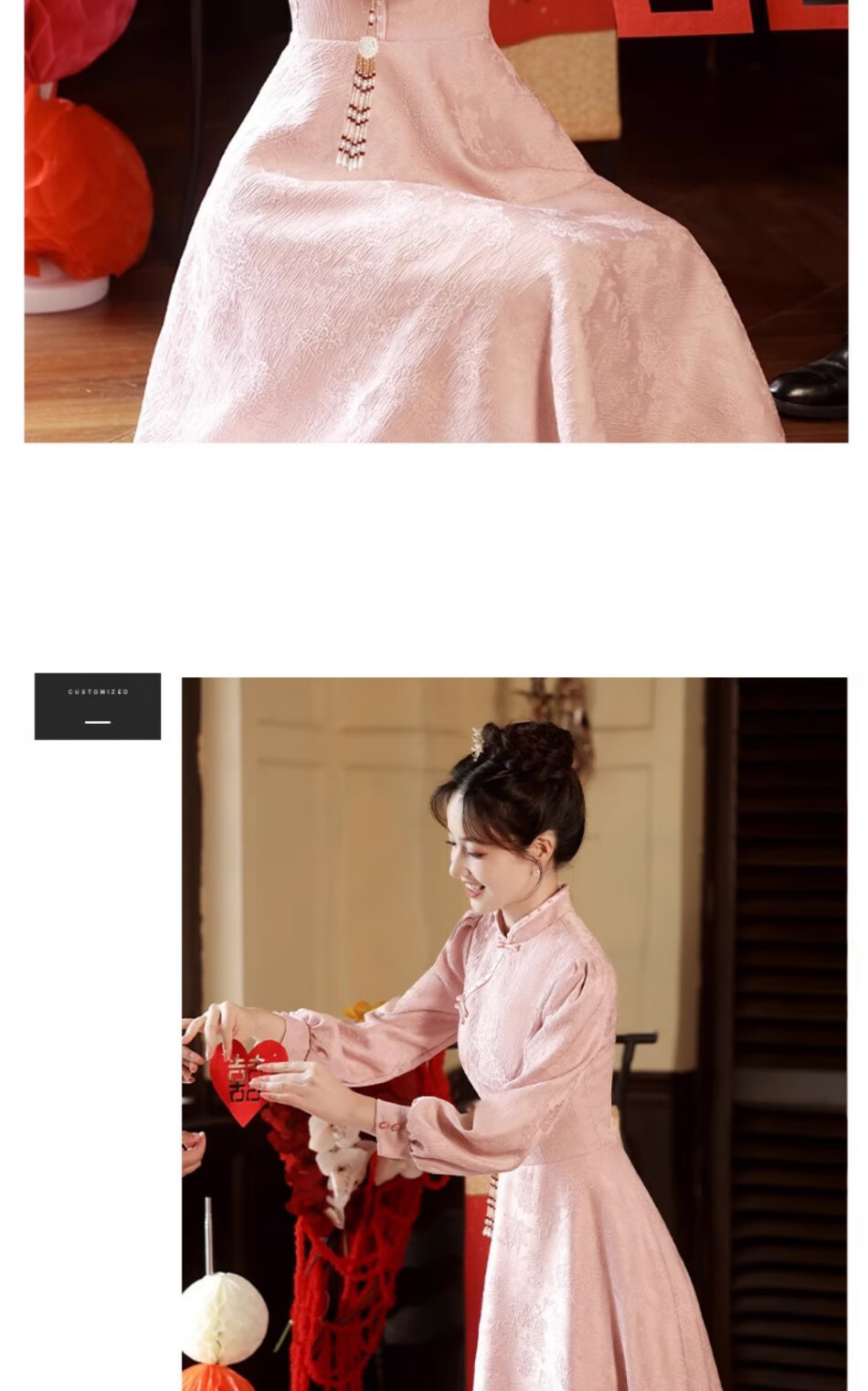 Seidler pink cheongsam toast dress bride engagement dress new Chinese banquet wedding evening dress autumn and winter long-sleeved dress pink XL (recommended 116-125 Jin Jin equals 0.5 kg)