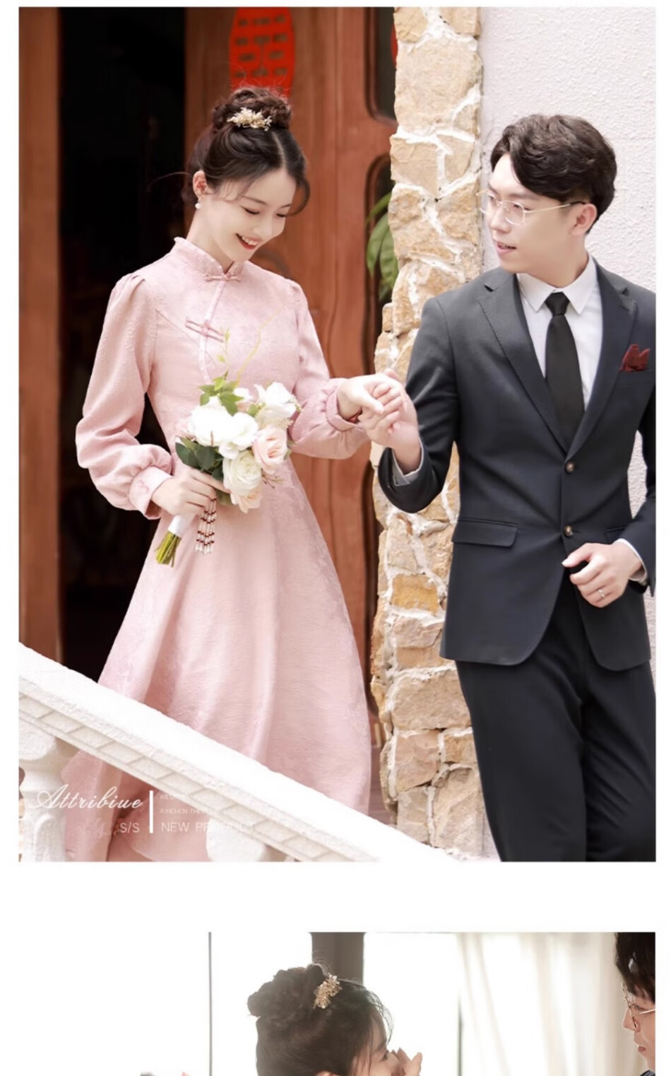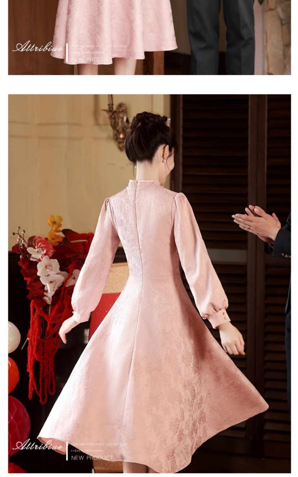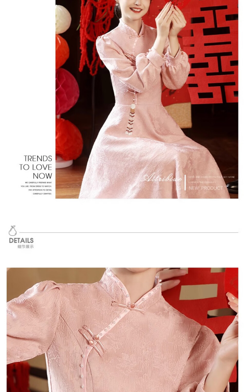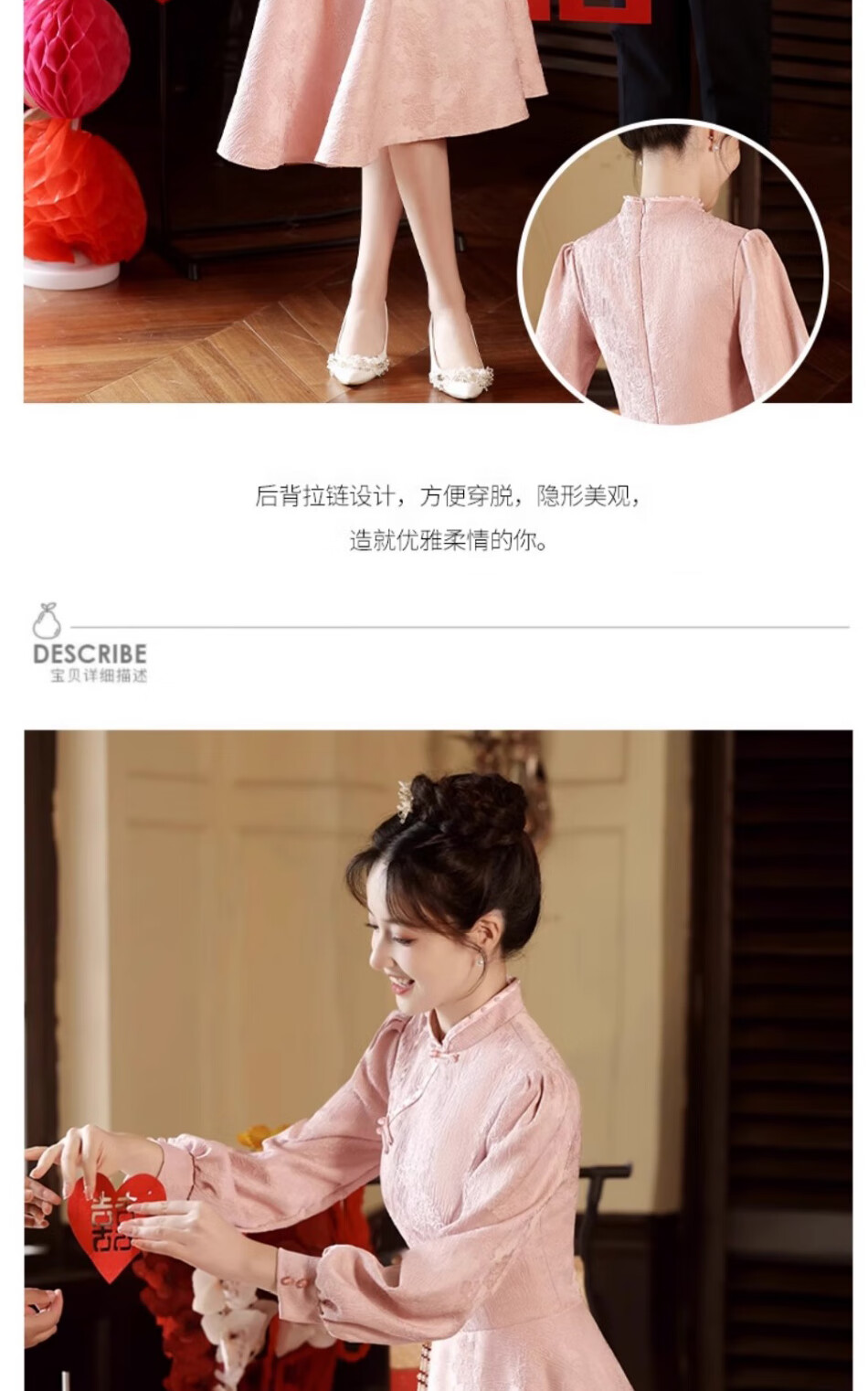 Seidler pink cheongsam toast dress bride engagement dress new Chinese banquet wedding evening dress autumn and winter long-sleeved dress pink XL (recommended 116-125 Jin Jin equals 0.5 kg)
