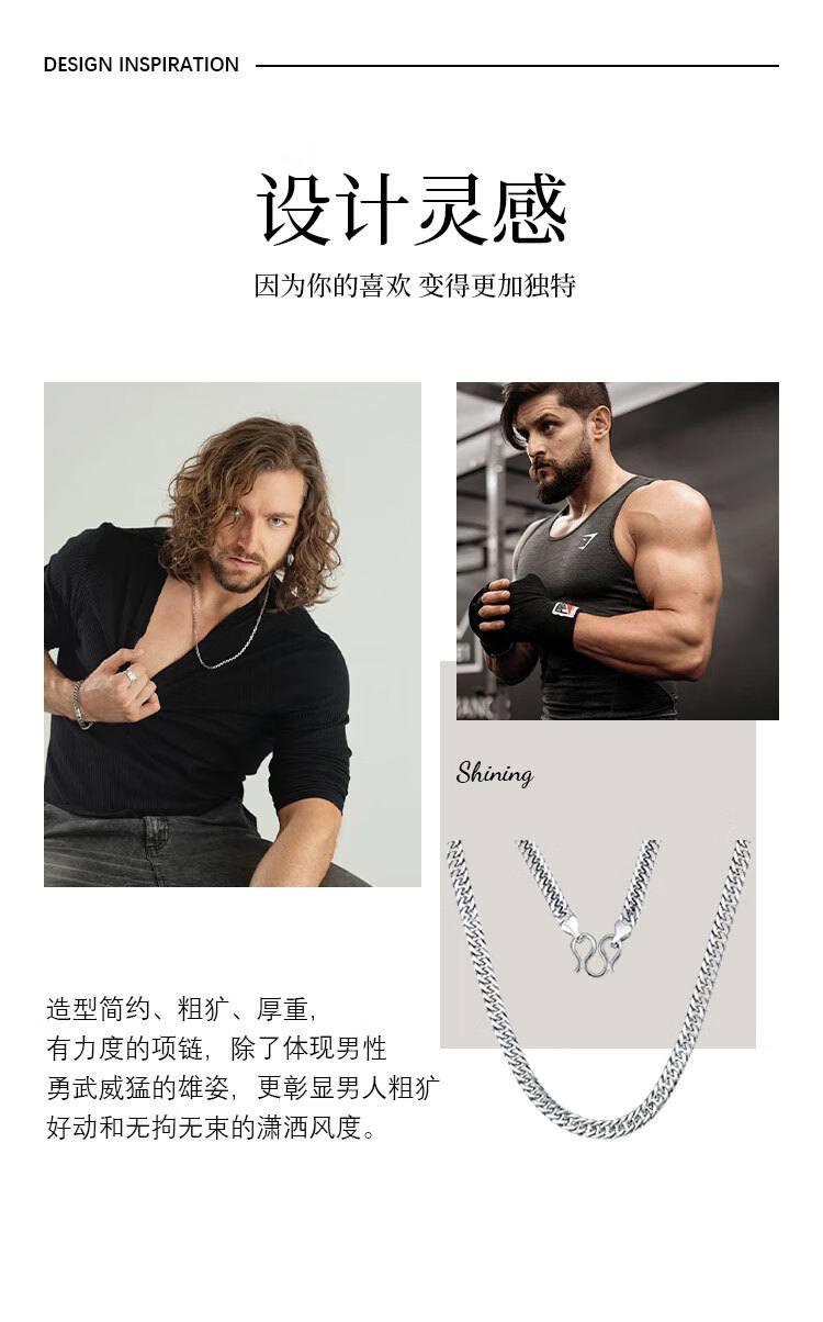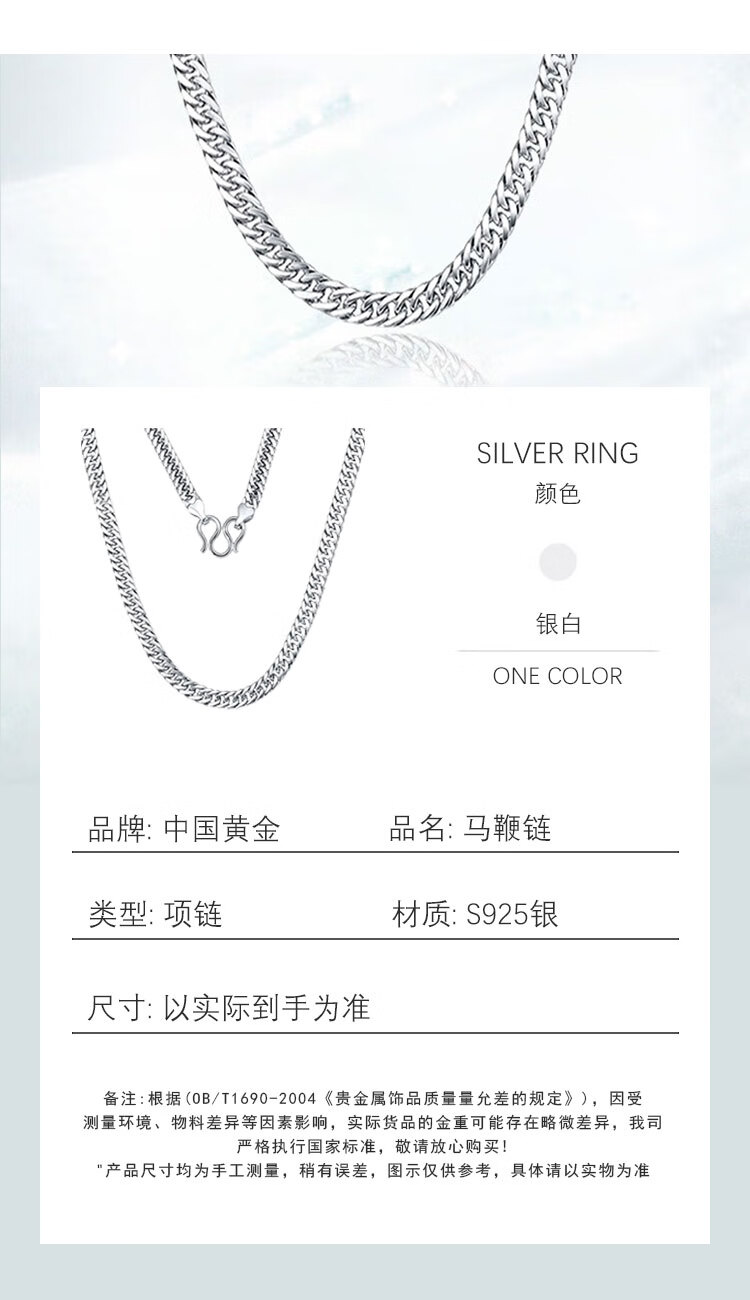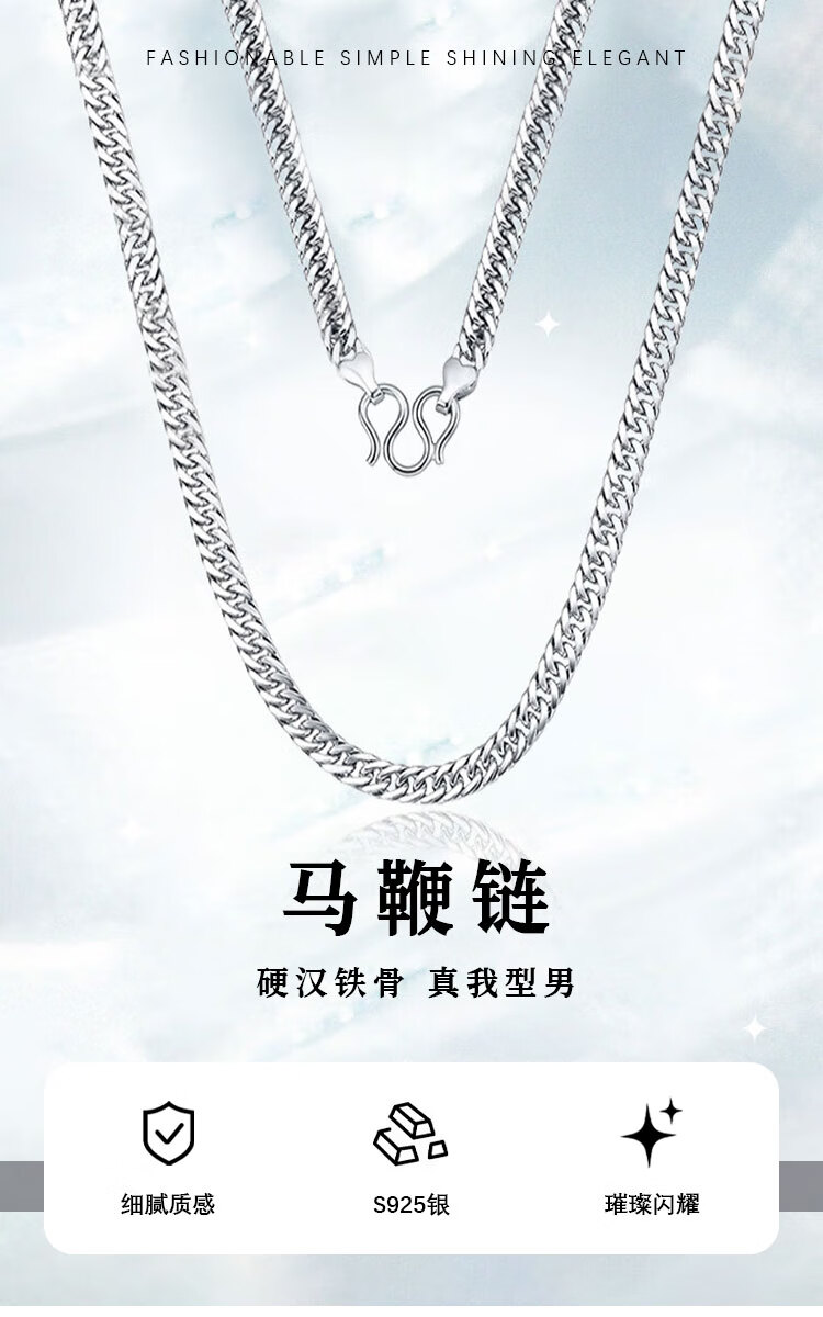 CHINA GOLD S925 Silver Cuban Necklace Men's Thick Plain Horsewhip Chain Jewelry Valentine's Day Birthday Gift for Boyfriend and Husband Today/Next Day Delivery S925 Silver Horsewhip Chain Approximately 34g