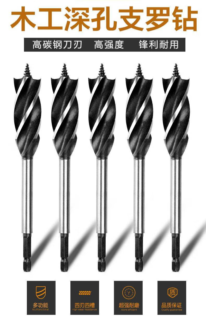 Yanran electric wrench woodworking drill bit four-slot four-edged Luo drill hand electric drill round woodworking punch twist drill hole opener electric wrench four-edged drill 20 mm