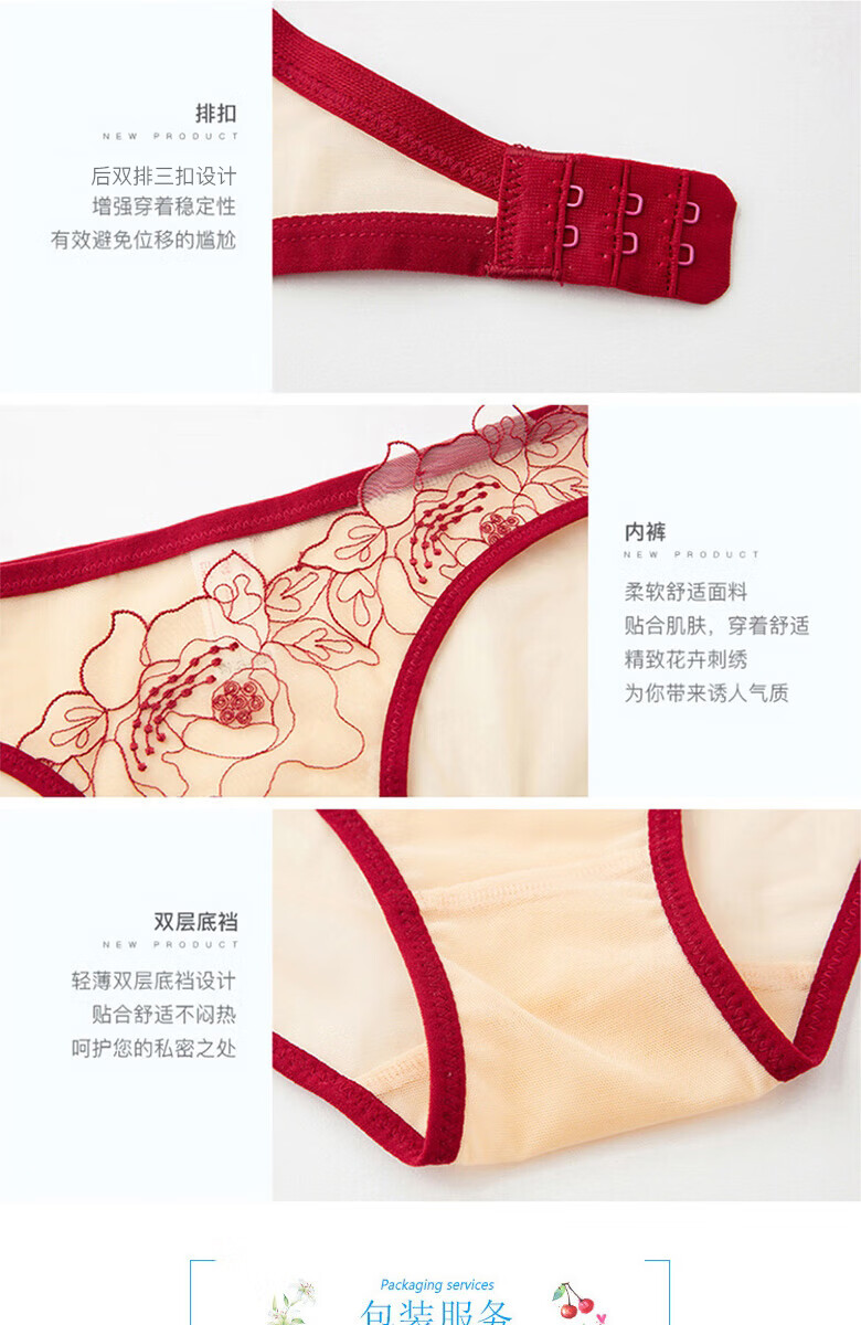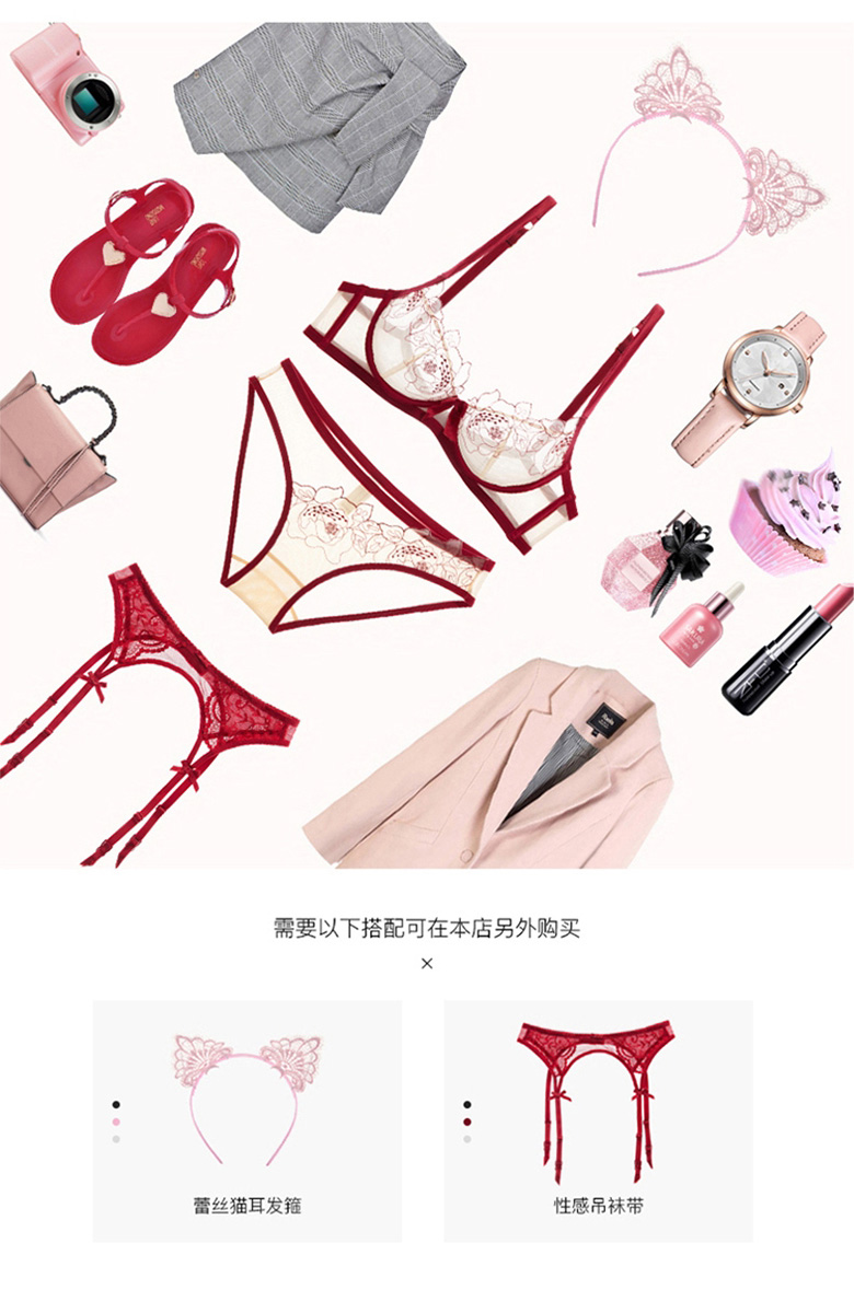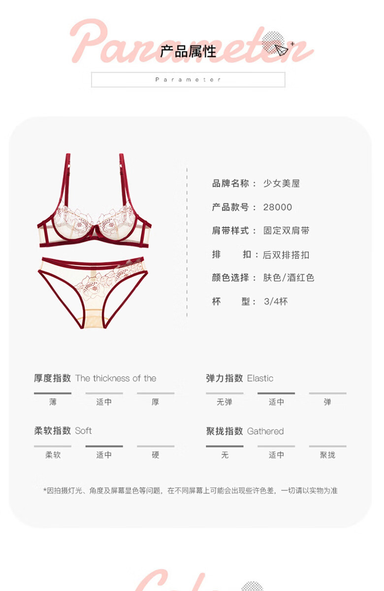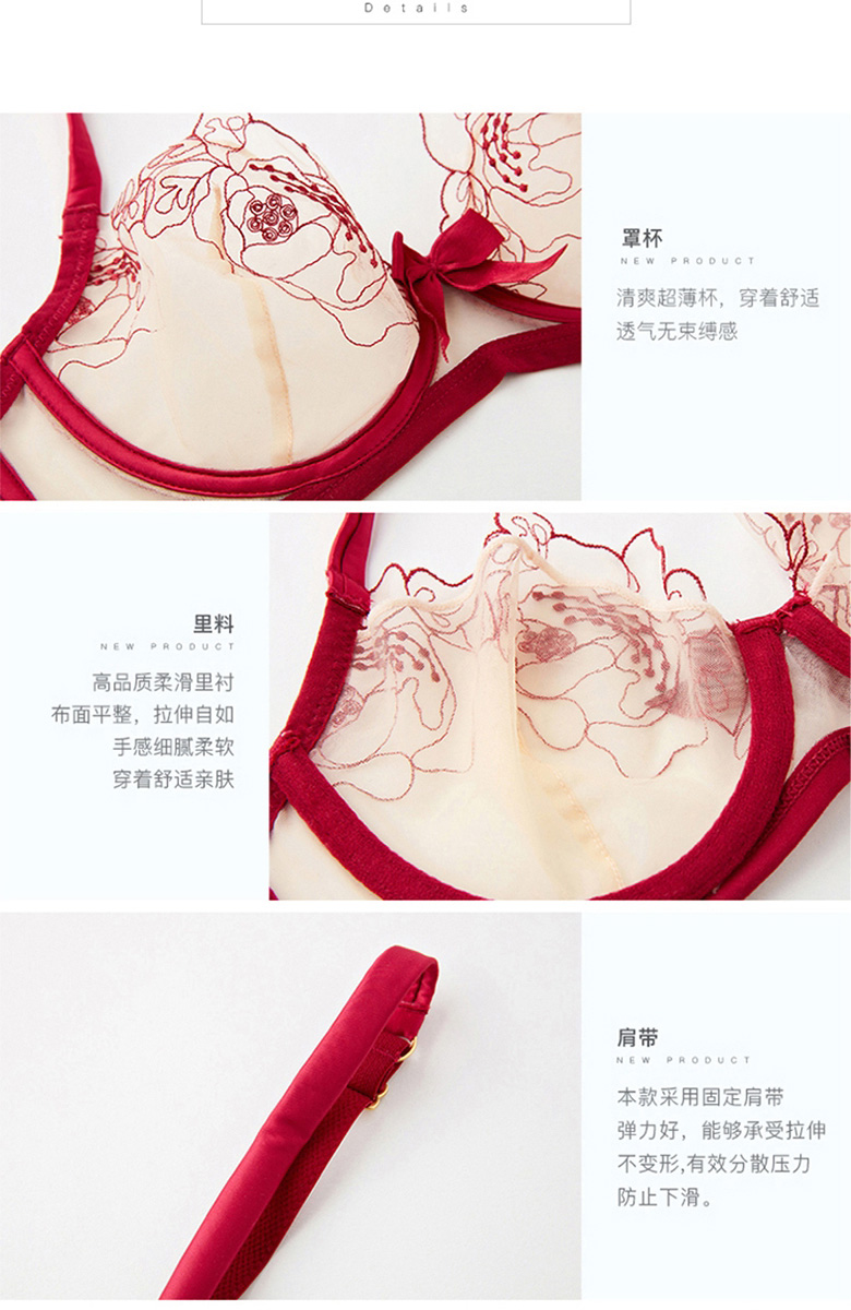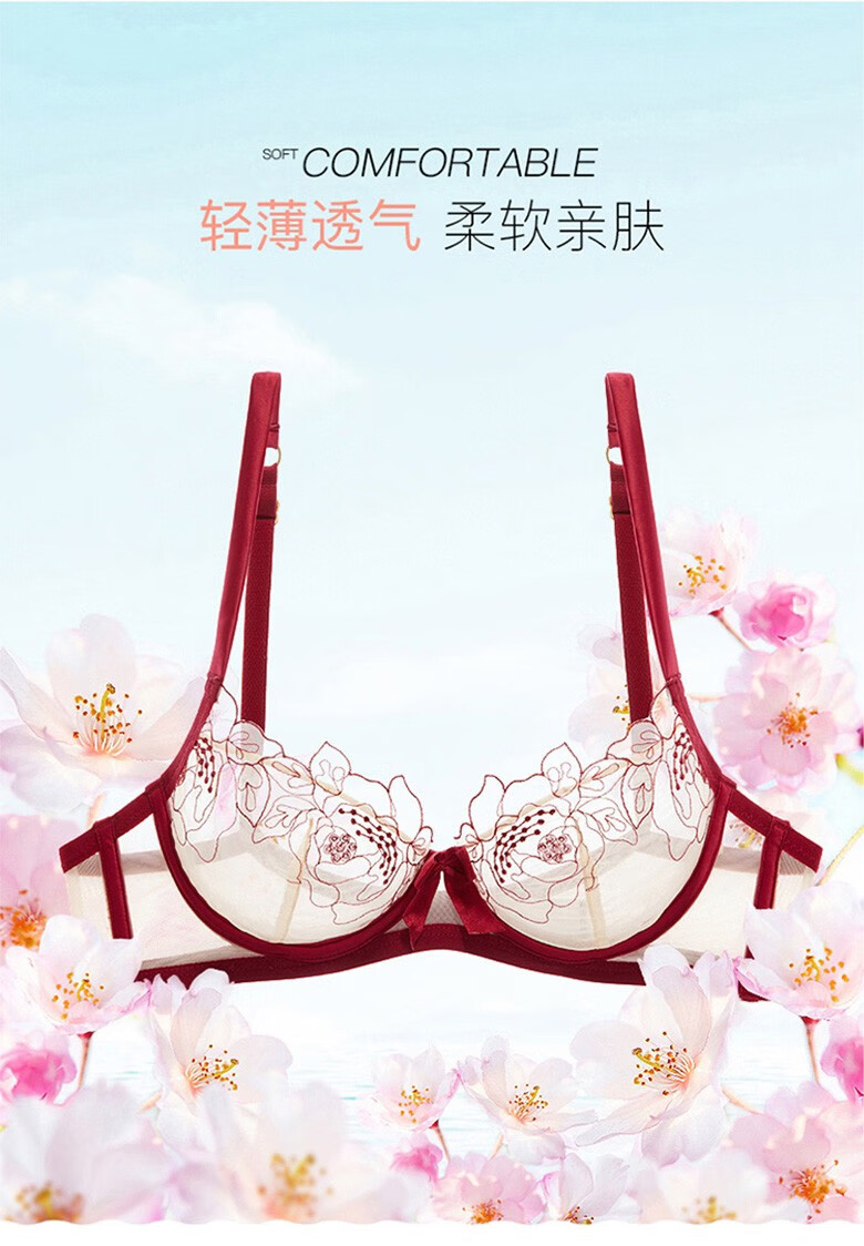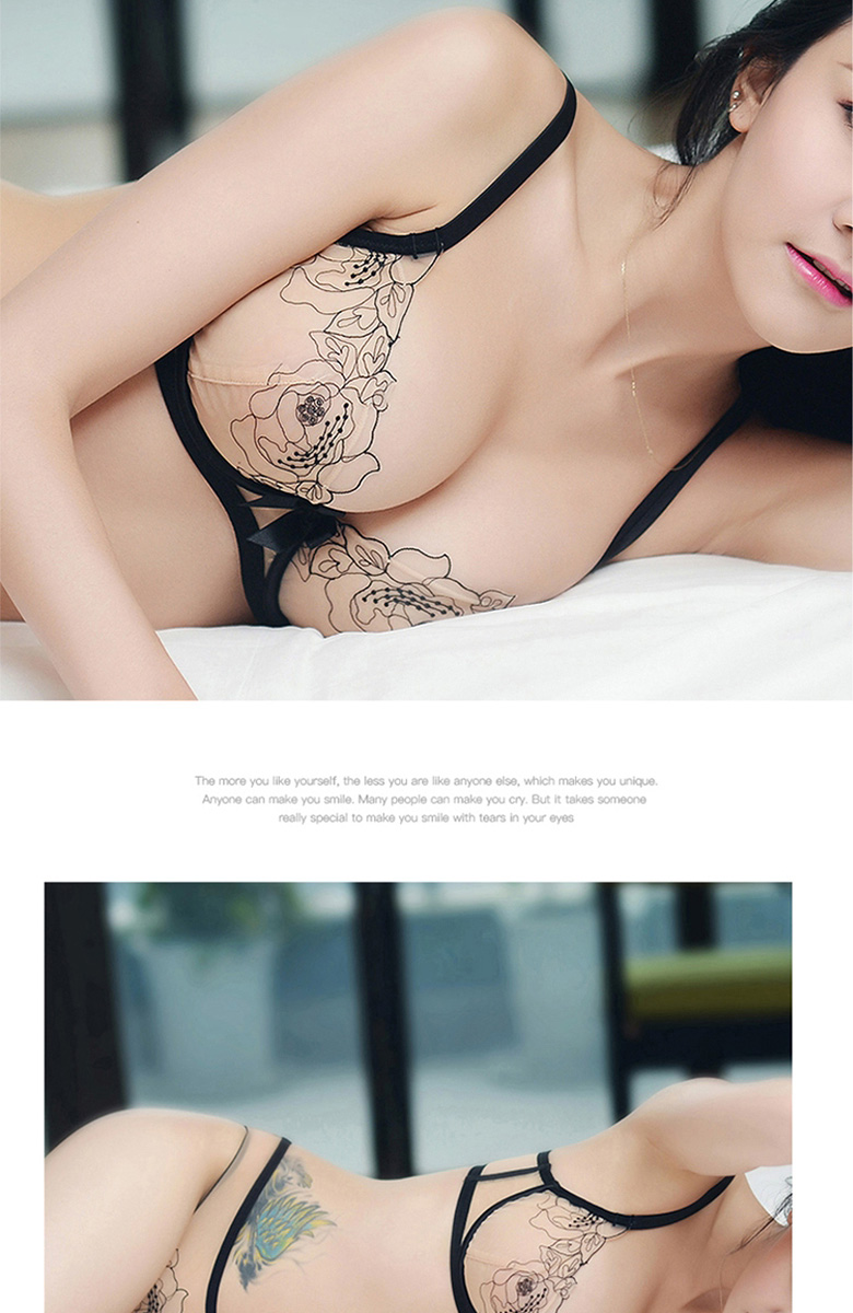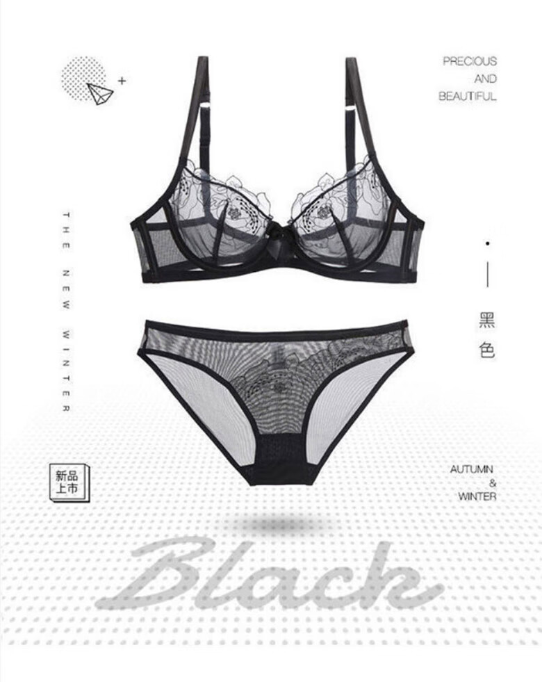 Qiaobei French sexy embroidered underwear bra set women's bra lace mesh transparent bra skin color pure desire 28000 black 32A=70A