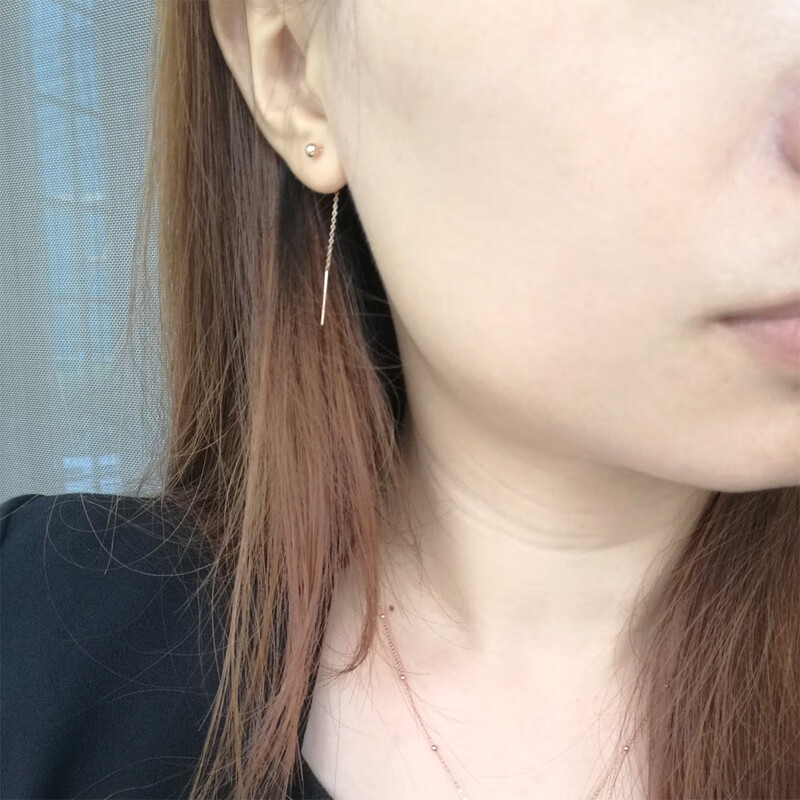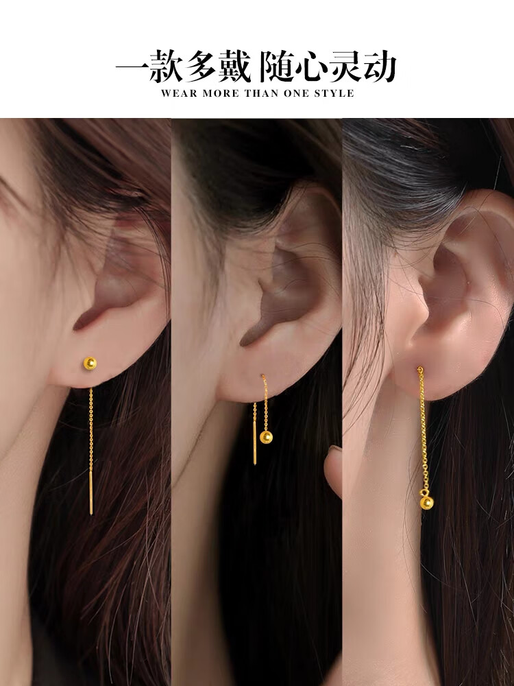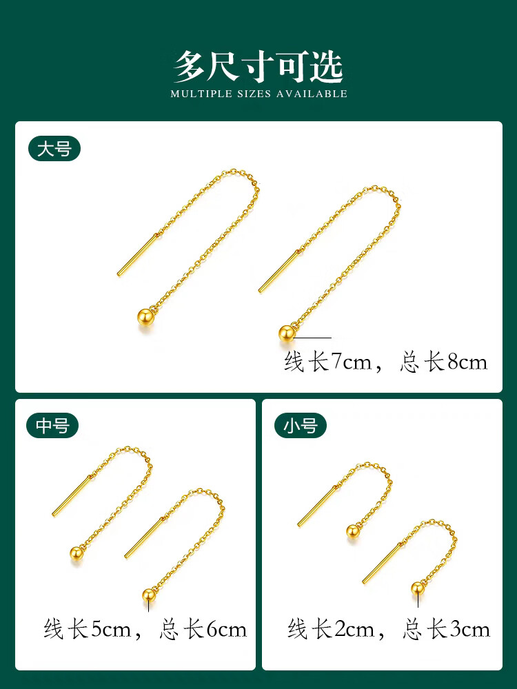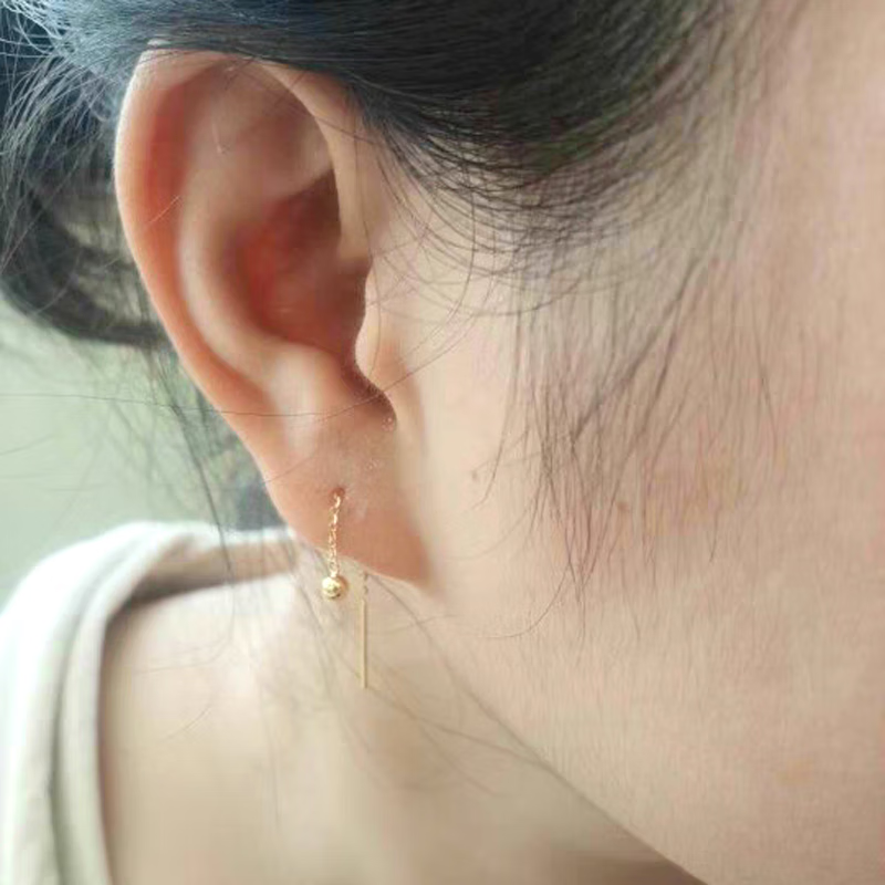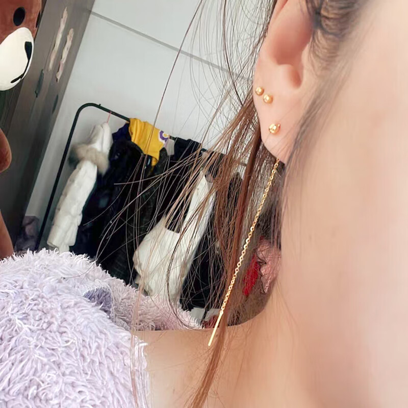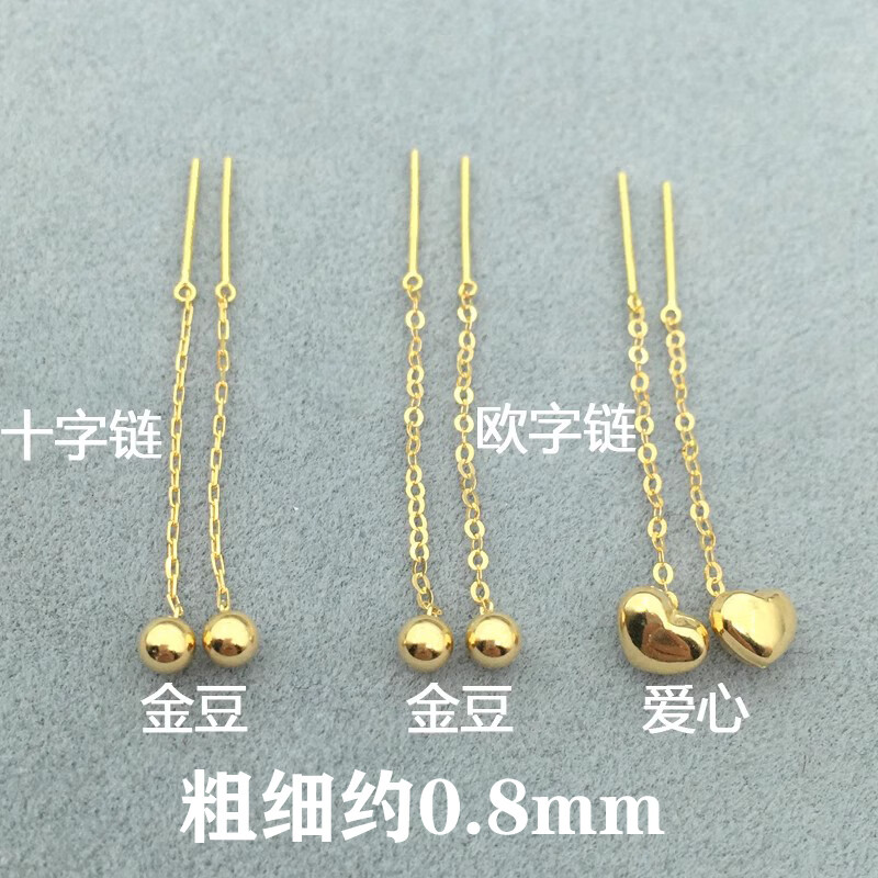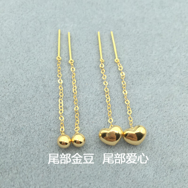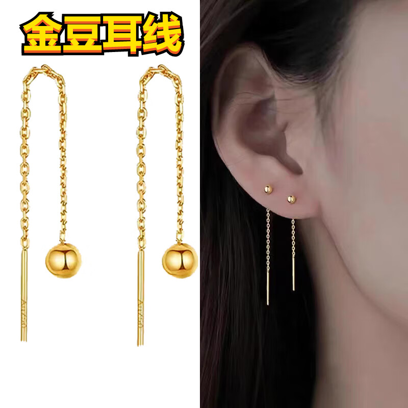 Colorful gold ear wire for women 18 long tassel gold bean bean round bead transfer earrings simple earrings European word total length 8cmK yellow + tail gold bean pair