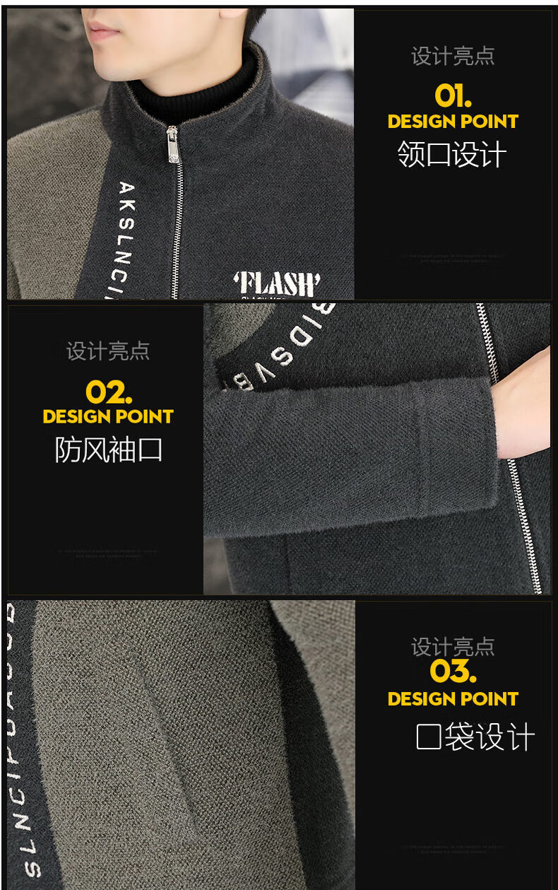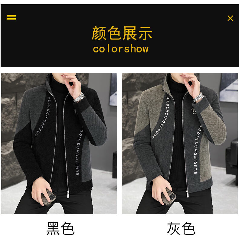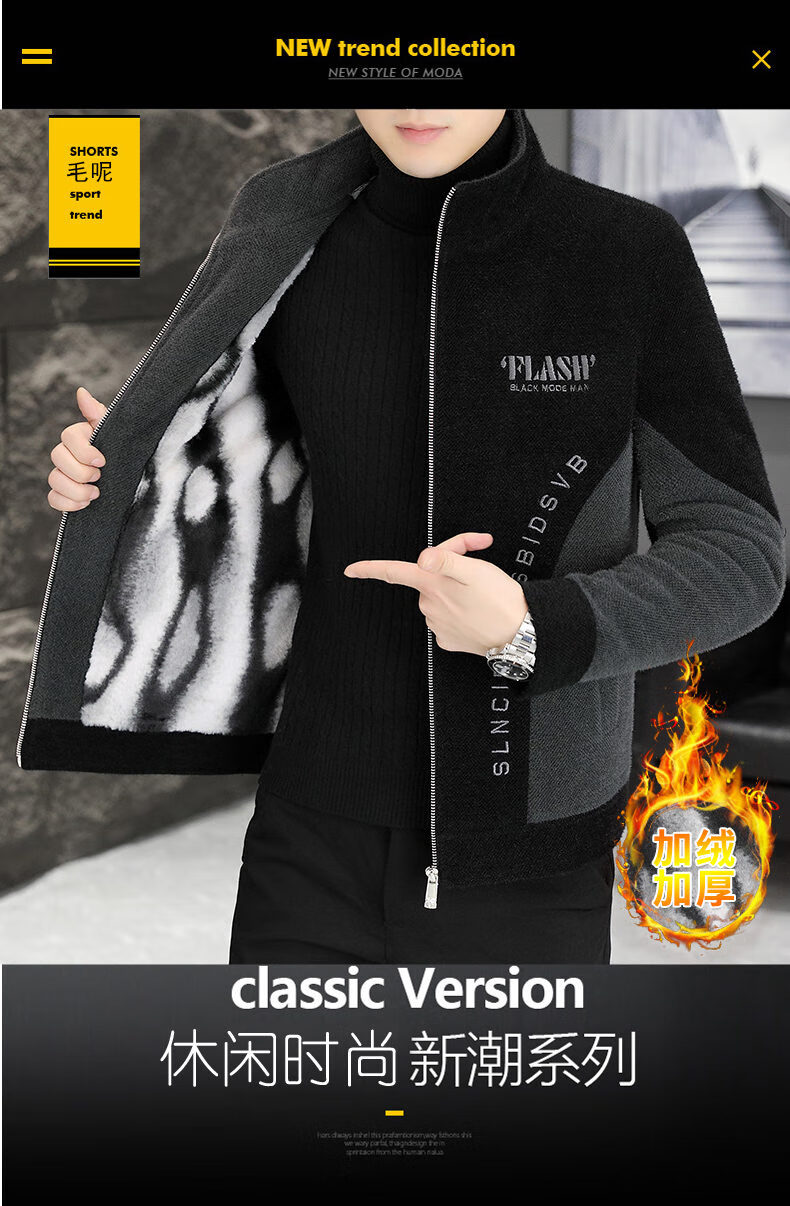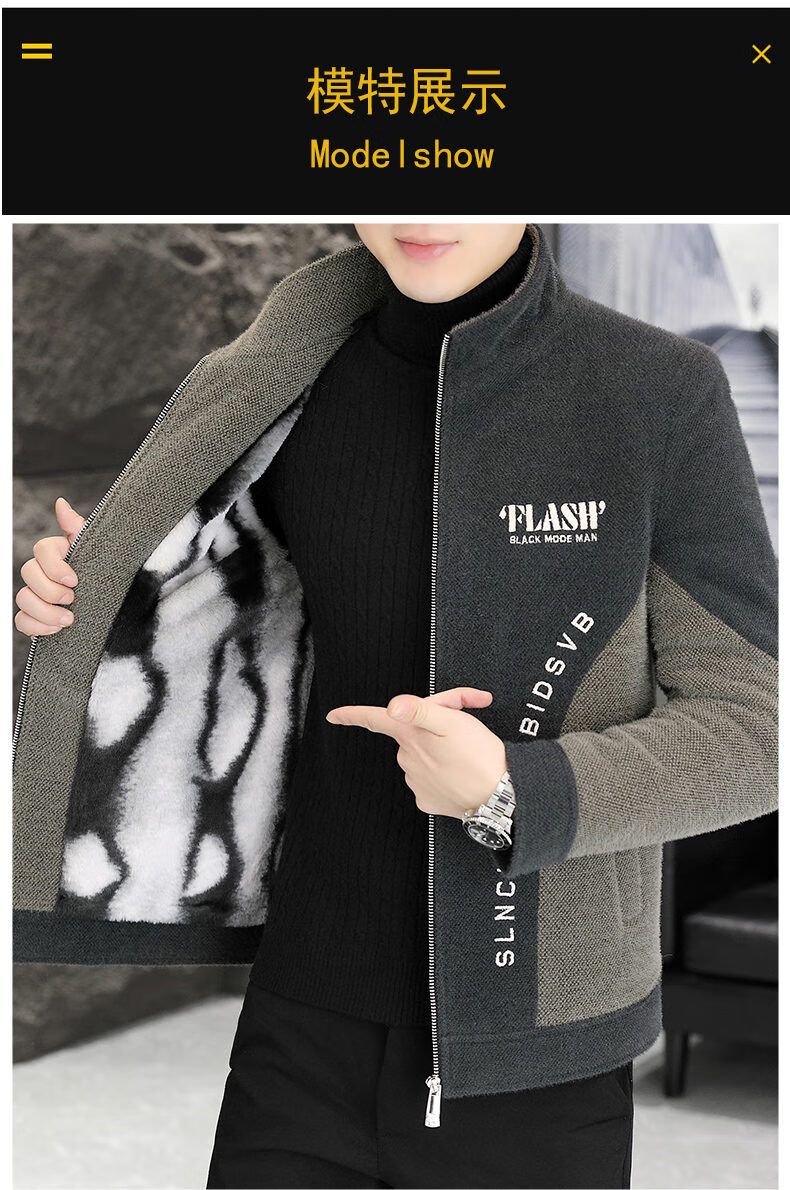 Pierre Cardin winter velvet thickened short woolen coat men Korean style slim fashion stand collar versatile woolen jacket gray thickened velvet 2XL 140-155Jin Jin equals 0.5 kg