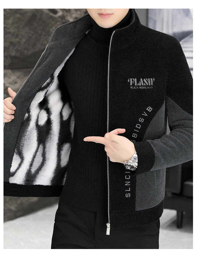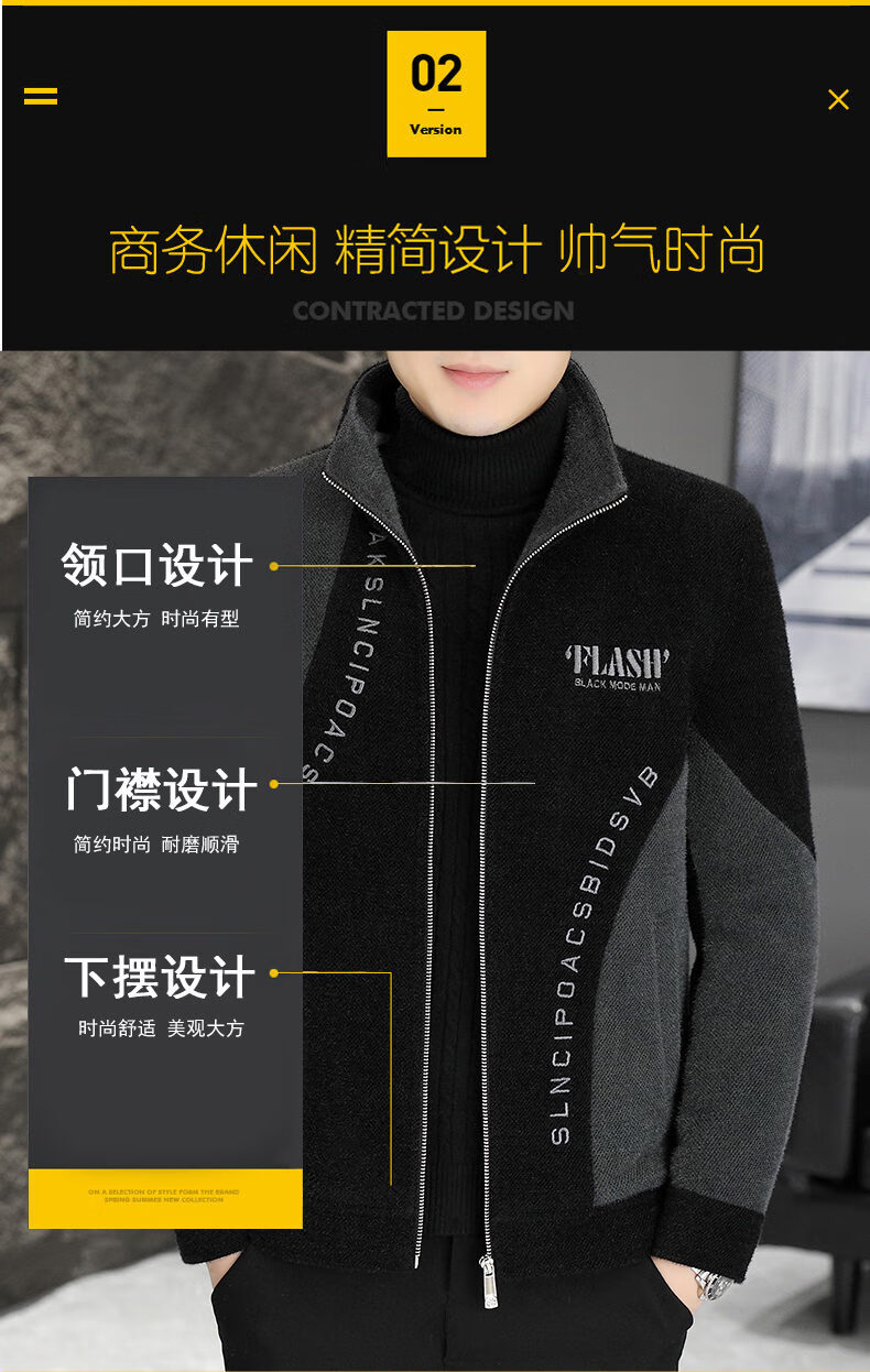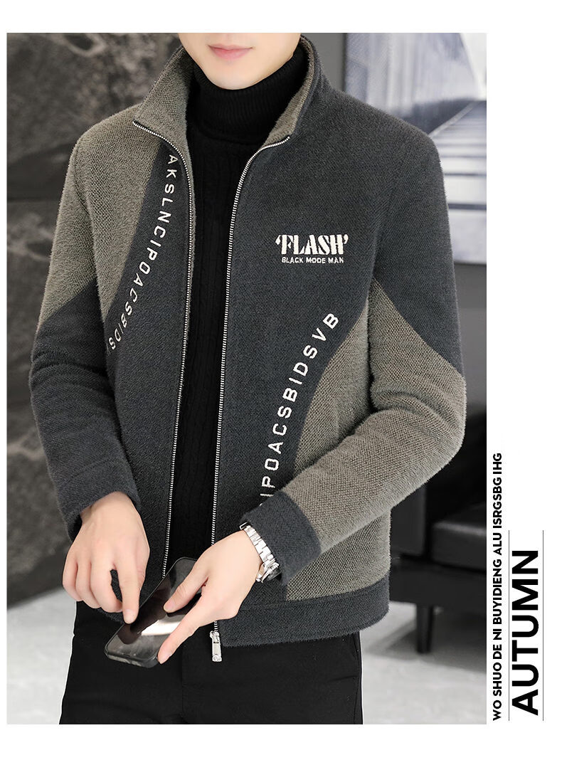 Pierre Cardin winter velvet thickened short woolen coat men Korean style slim fashion stand collar versatile woolen jacket gray thickened velvet 2XL 140-155Jin Jin equals 0.5 kg
