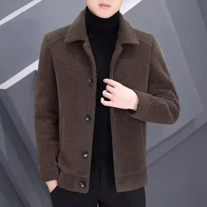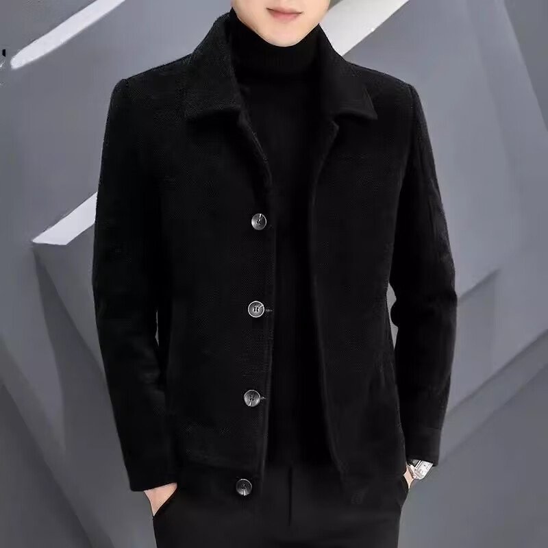 Pierre Cardin new men's woolen coat short autumn and winter woolen coat men's thickened jacket top casual windbreaker khaki 2XL 120-140Jin Jin equals 0.5 kg