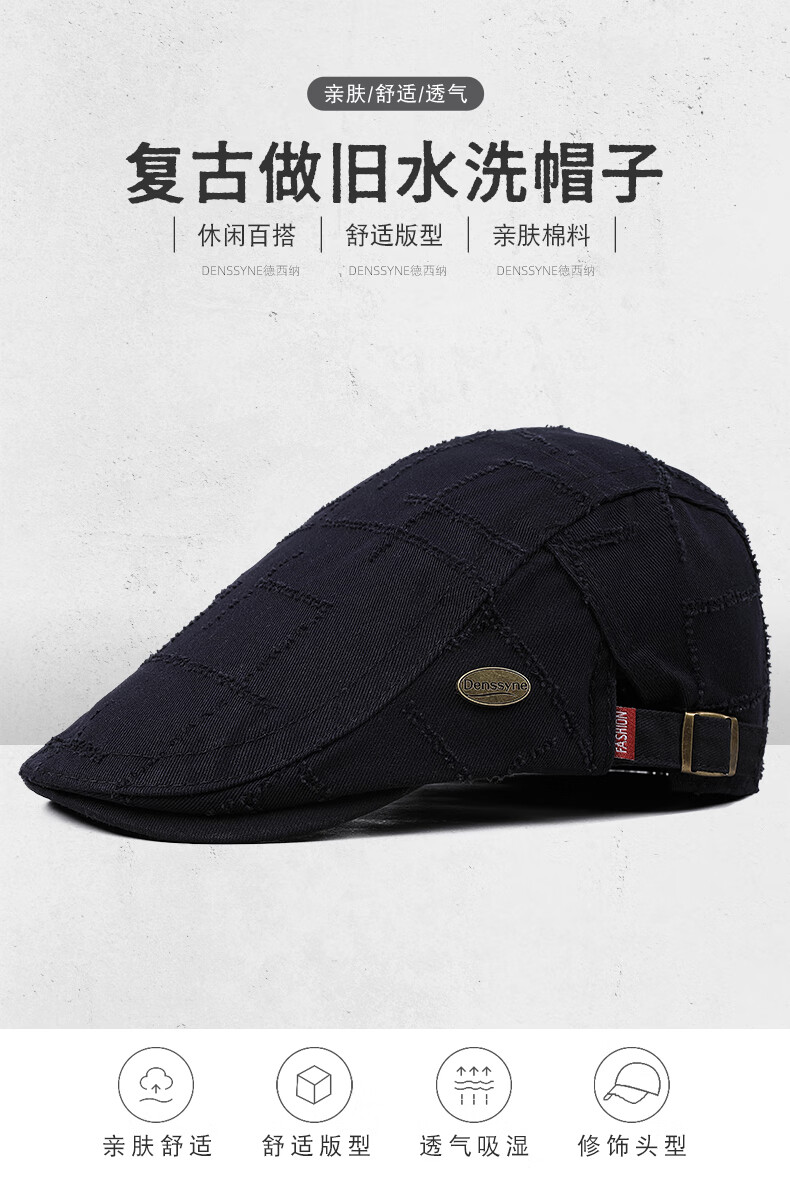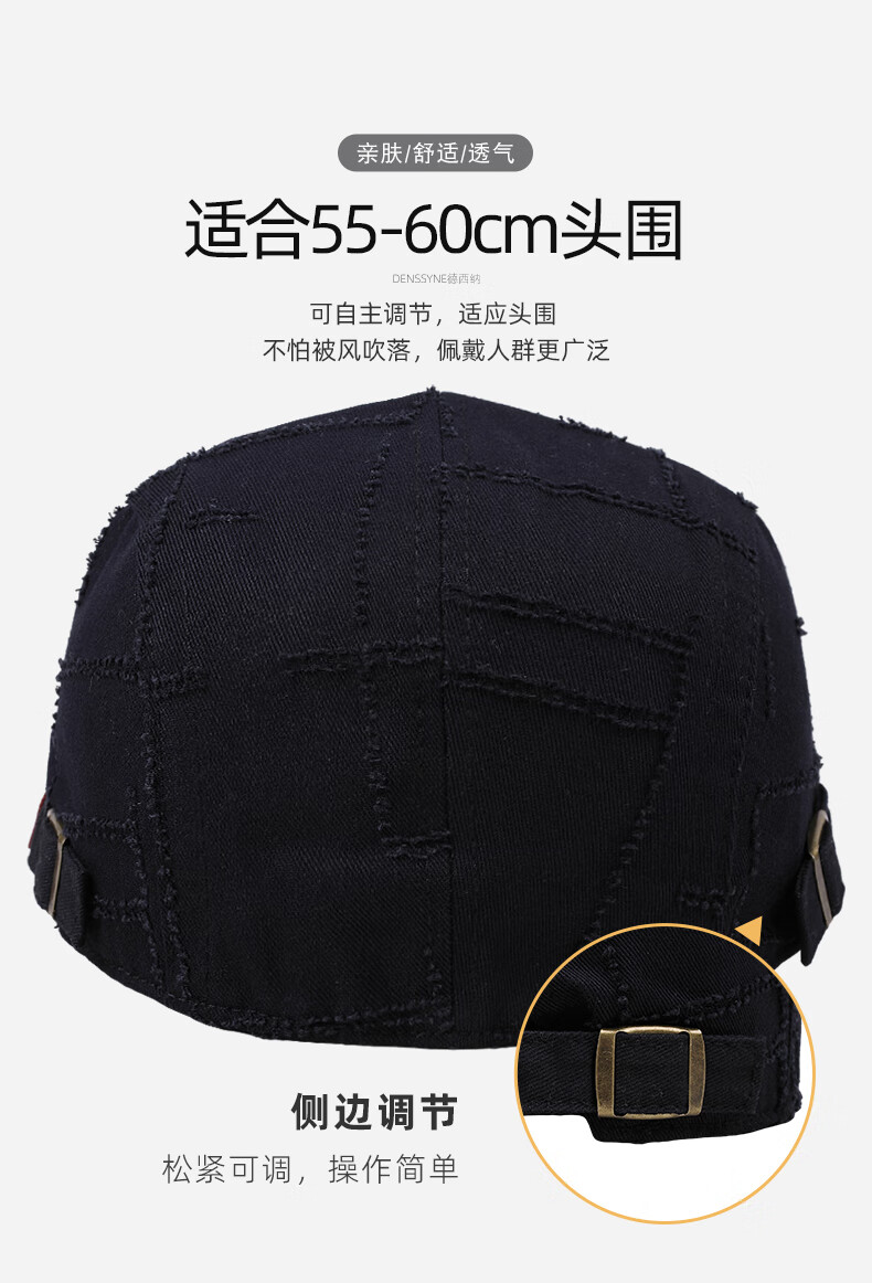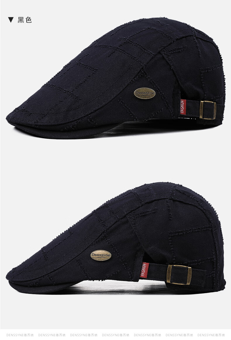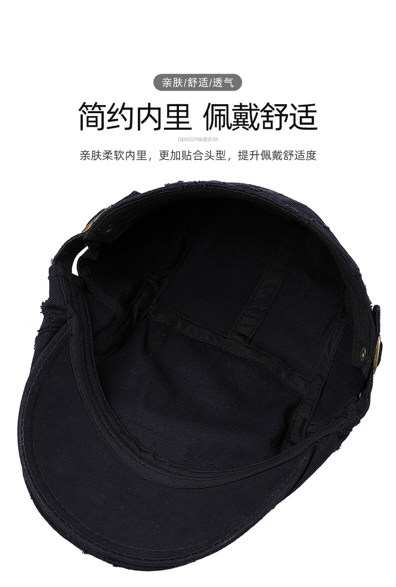 Desina Beret Men's Retro Old-Time Forward Hat All-match Outdoor Travel Fashion Holed Hat Peaked Cap Black One Size Adjustable (55-60cm)