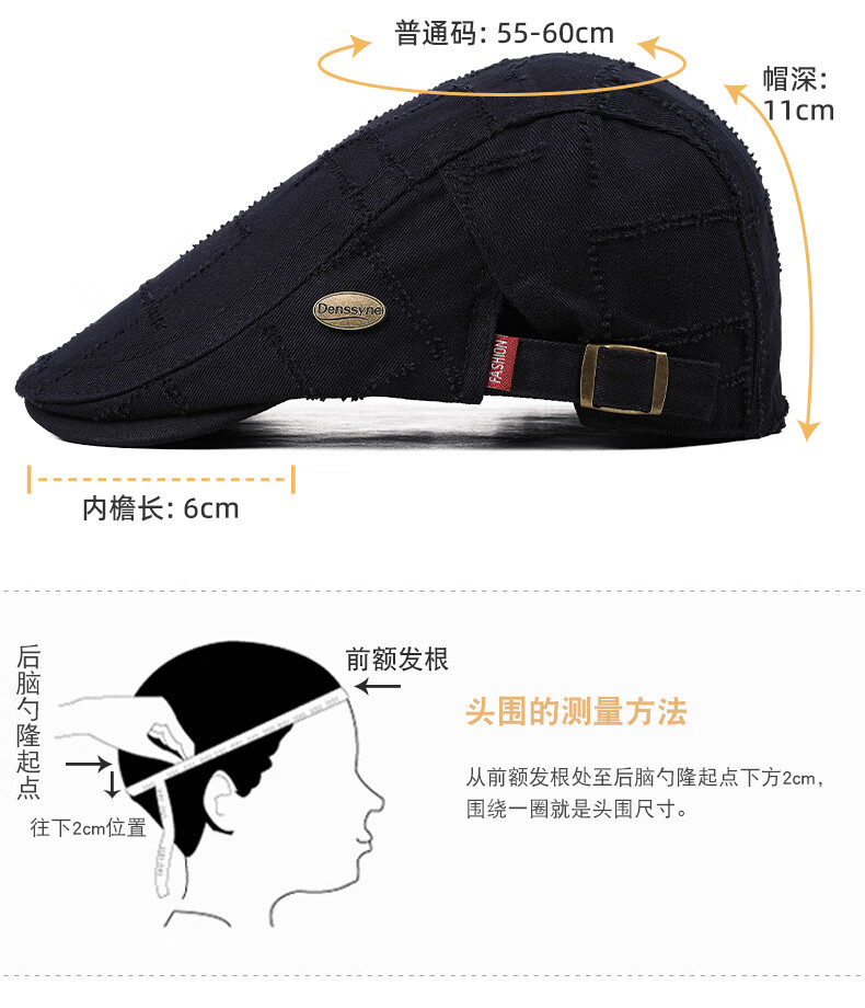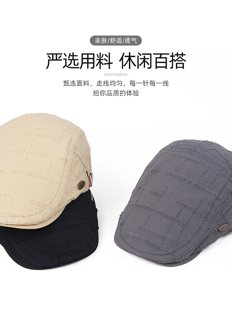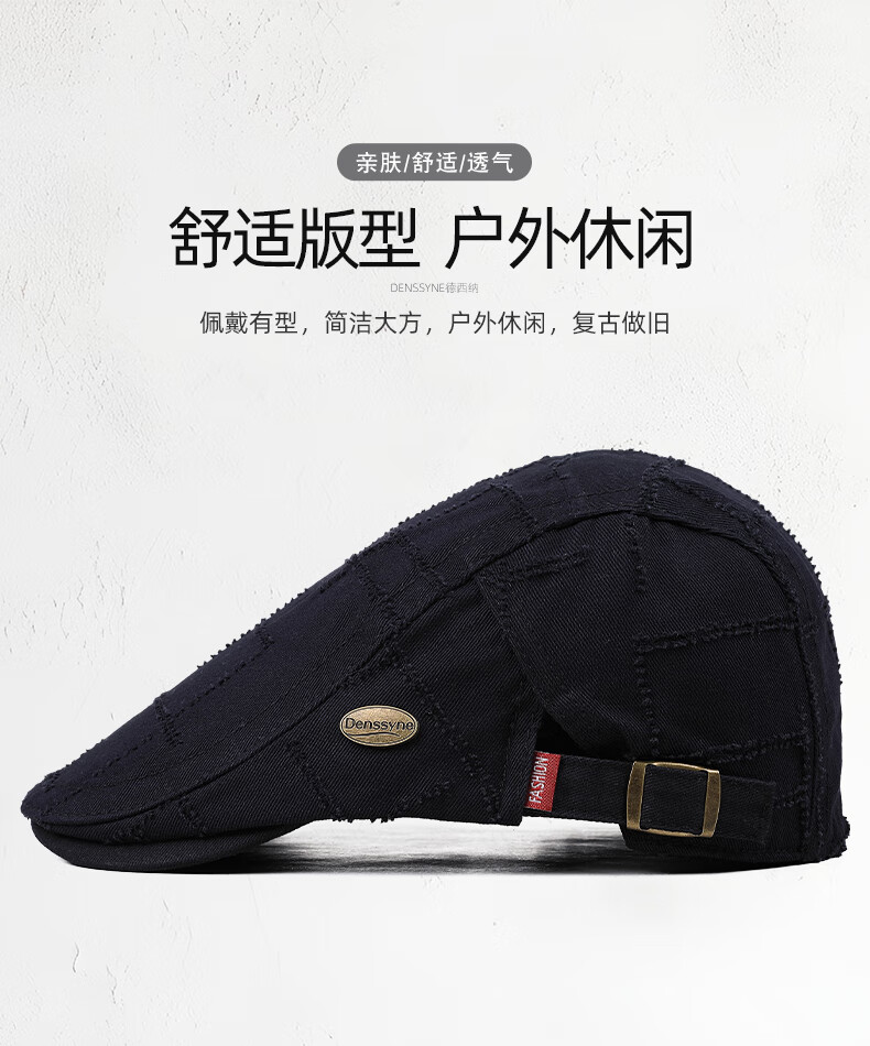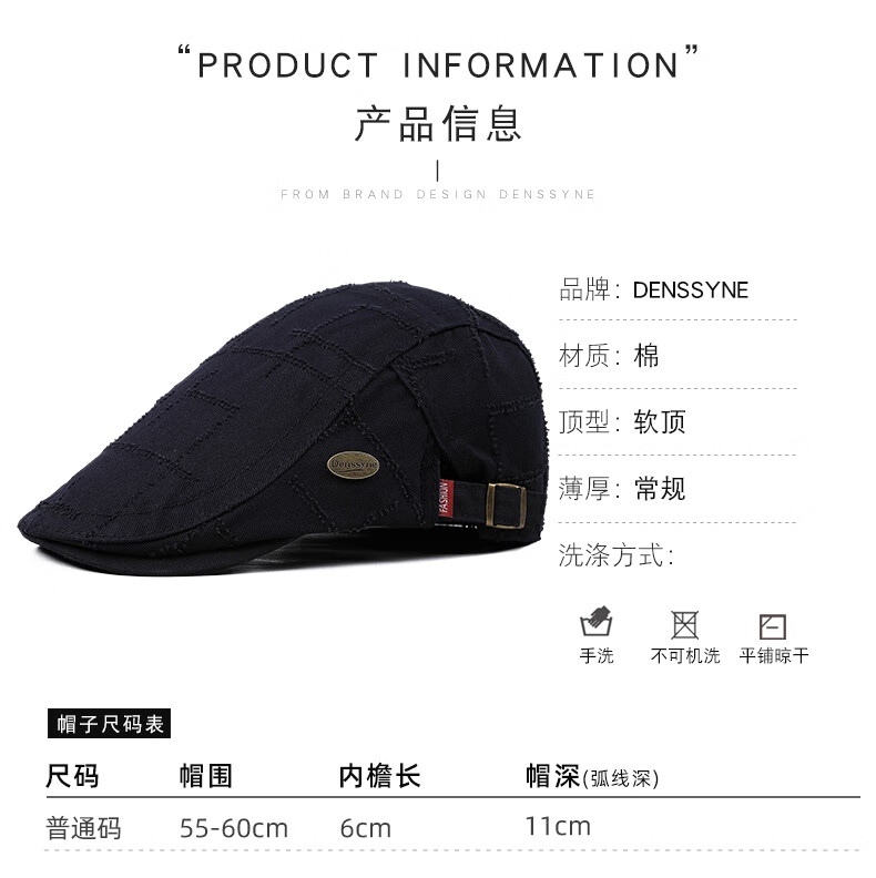 Desina Beret Men's Retro Old-Time Forward Hat All-match Outdoor Travel Fashion Holed Hat Peaked Cap Black One Size Adjustable (55-60cm)