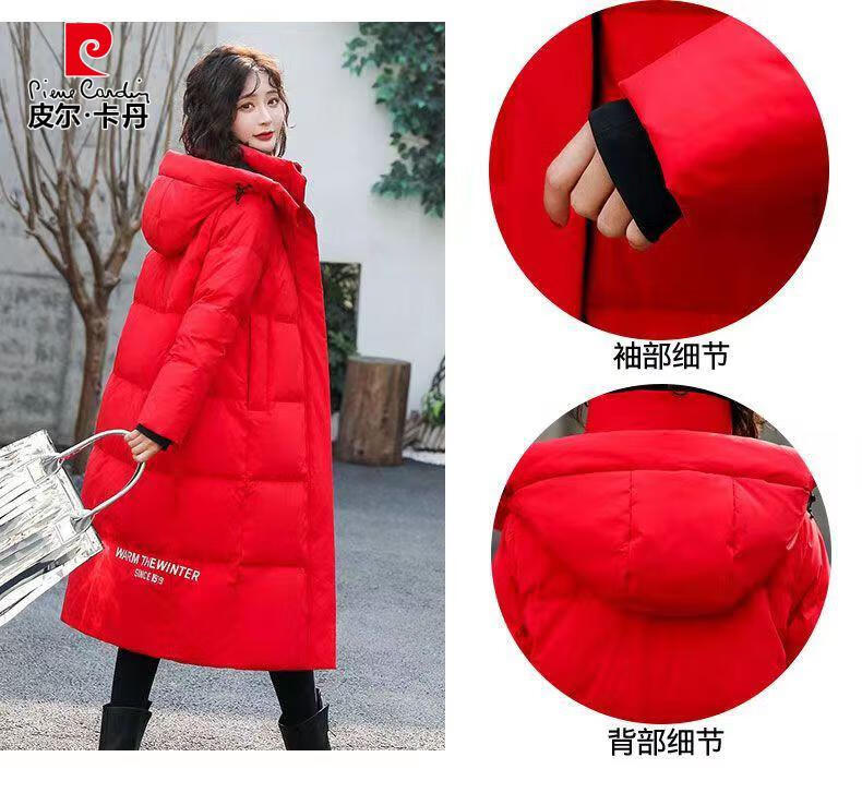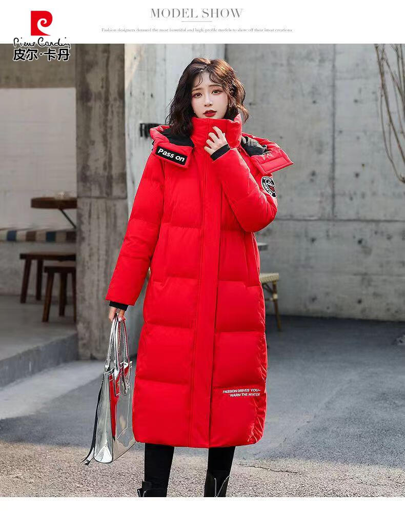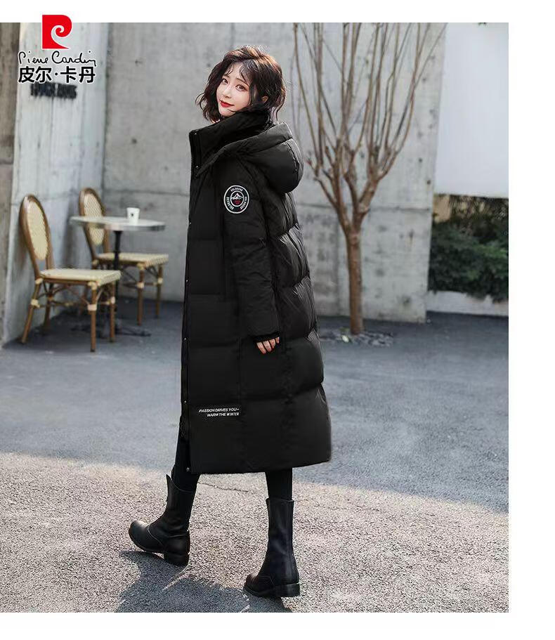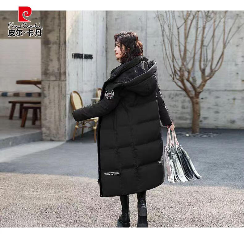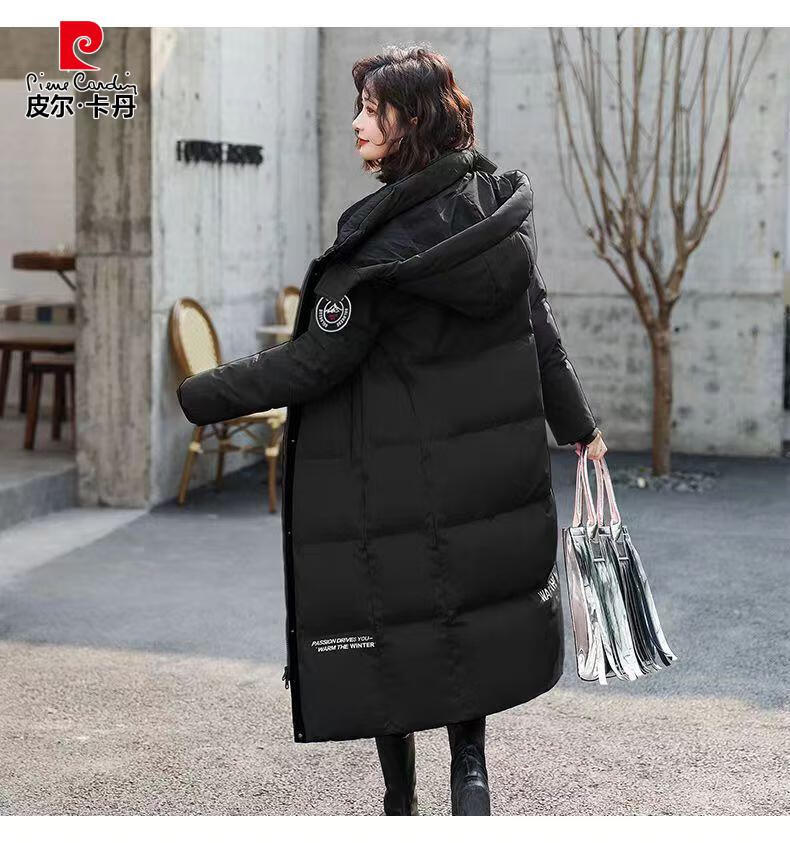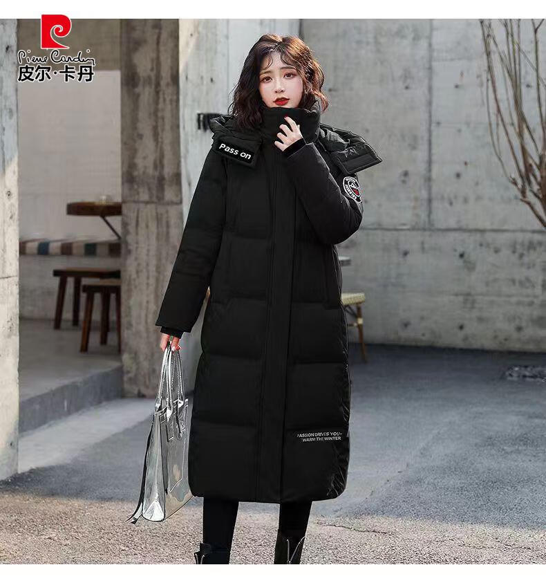 Pierre Cardin down jacket mid-length women's 2025 winter new thickened warm extra long fashion loose cotton jacket black (original quality) XL recommended 125-140Jin Jin equals 0.5 kg