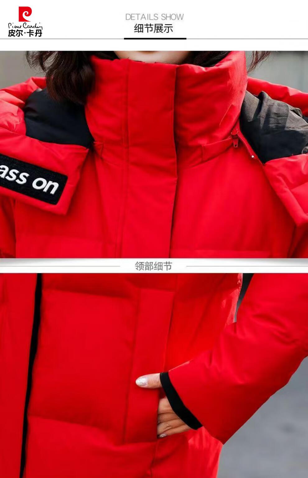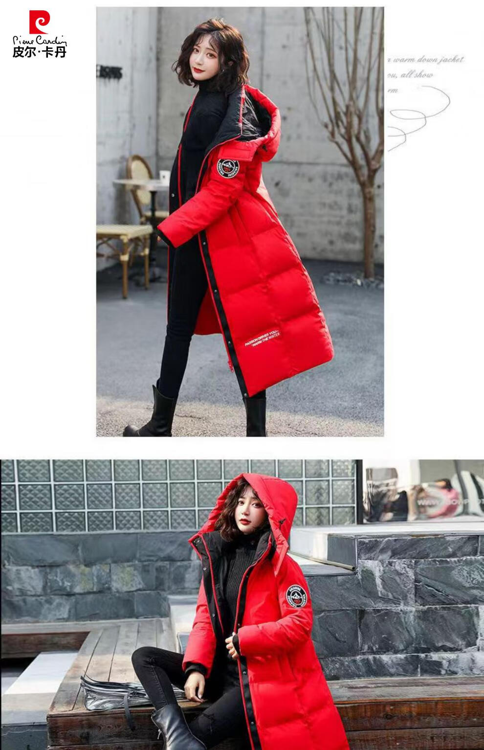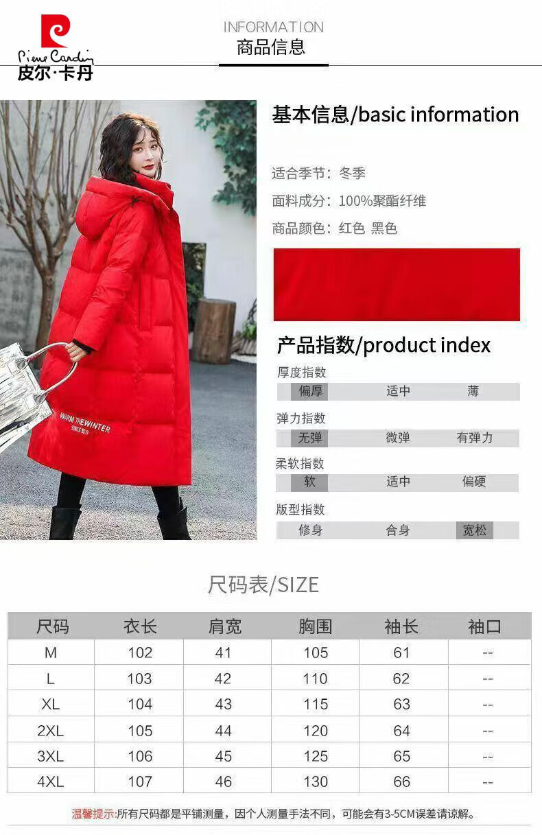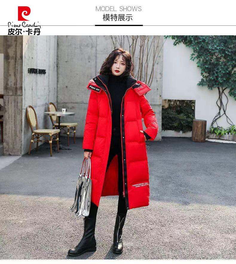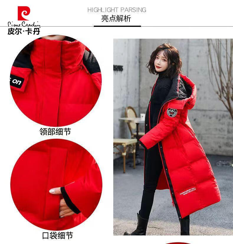 Pierre Cardin down jacket mid-length women's 2025 winter new thickened warm extra long fashion loose cotton jacket black (original quality) XL recommended 125-140Jin Jin equals 0.5 kg