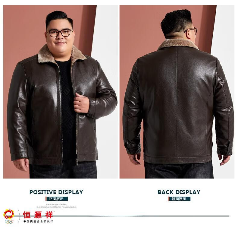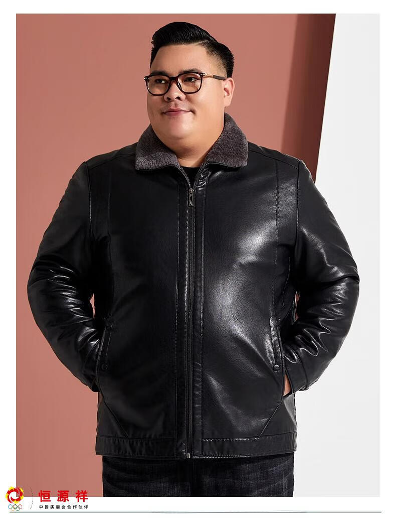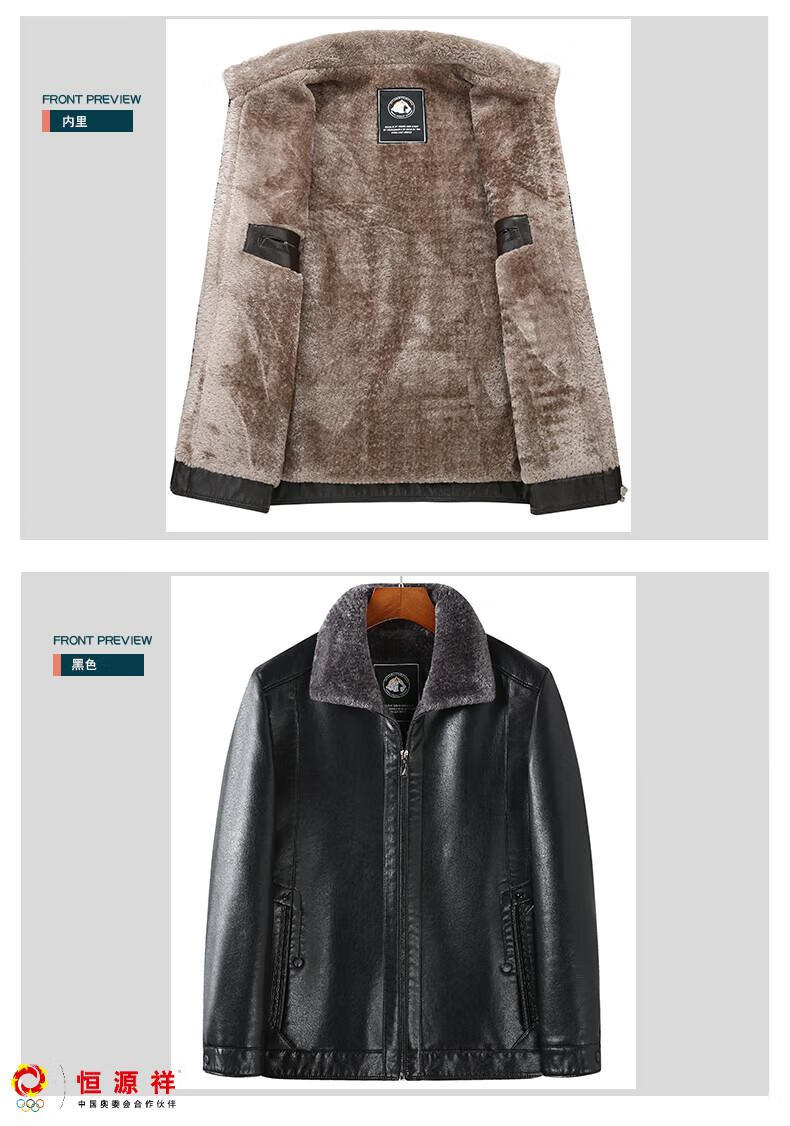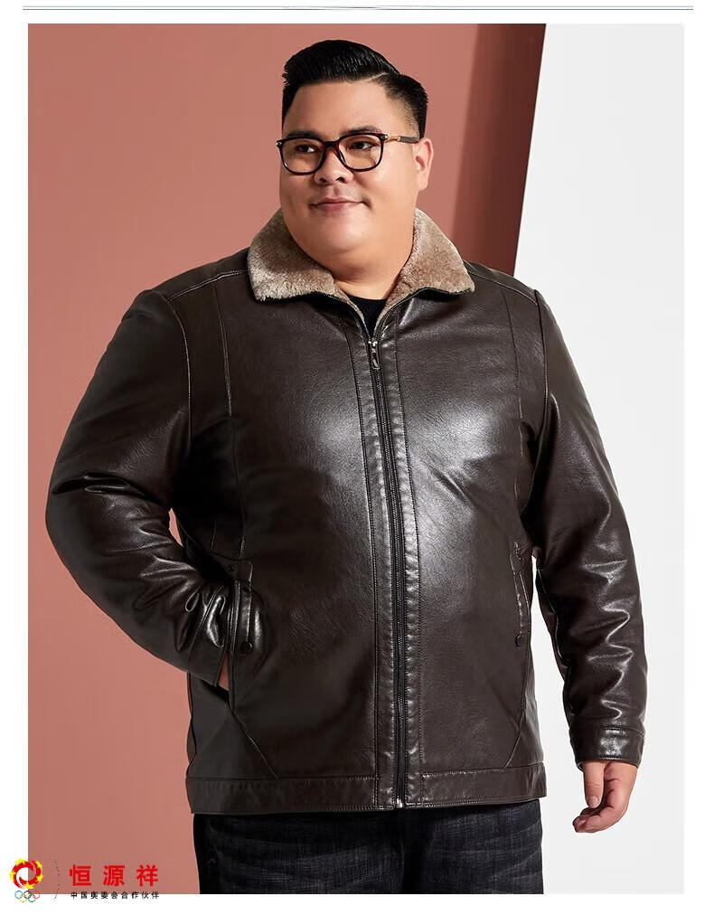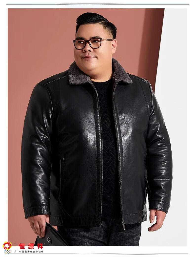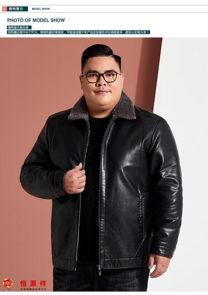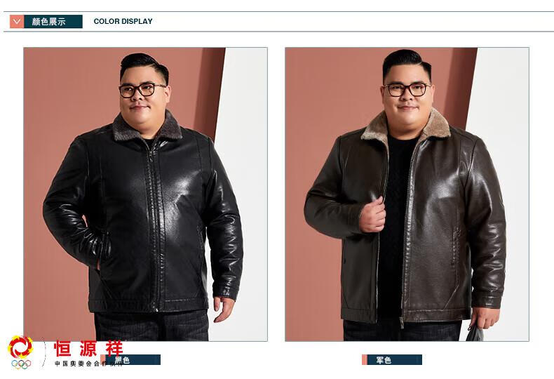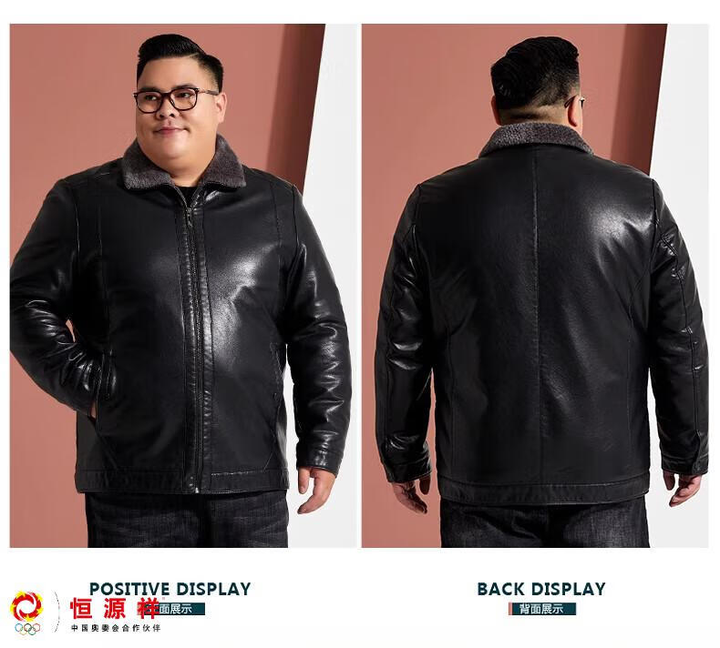 Hengyuanxiang plus fat plus size middle-aged men's velvet thickened leather jacket large size fat man leather jacket fat dad winter coat black XL