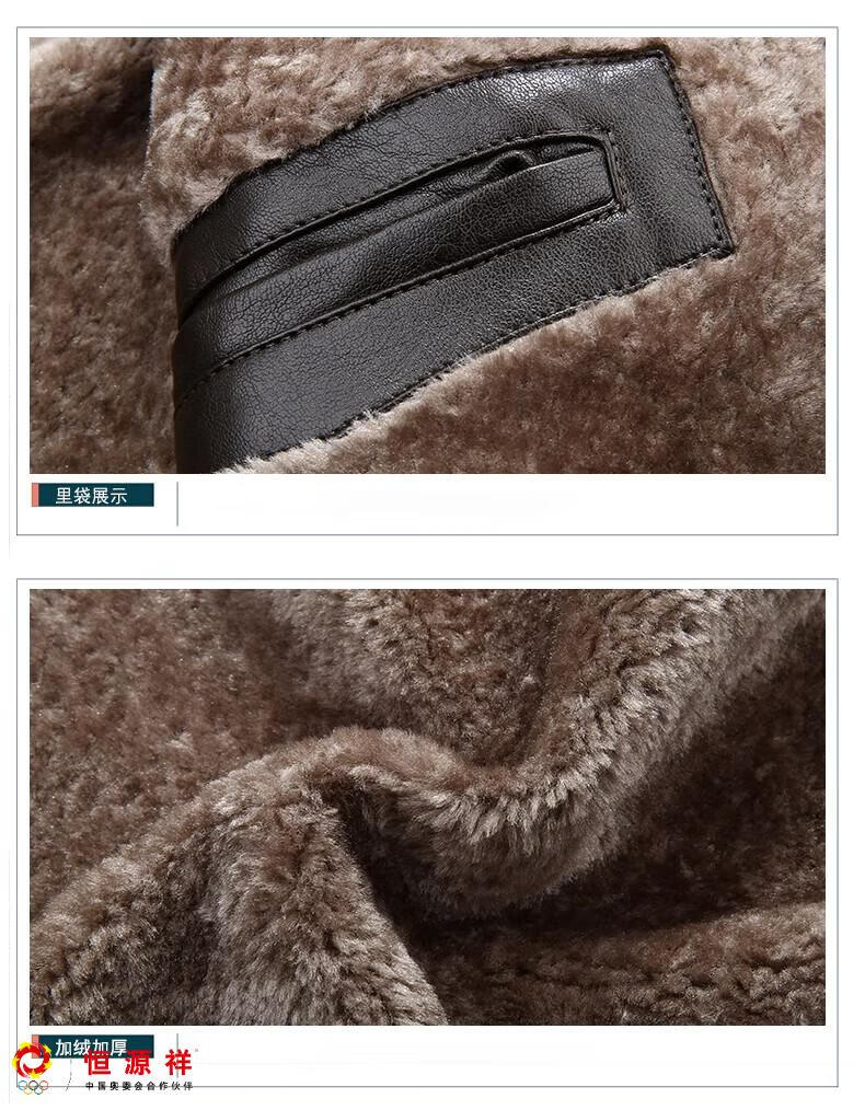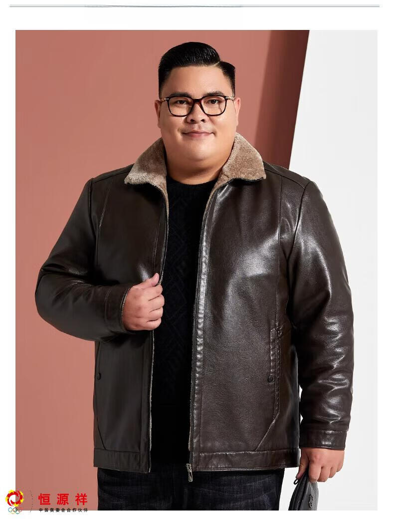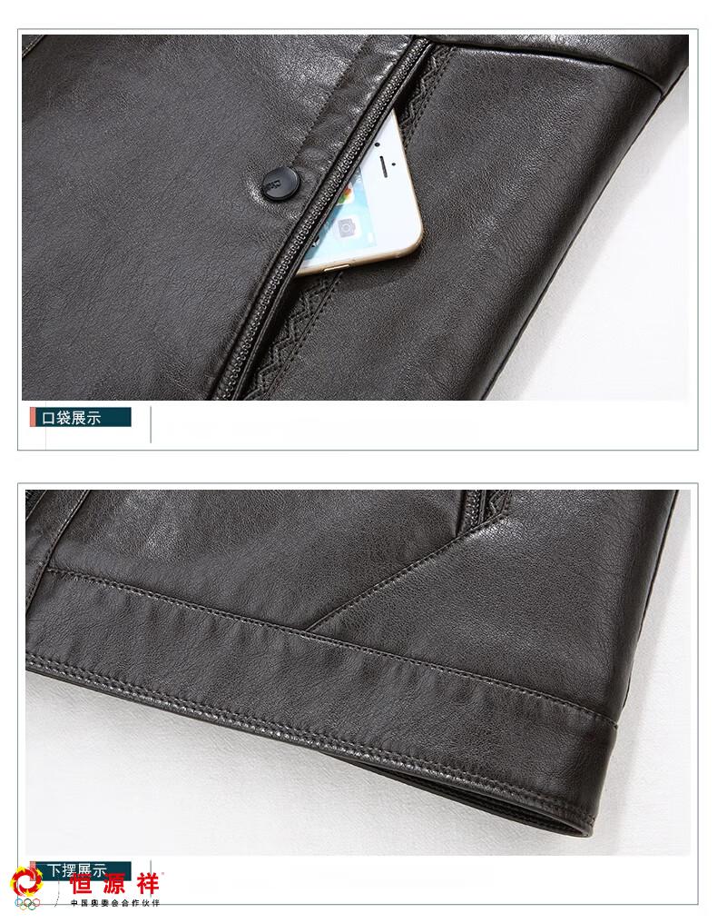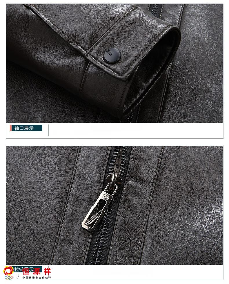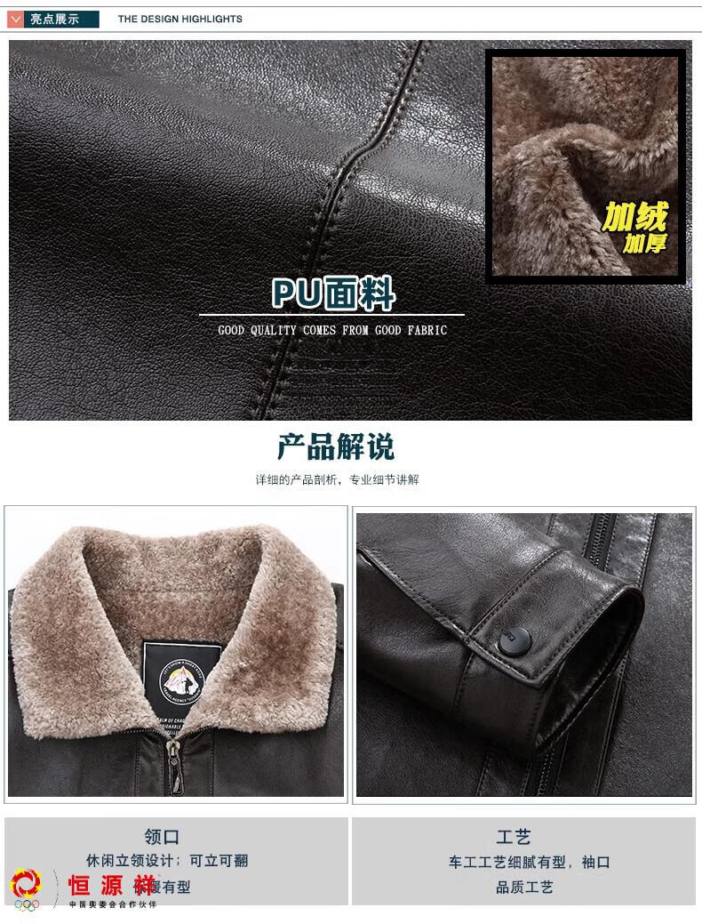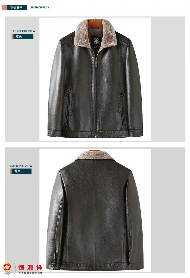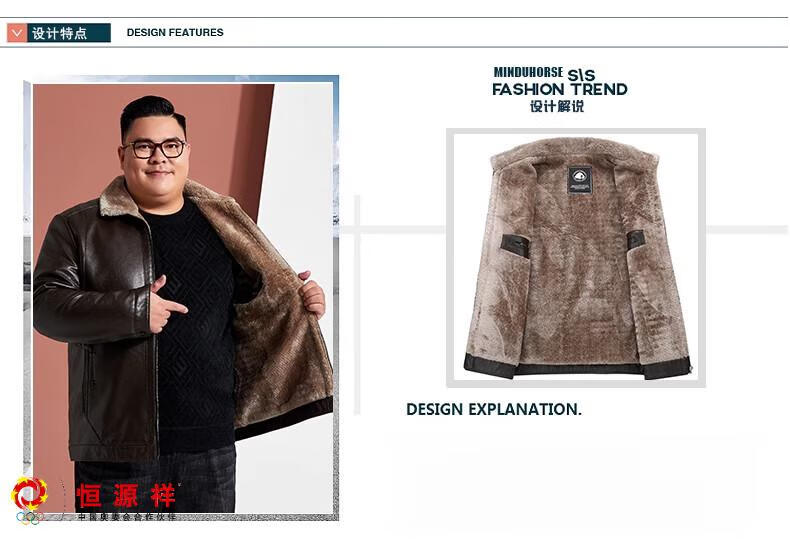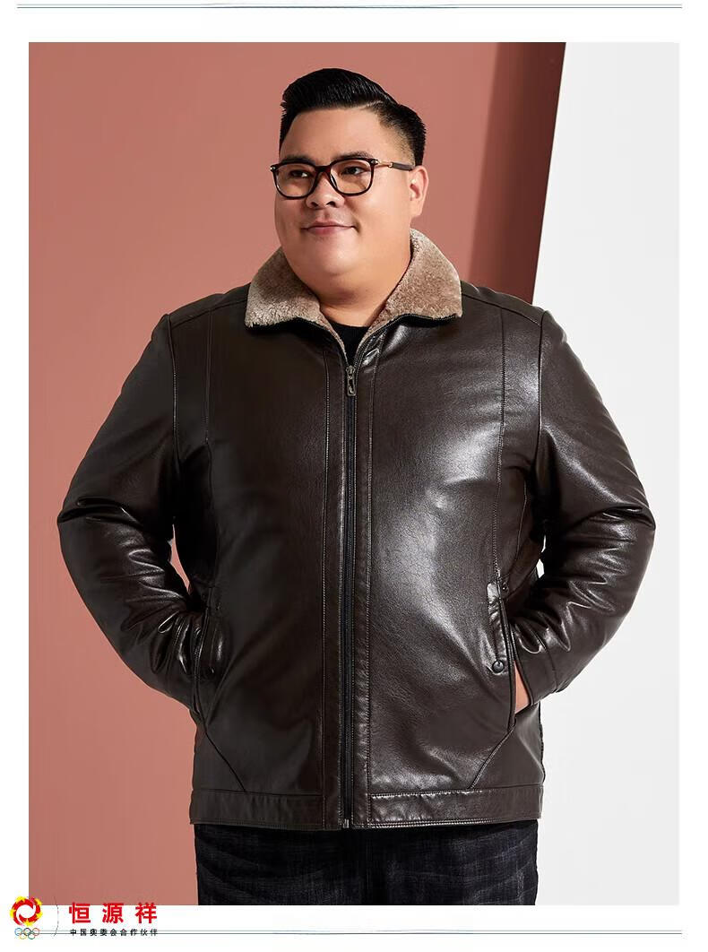 Hengyuanxiang plus fat plus size middle-aged men's velvet thickened leather jacket large size fat man leather jacket fat dad winter coat black XL
