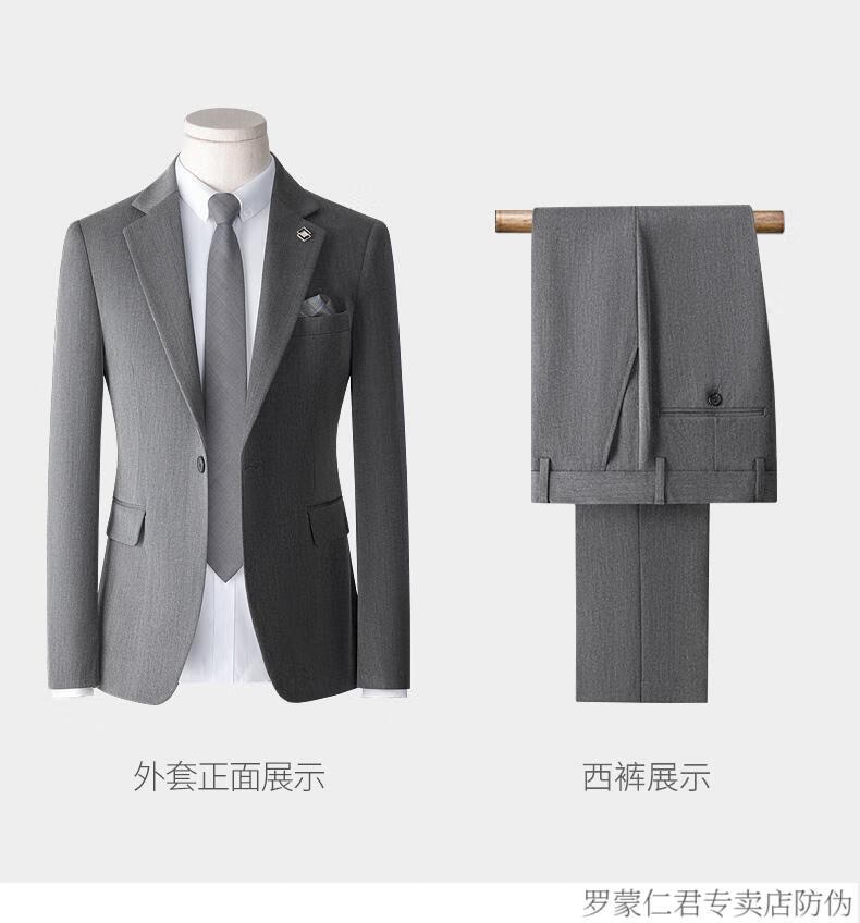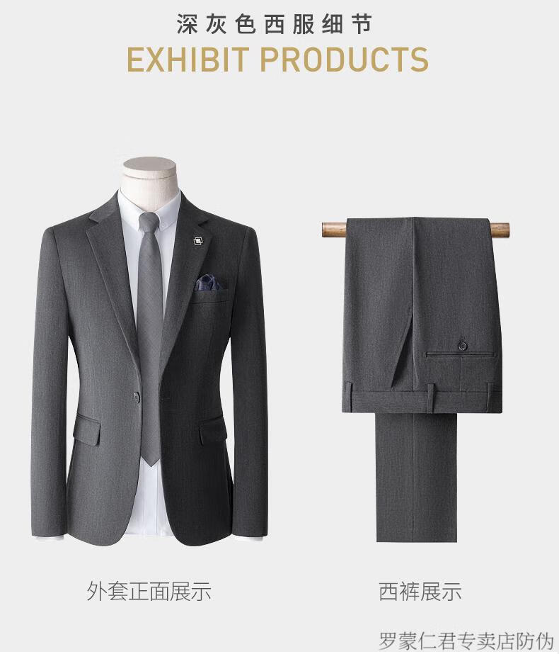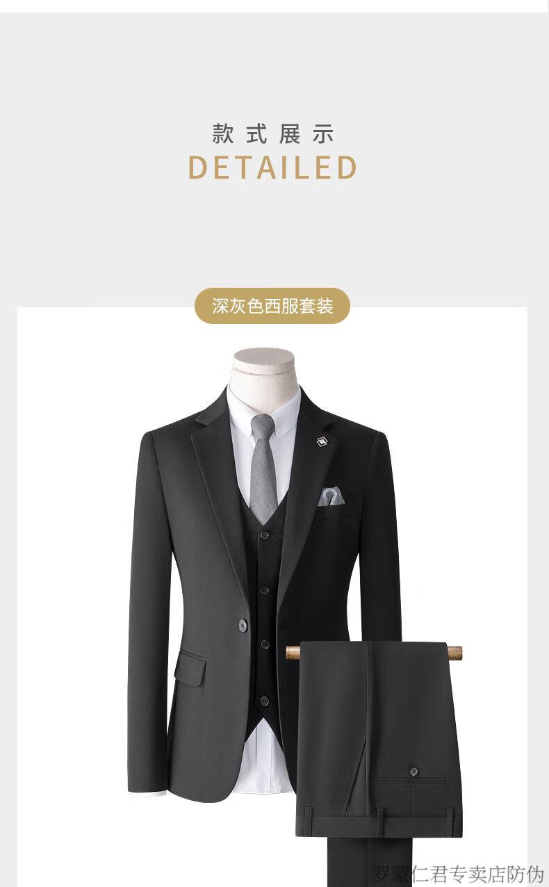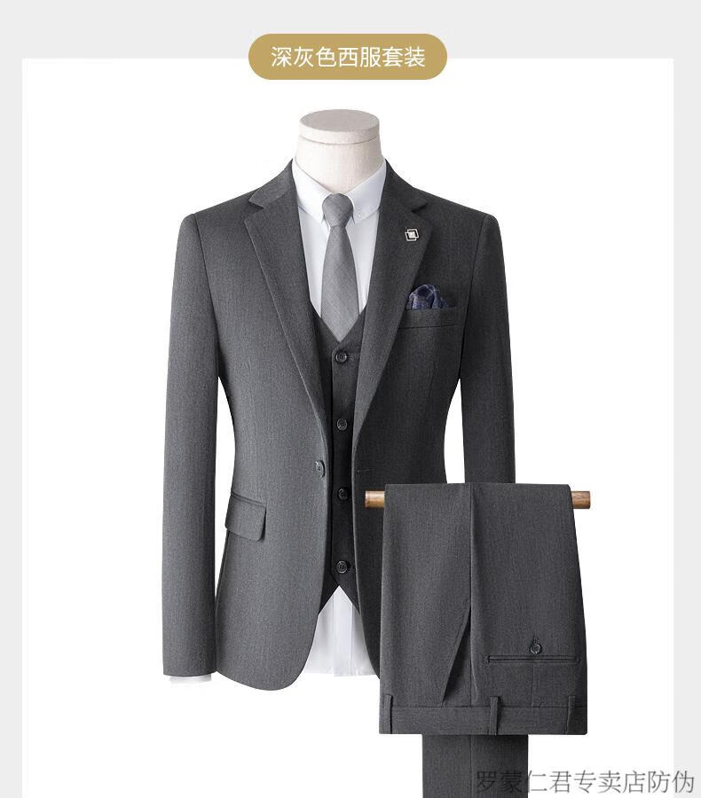 ROMON high-end suit men's three-piece Korean style slim business casual suit groom's wedding dress black top + pants shirt tie M