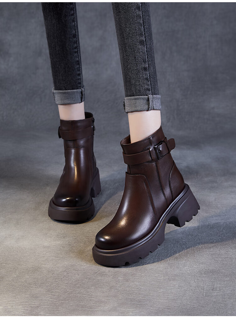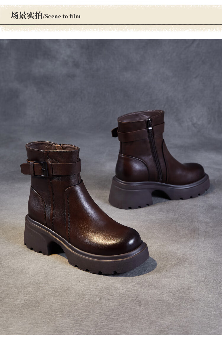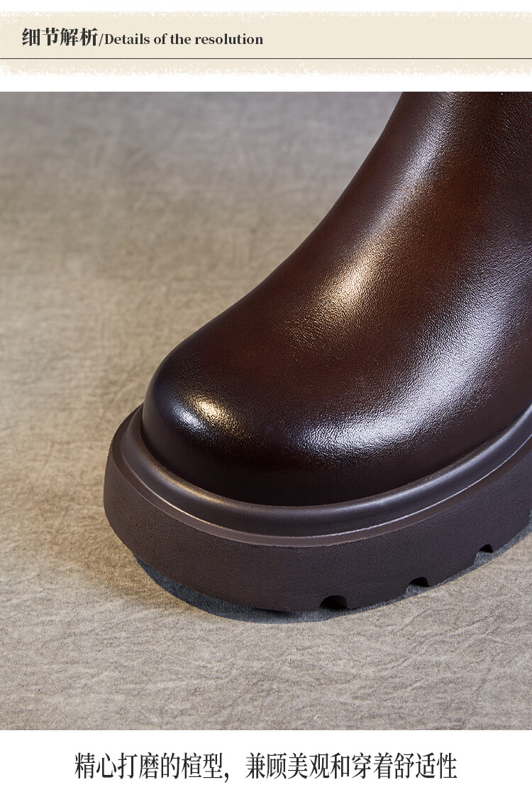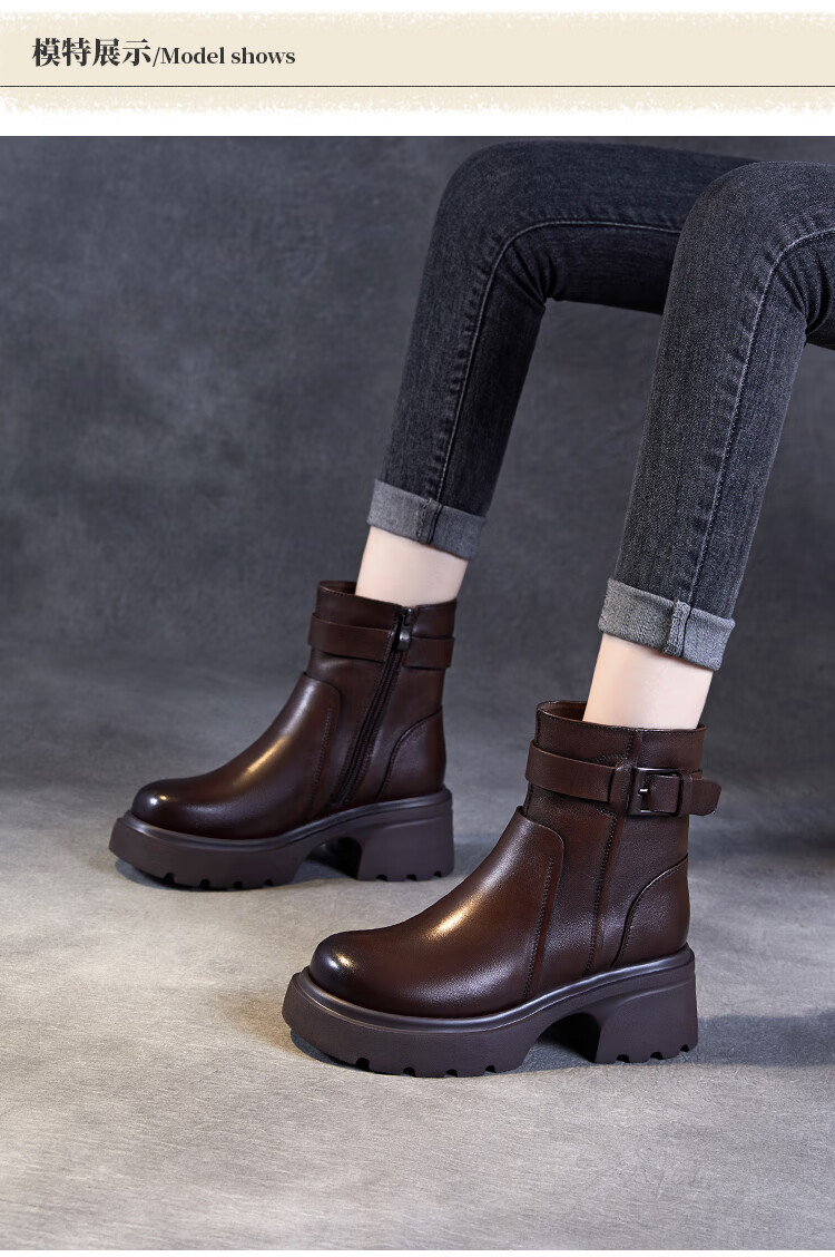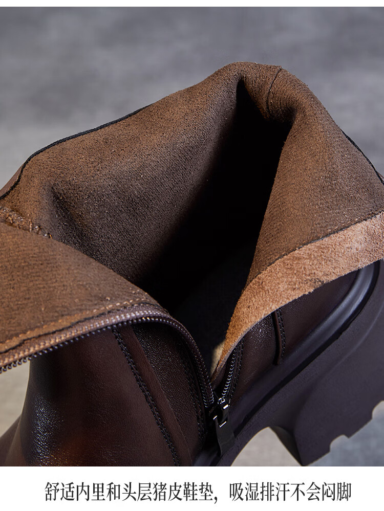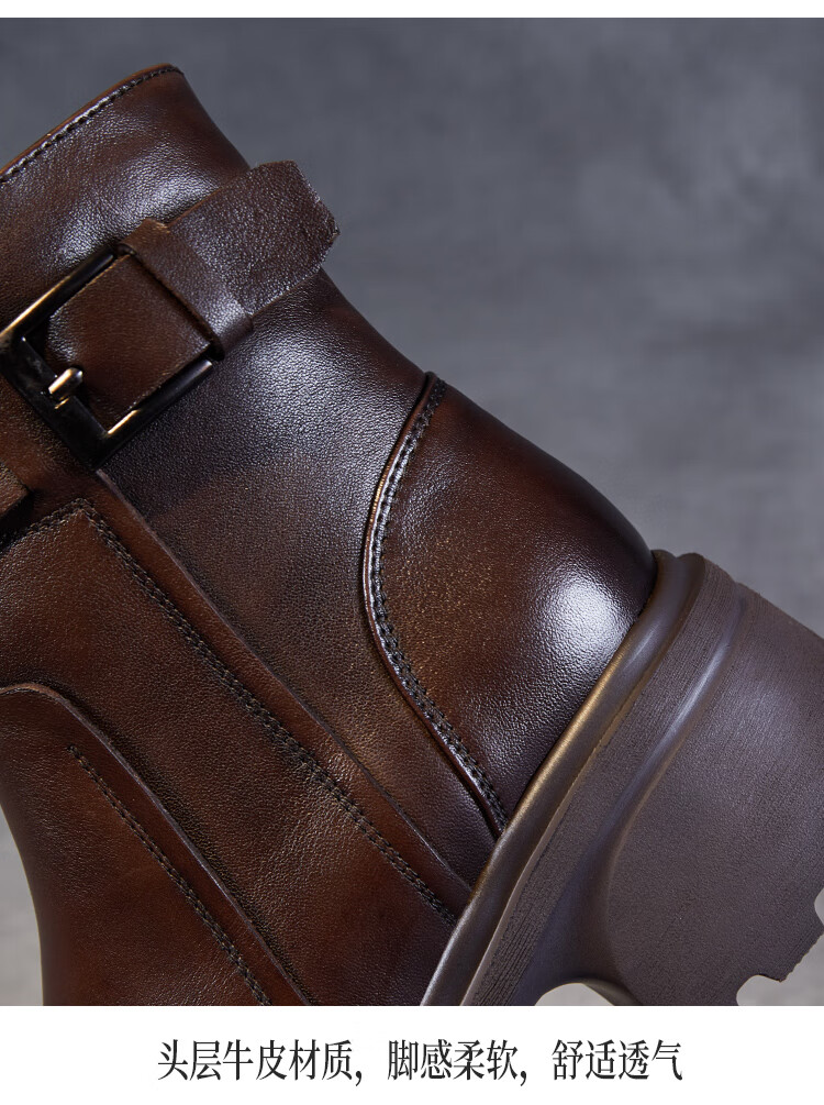 Woodpecker genuine leather increased thick sole versatile Chelsea short boots for women 2025 autumn and winter new style plus velvet British style thick heel Martin boots brown plus velvet 38