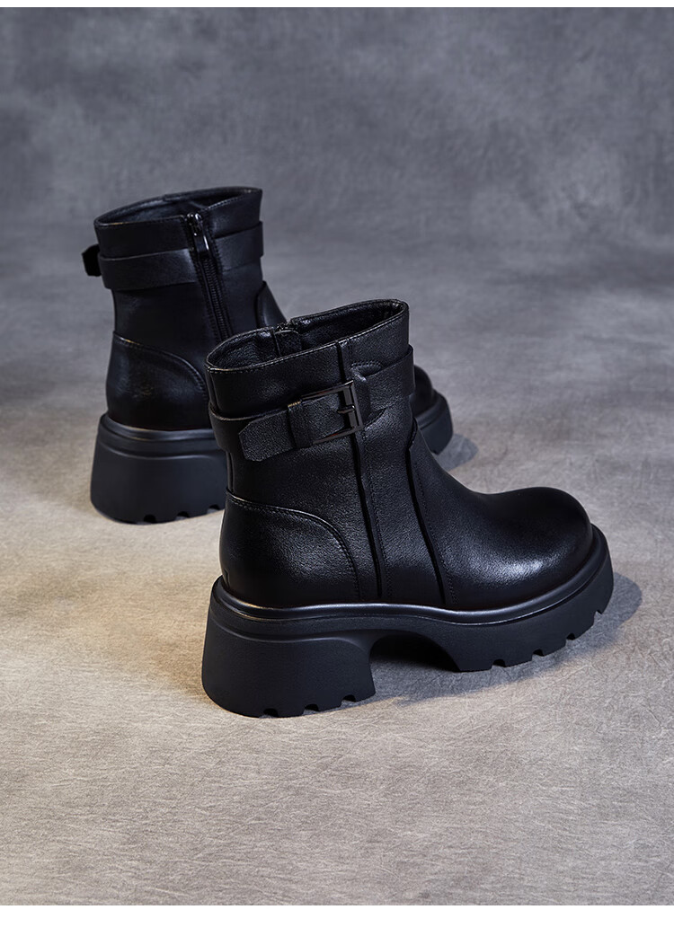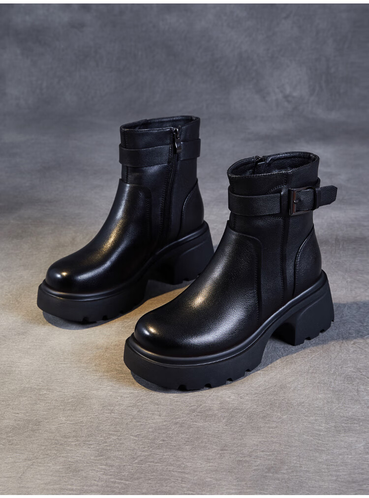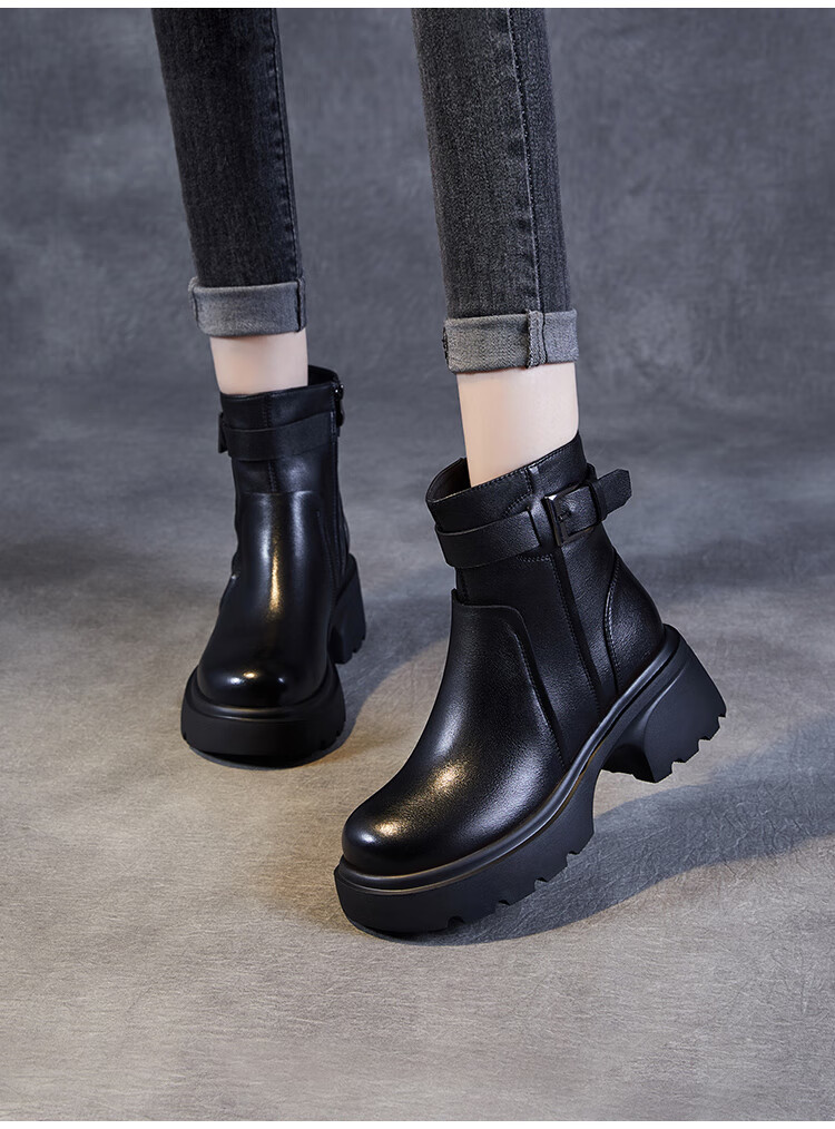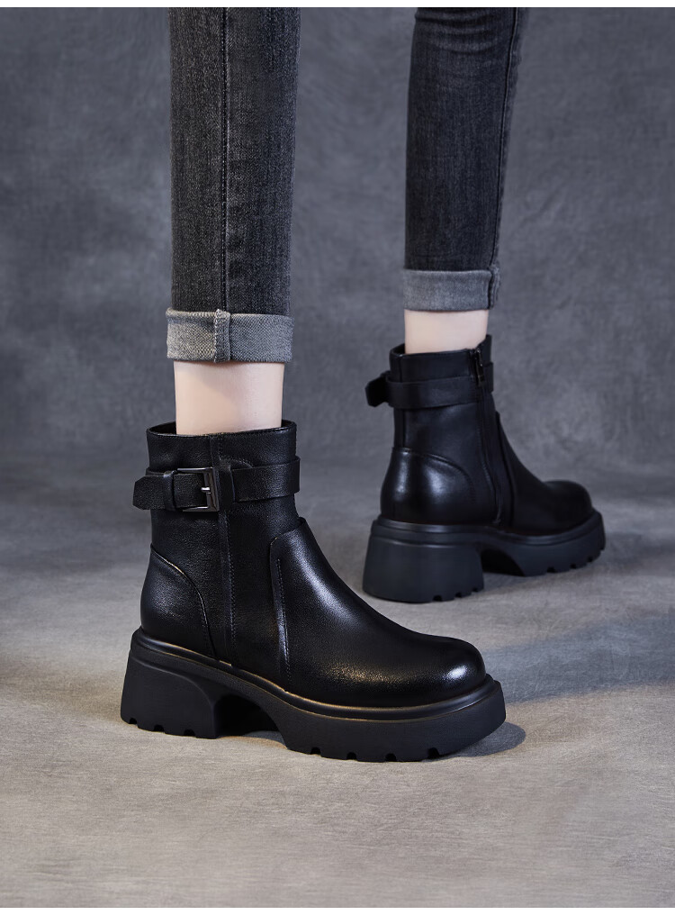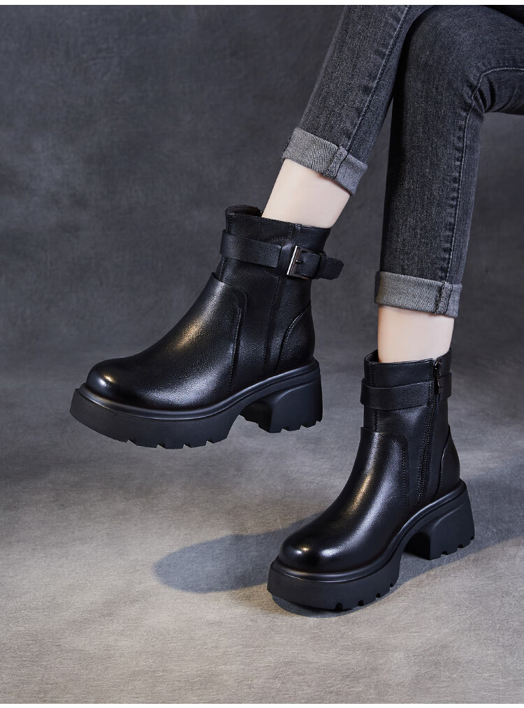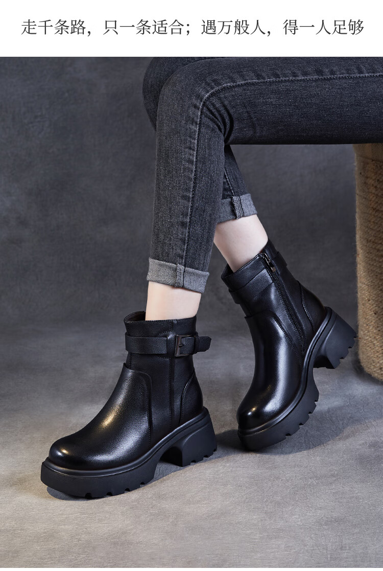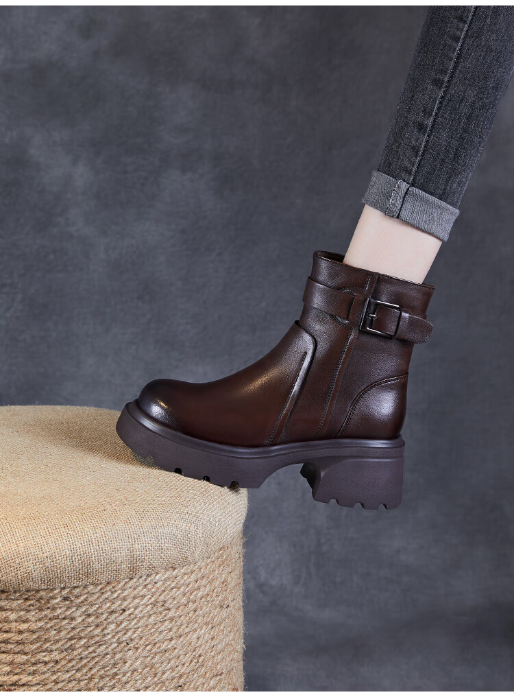 Woodpecker genuine leather increased thick sole versatile Chelsea short boots for women 2025 autumn and winter new style plus velvet British style thick heel Martin boots brown plus velvet 38