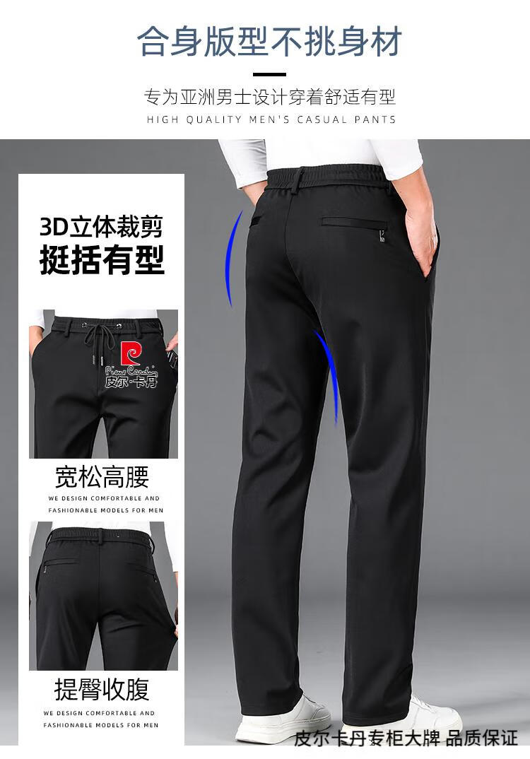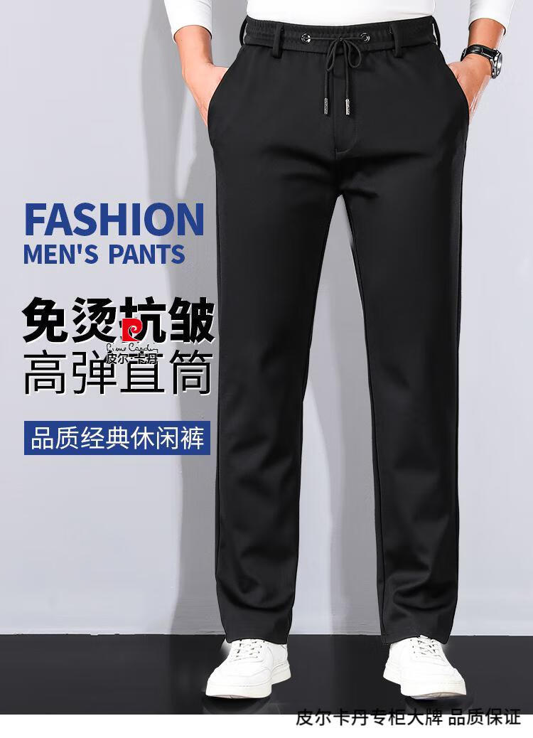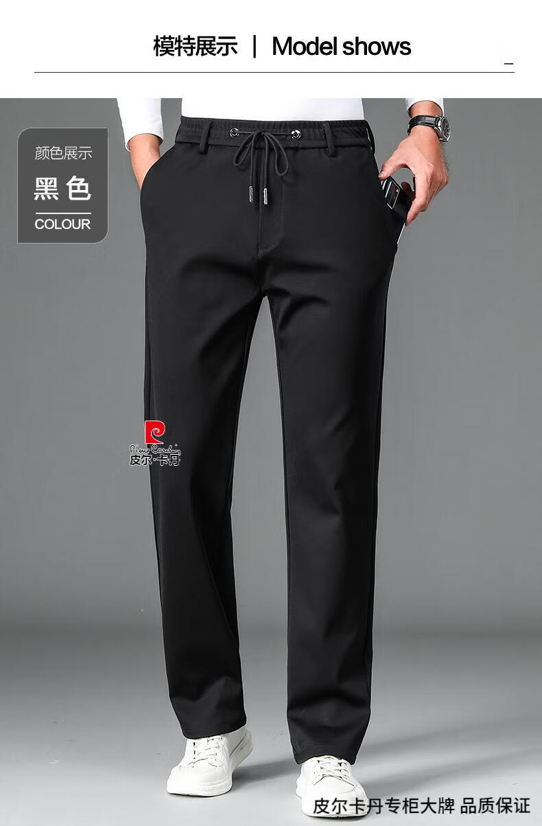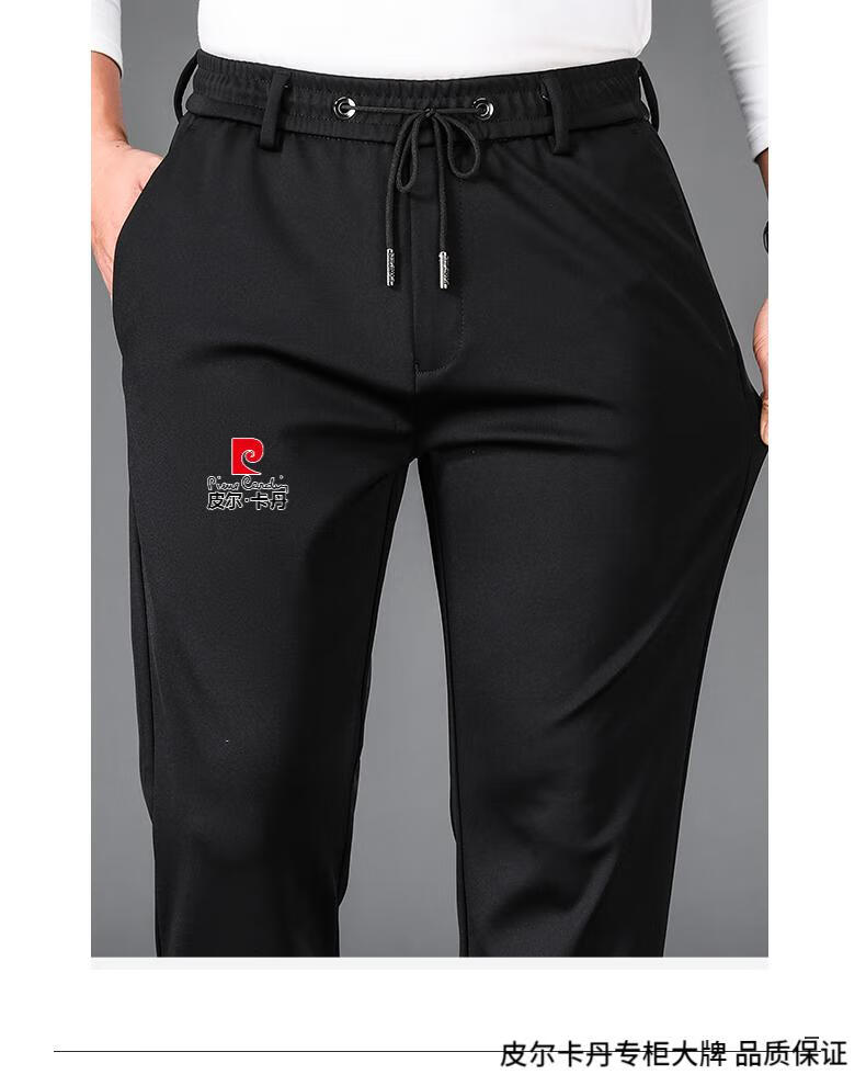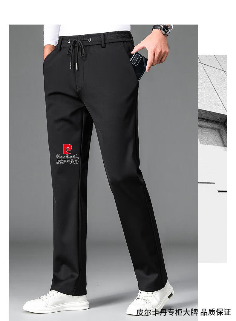 Pierre Cardin autumn and winter thick high elastic elastic waist sports pants straight loose men's pants versatile middle-aged business casual pants black thickened elastic anti-wrinkle plus velvet 5XL 190-210Jin Jin equals 0.5 kg