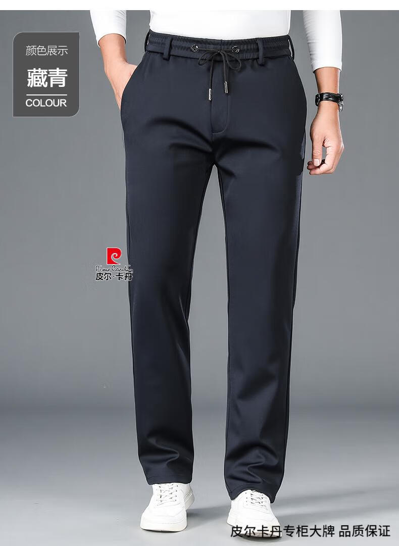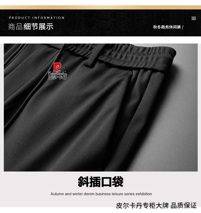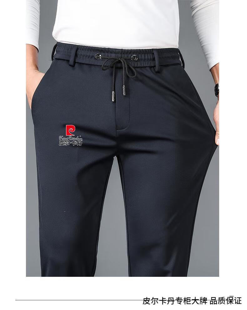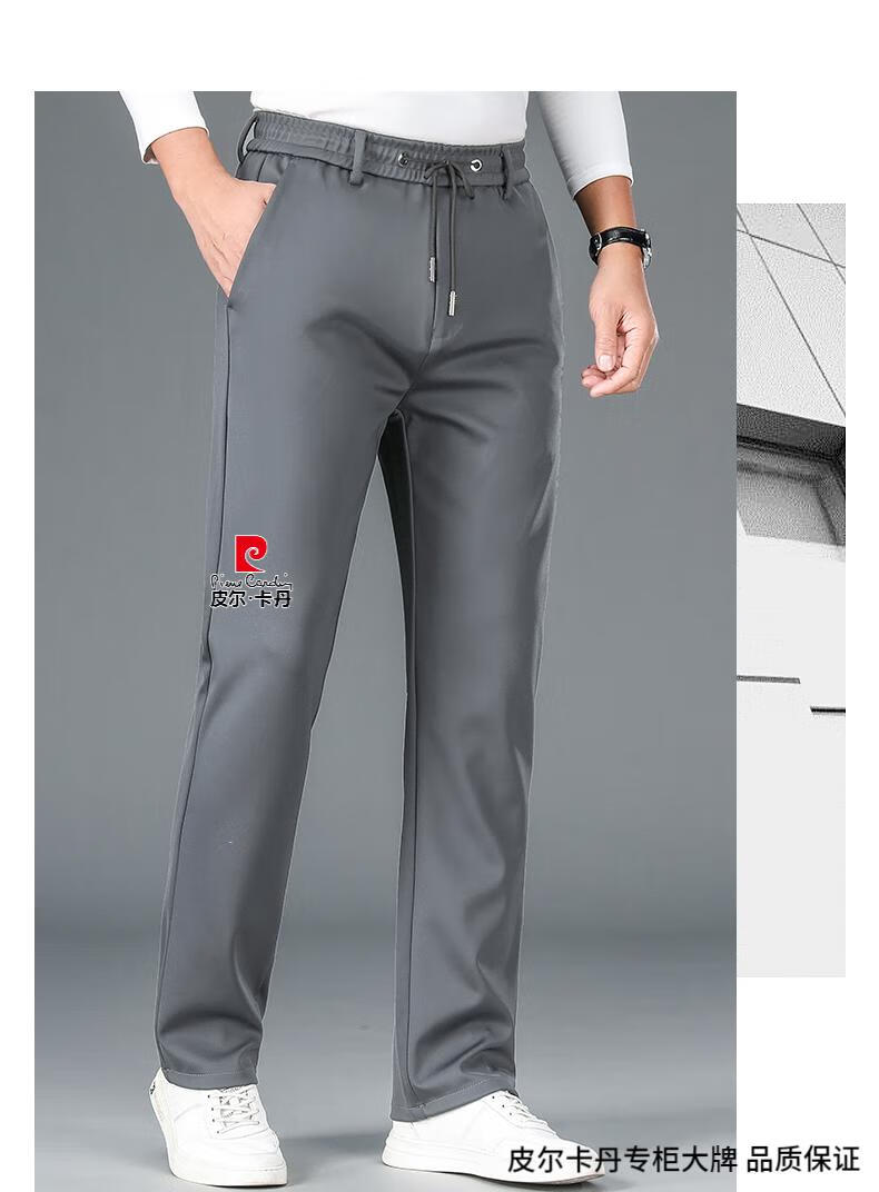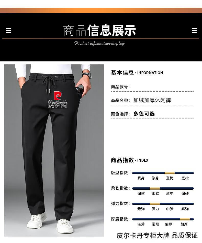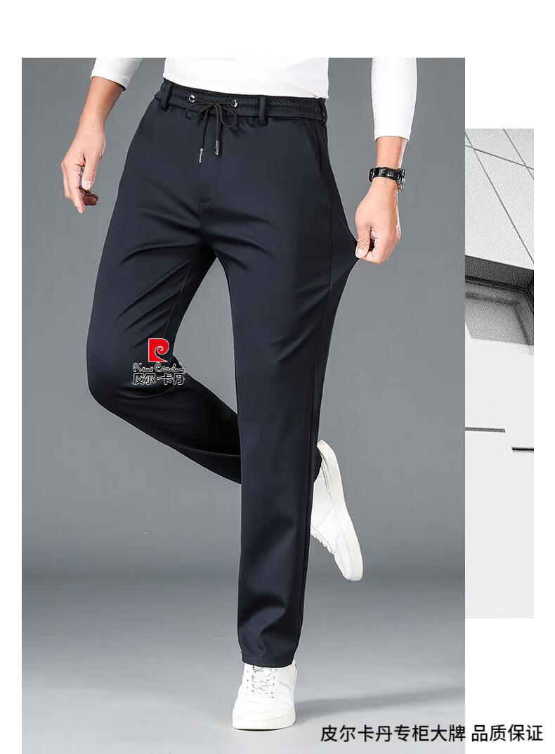 Pierre Cardin autumn and winter thick high elastic elastic waist sports pants straight loose men's pants versatile middle-aged business casual pants black thickened elastic anti-wrinkle plus velvet 5XL 190-210Jin Jin equals 0.5 kg