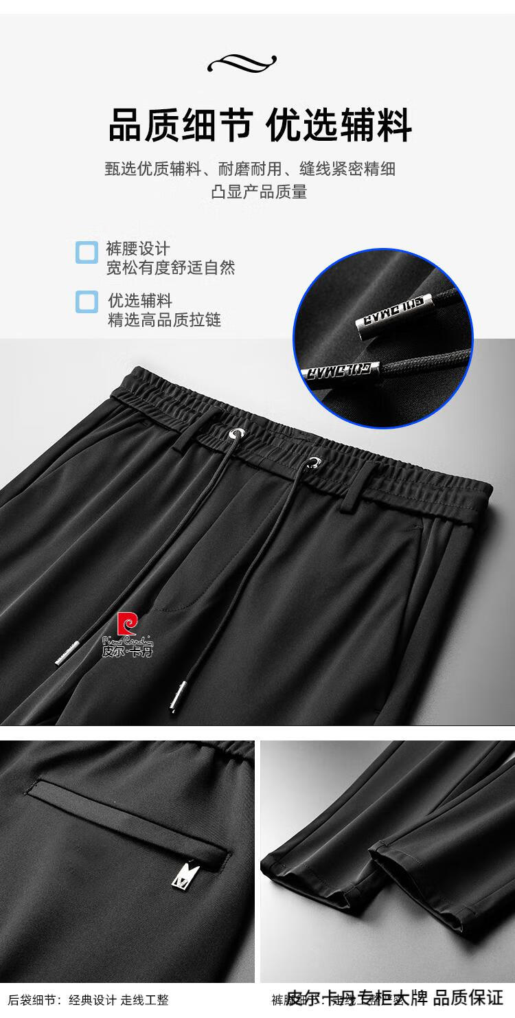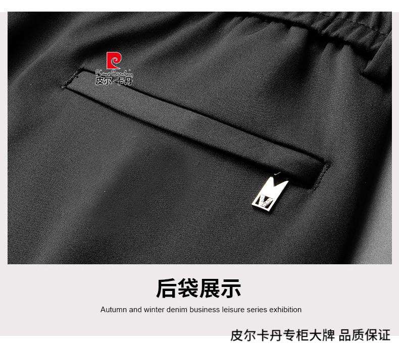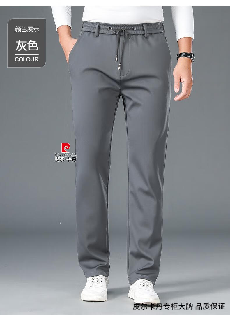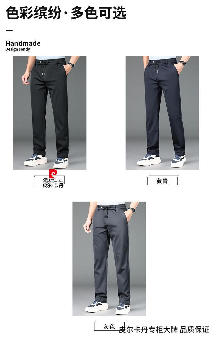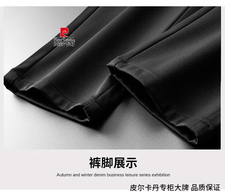 Pierre Cardin autumn and winter thick high elastic elastic waist sports pants straight loose men's pants versatile middle-aged business casual pants black thickened elastic anti-wrinkle plus velvet 5XL 190-210Jin Jin equals 0.5 kg