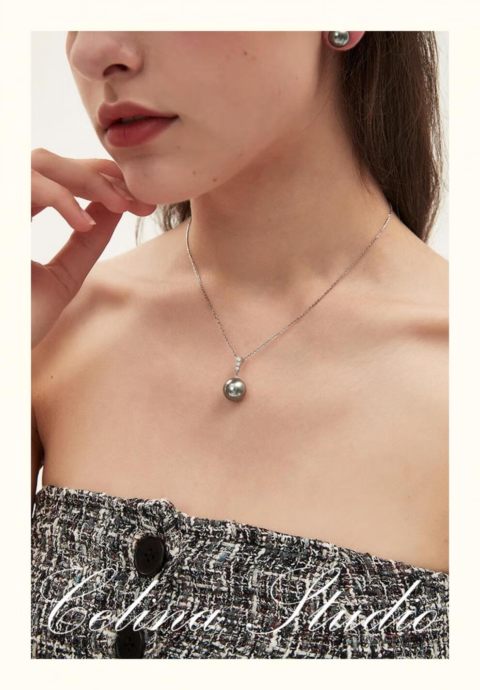 DL 1998 Fat Donglai quality Tahitian pearl pendant Celina black necklace imported technology Shijia