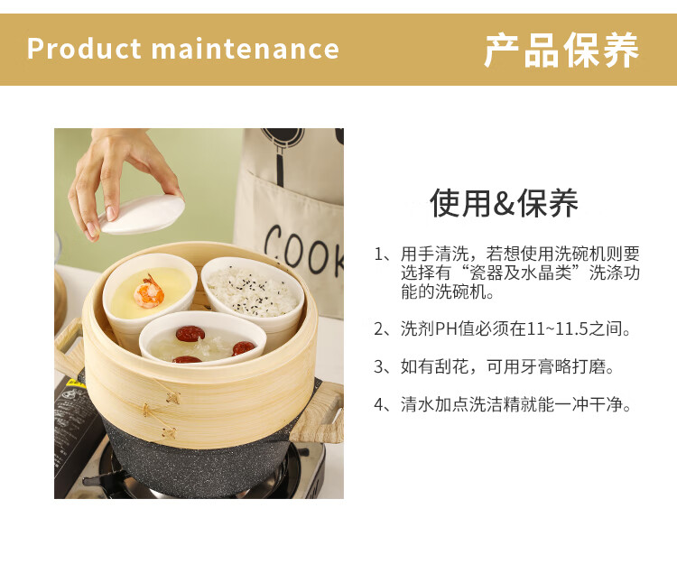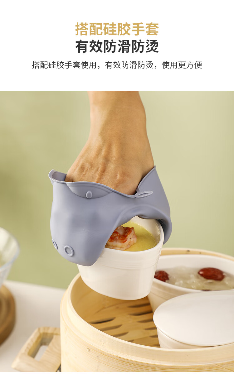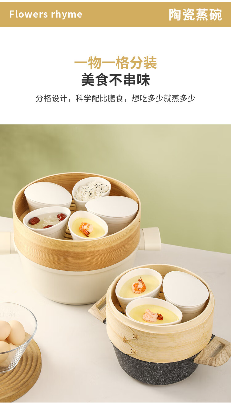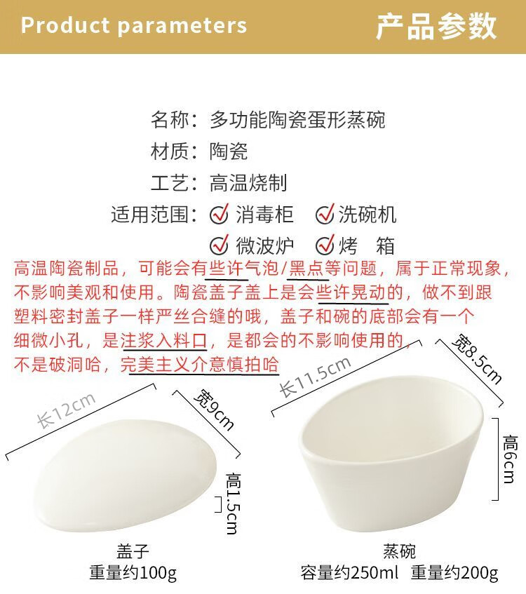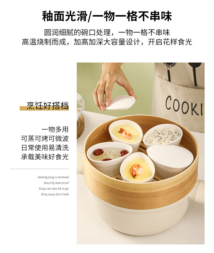 Muziqiu ceramic steaming bowl with lid, baby stew pot, small steaming cup, water-proof steamed egg, steamed rice, stewed egg, steamed egg custard special bowl, egg-shaped high-temperature ceramic bowl*3+porcelain lid*3